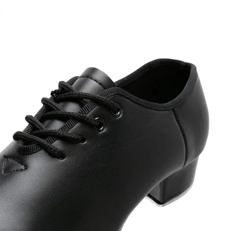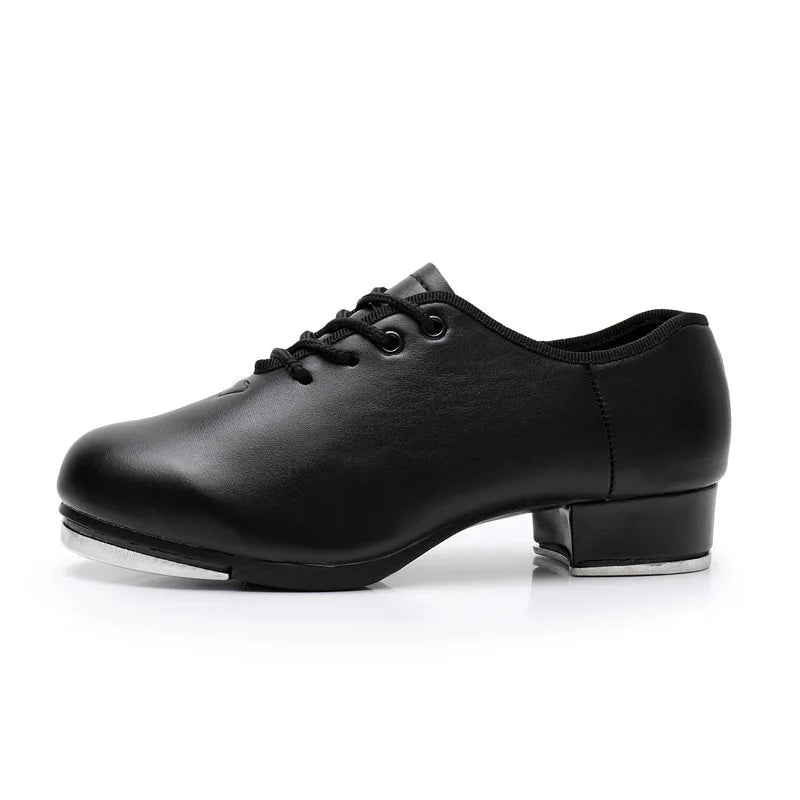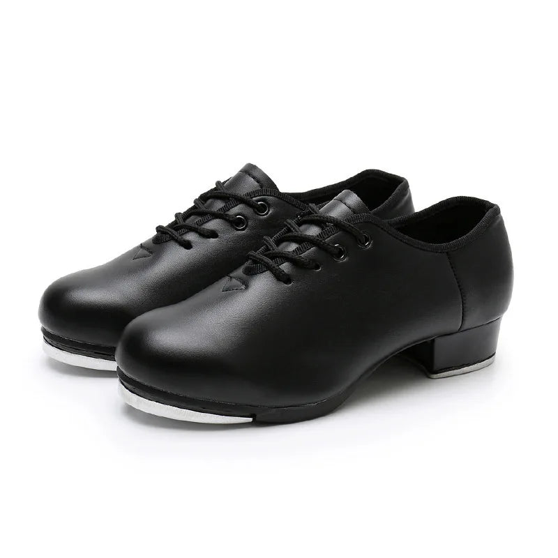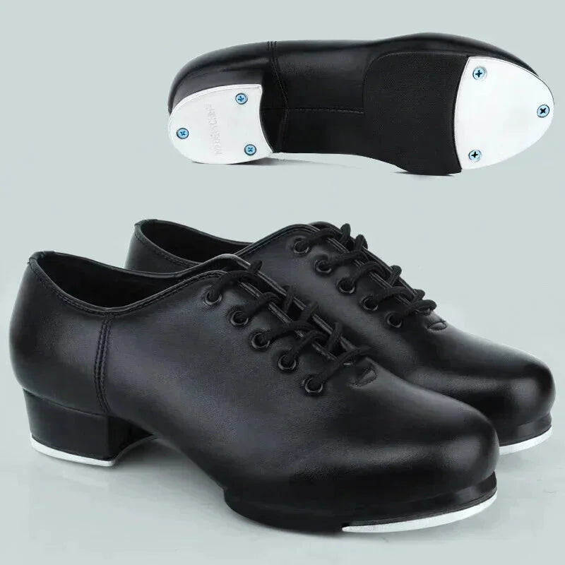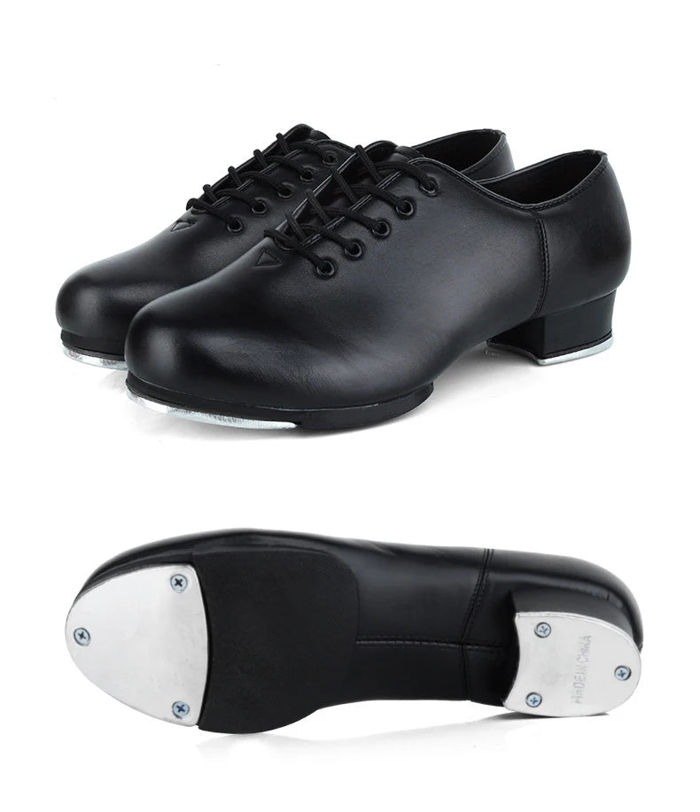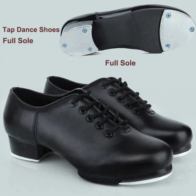 Black Soft Leather Full Sole Professional Tap Dance Shoes for Men Women and Kids
