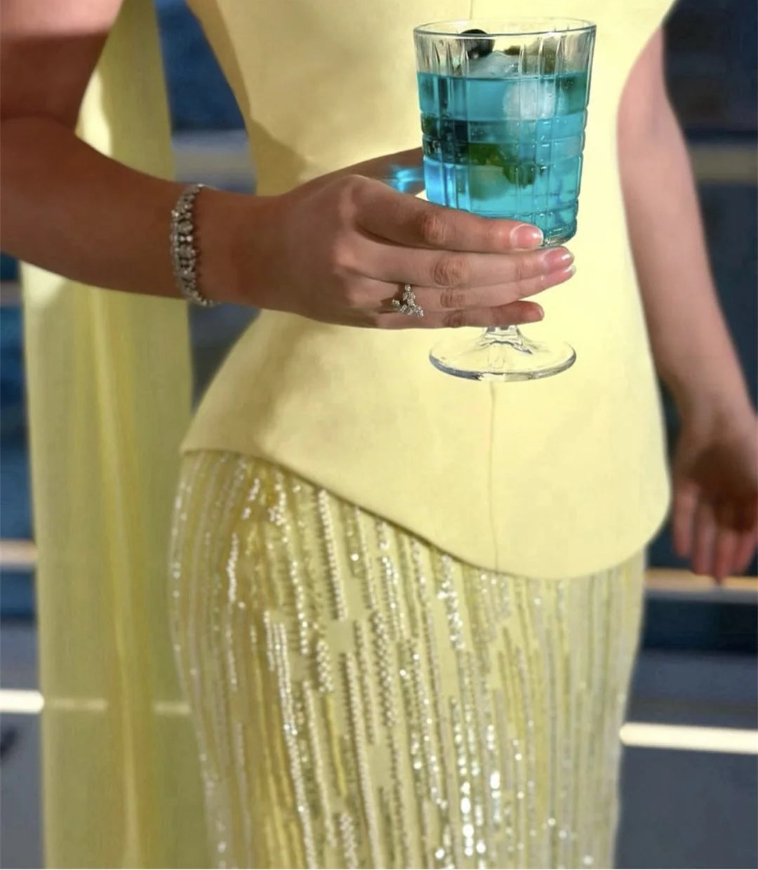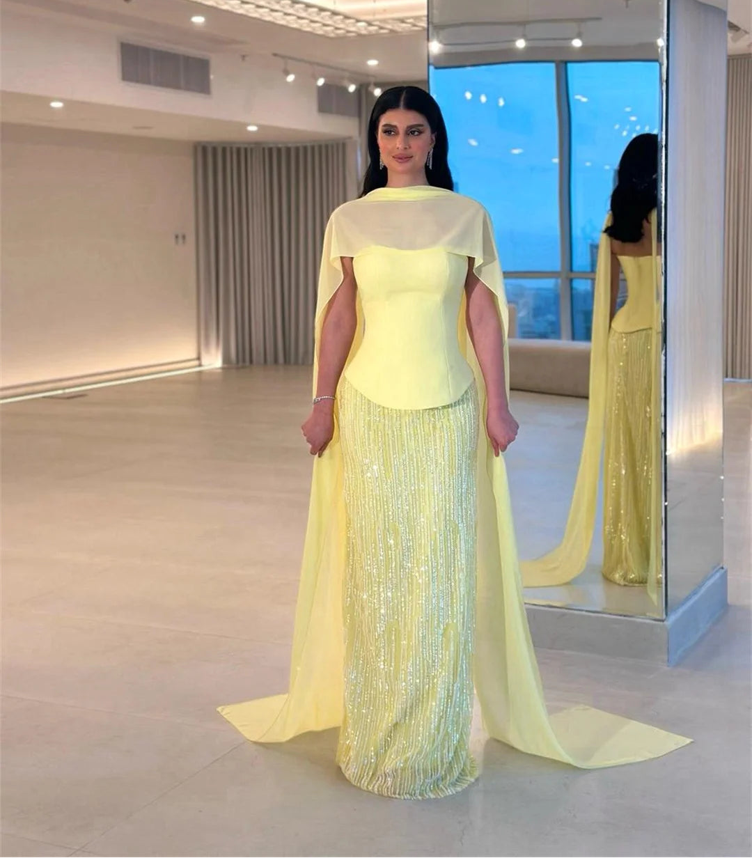 Elevate your wardrobe with this chic dress featuring a shawl. The polyester keeps you cool and comfortable at parties and special events. The sequin details lend an extraordinary appearance perfect for special occasions. Grab yours now!