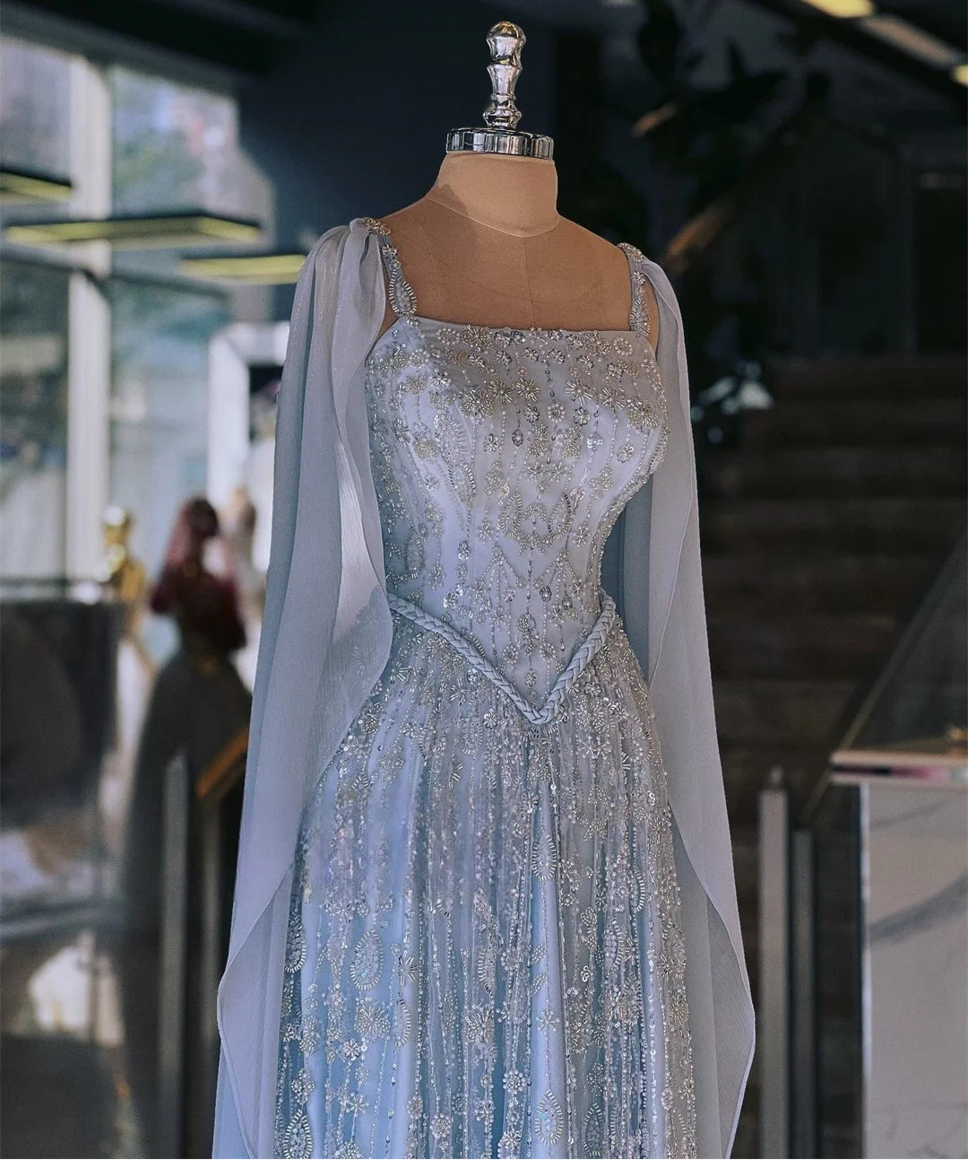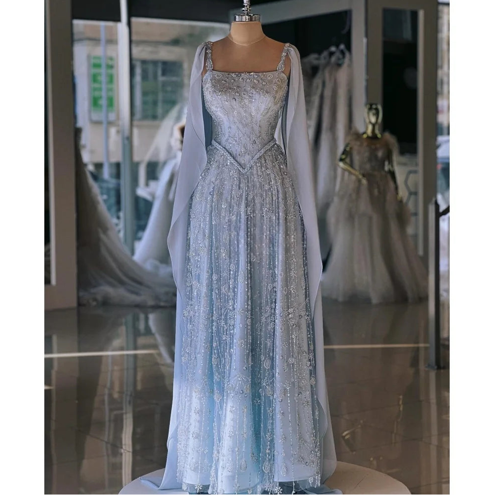 Luxury A-Line Shawl Beaded Lace Elegant Evening Dresses for Women