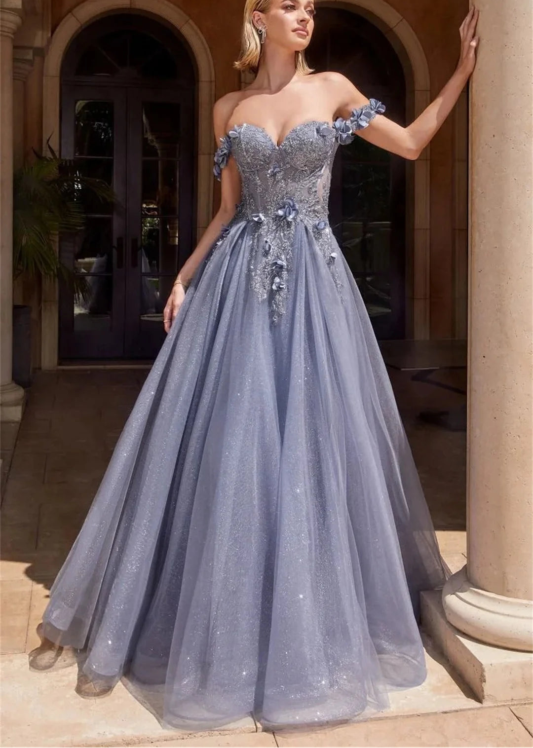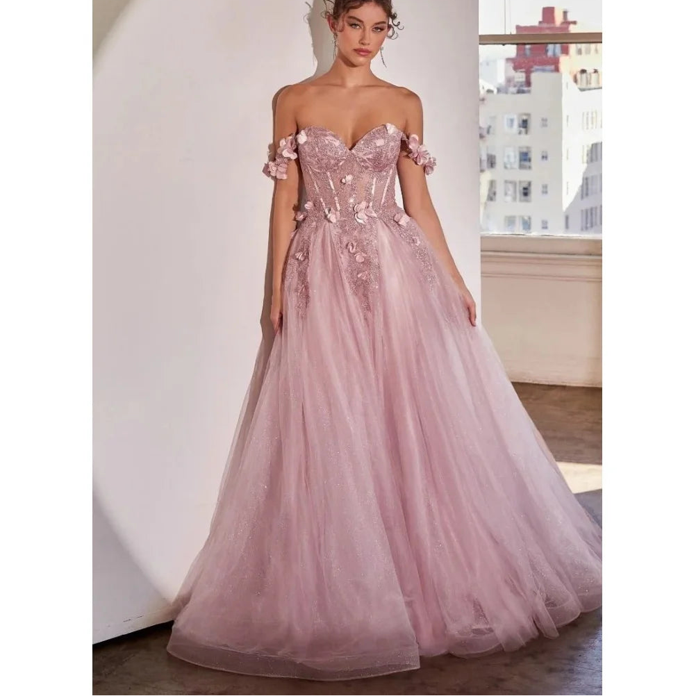 Women's Elegant Flower Embroidery Luxury Evening Prom Dress