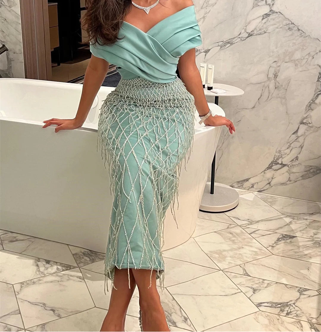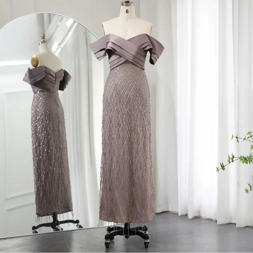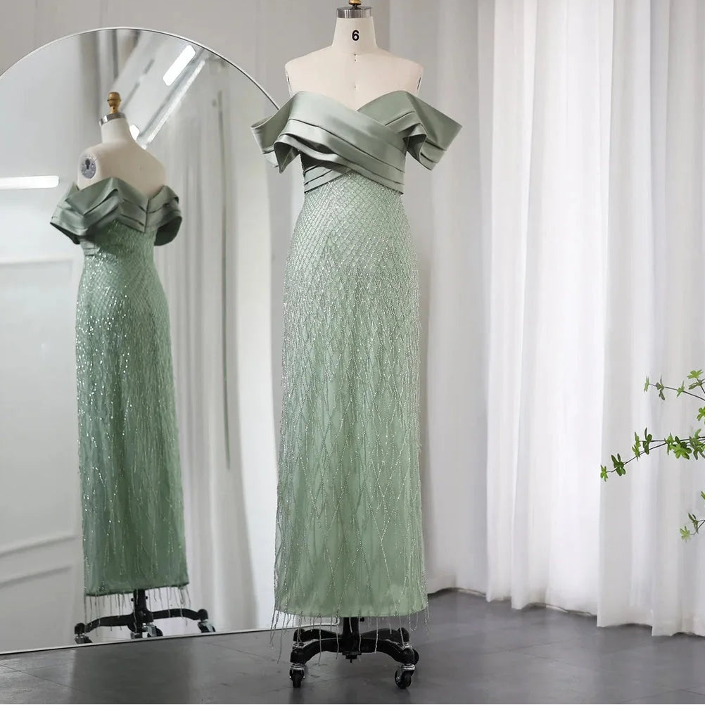Women's Luxurious Beaded Embroidered Lace Fish Tail Evening Dress