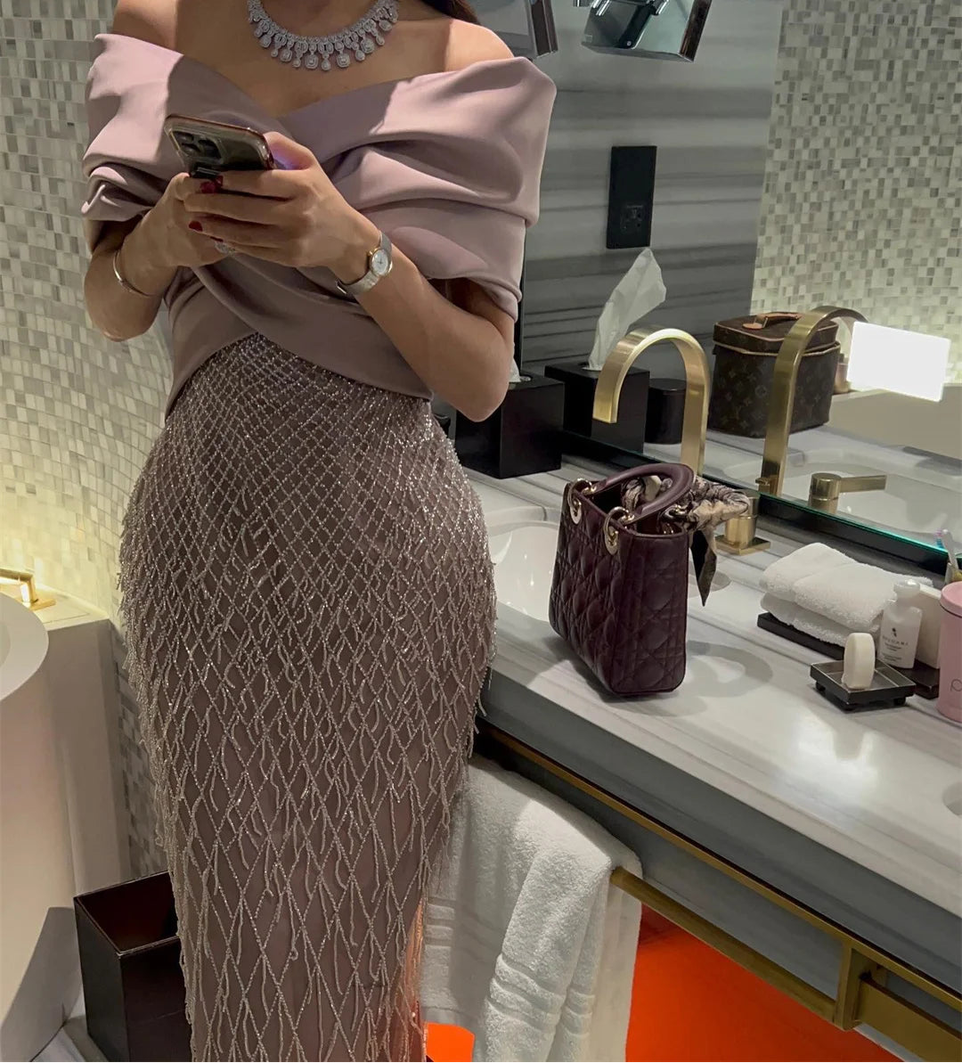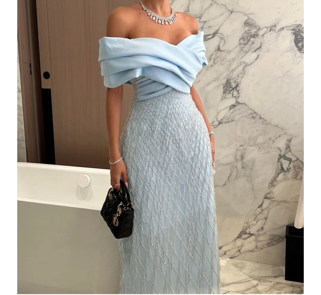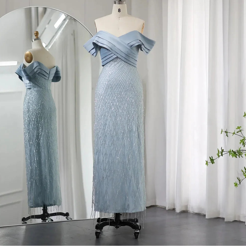 Women's Luxurious Beaded Embroidered Lace Fish Tail Evening Dress