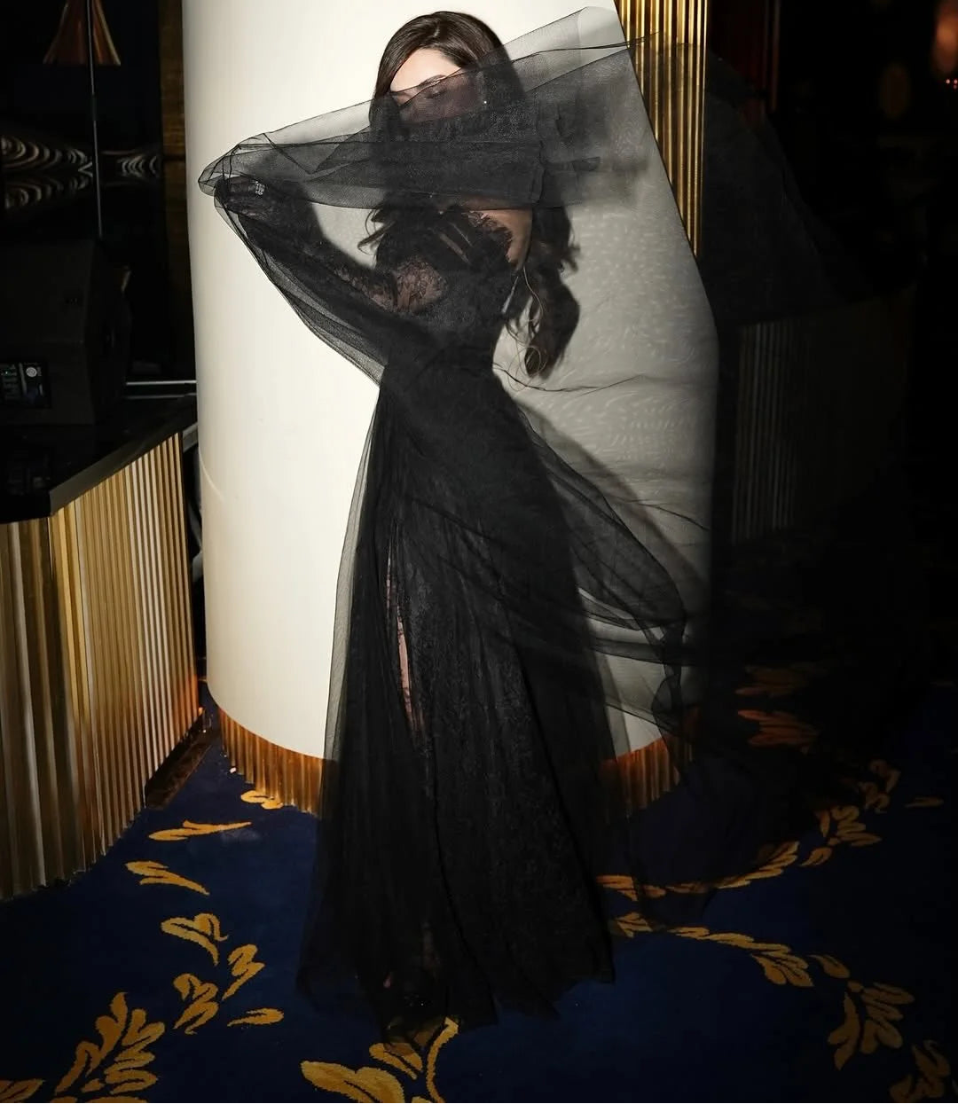 Women's Luxury Black Long-Sleeved Lace A-line Prom Evening Dress