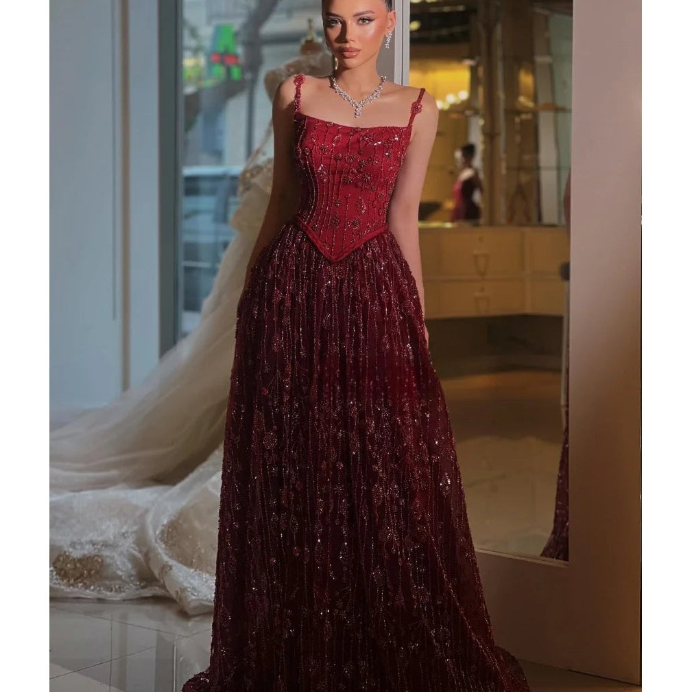 Women's Luxury Lace Bead Elegant Cocktail Party Gown Prom Dress
