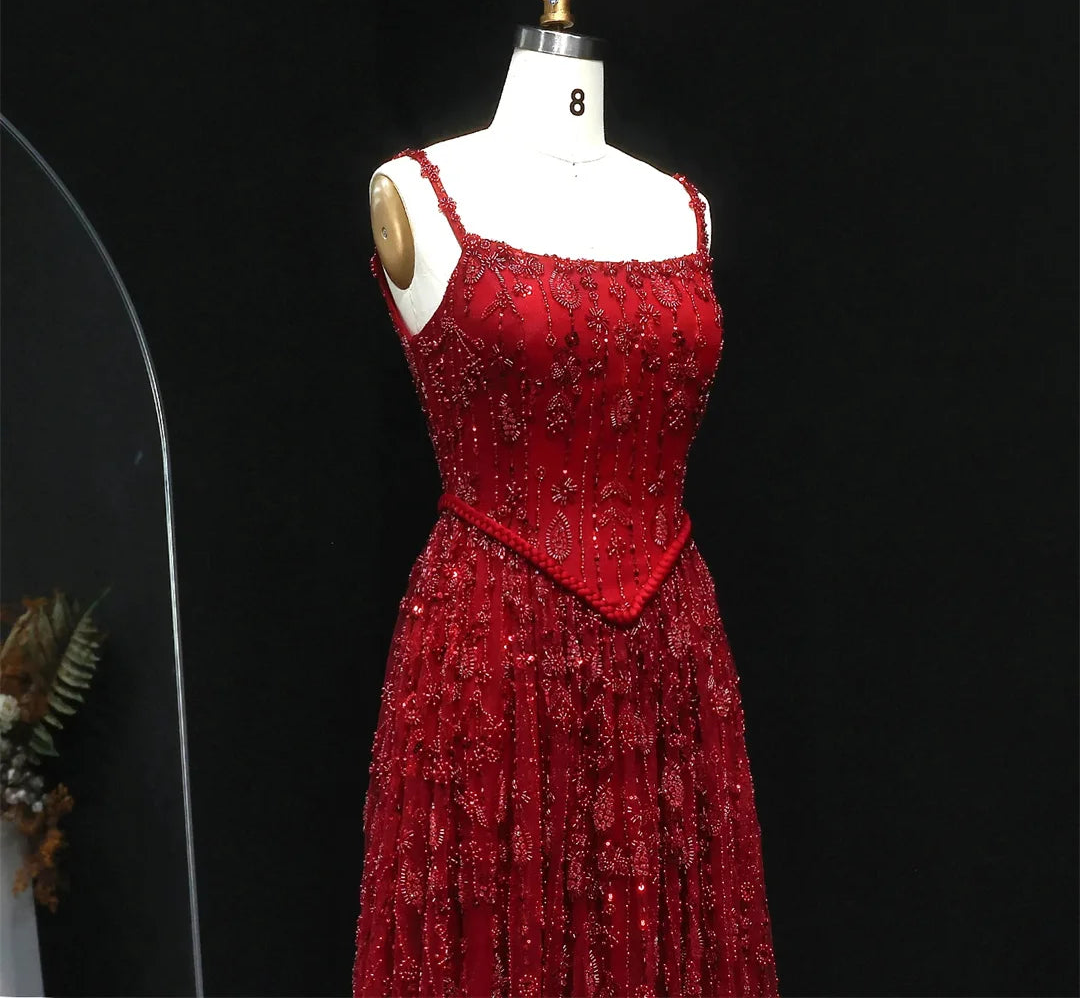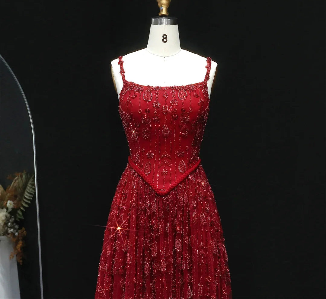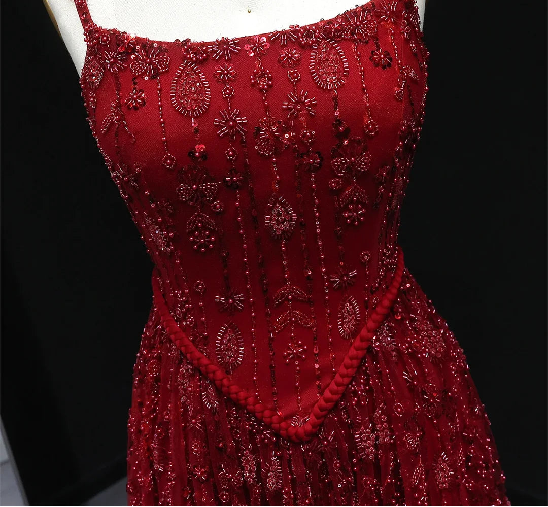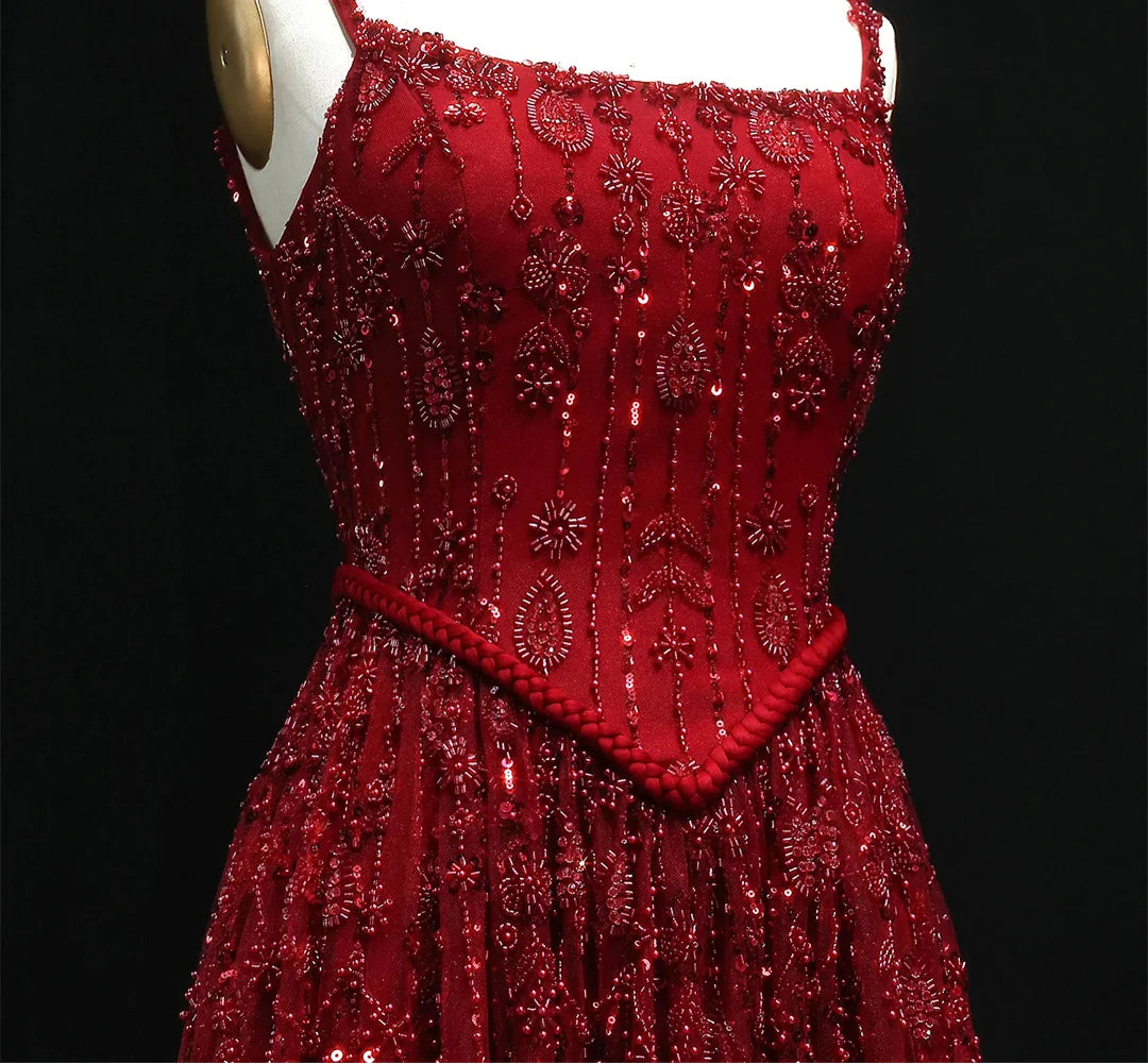 This women's party gown is designed keeping in mind the latest trends. Made with polyester, it is durable and looks appealing with lace material and beadwork. The fabulous maroon shade and the sleeveless pattern will step up your look. Grab yours now!