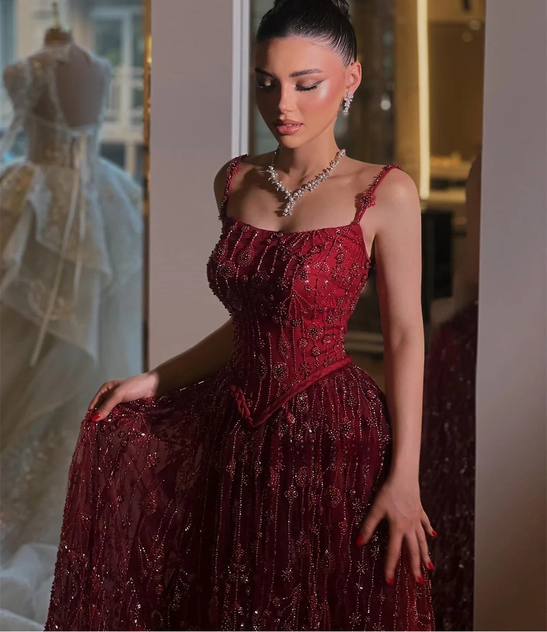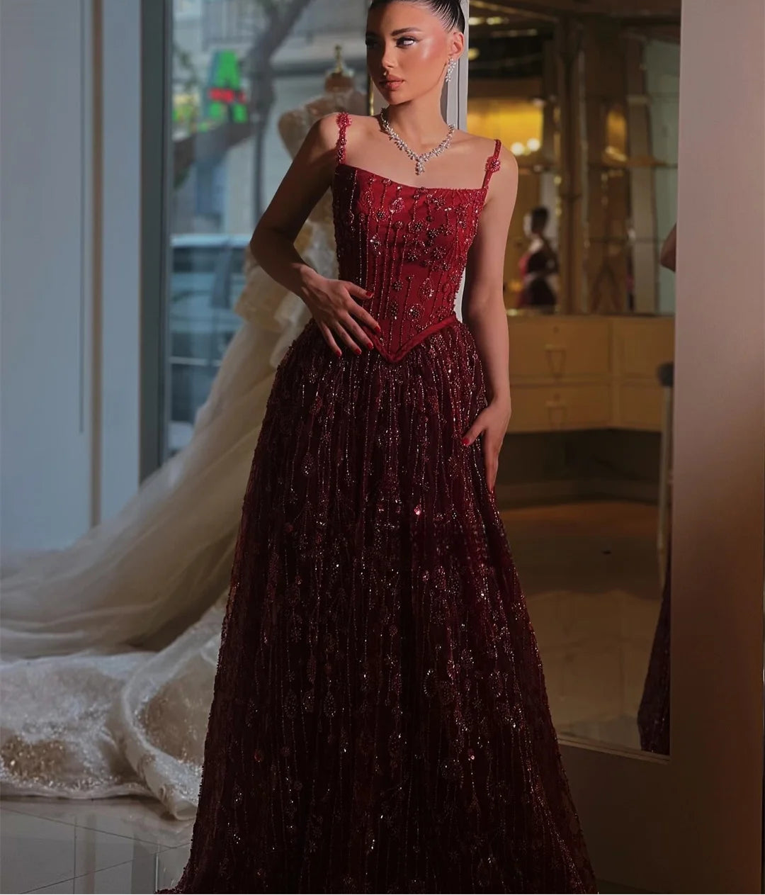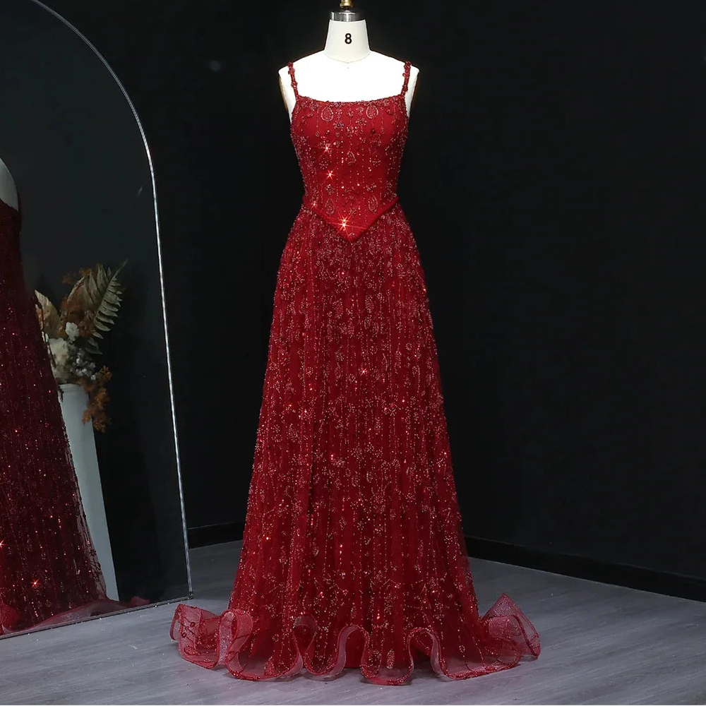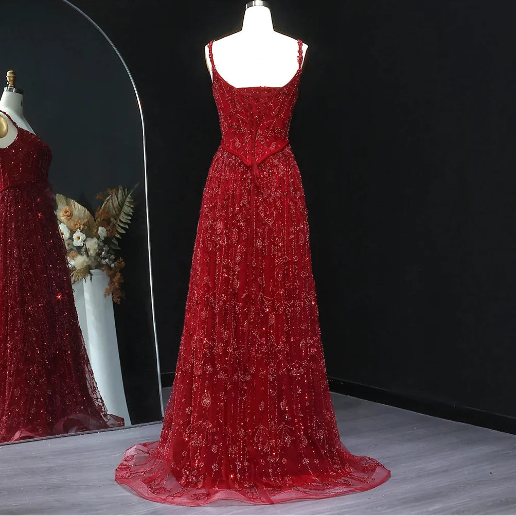This women's party gown is designed keeping in mind the latest trends. Made with polyester, it is durable and looks appealing with lace material and beadwork. The fabulous maroon shade and the sleeveless pattern will step up your look. Grab yours now!