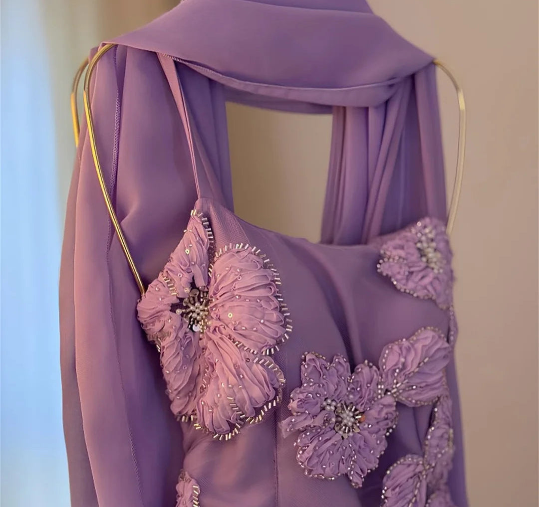 Designed with comfortable polyester fabric, this lovely dress features floral appliques that add elegance and uniqueness to it. Perfect for parties and special events, this long dress is comfortable, luxurious and stylish. With a sleeveless pattern and a matching shawl, this dress will enhance your look. Order now!