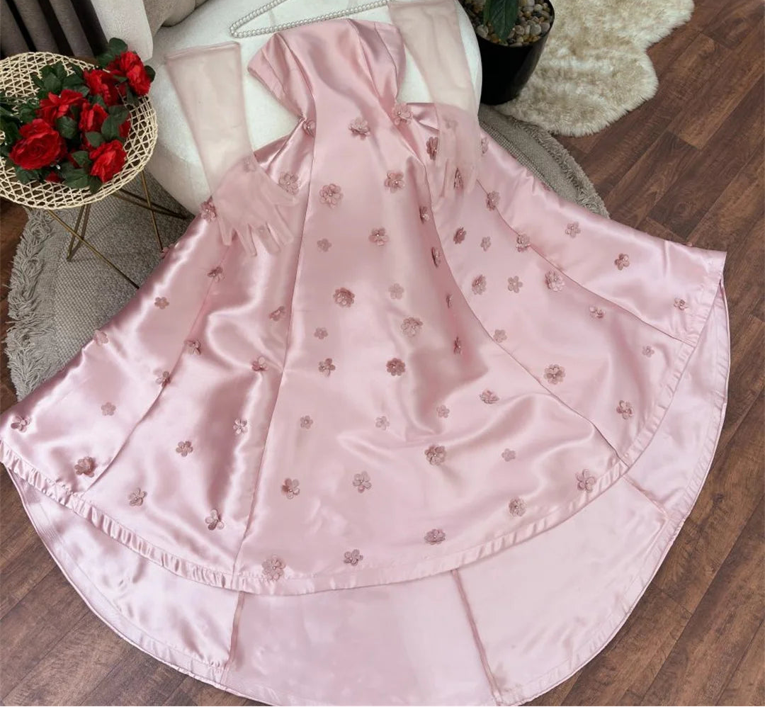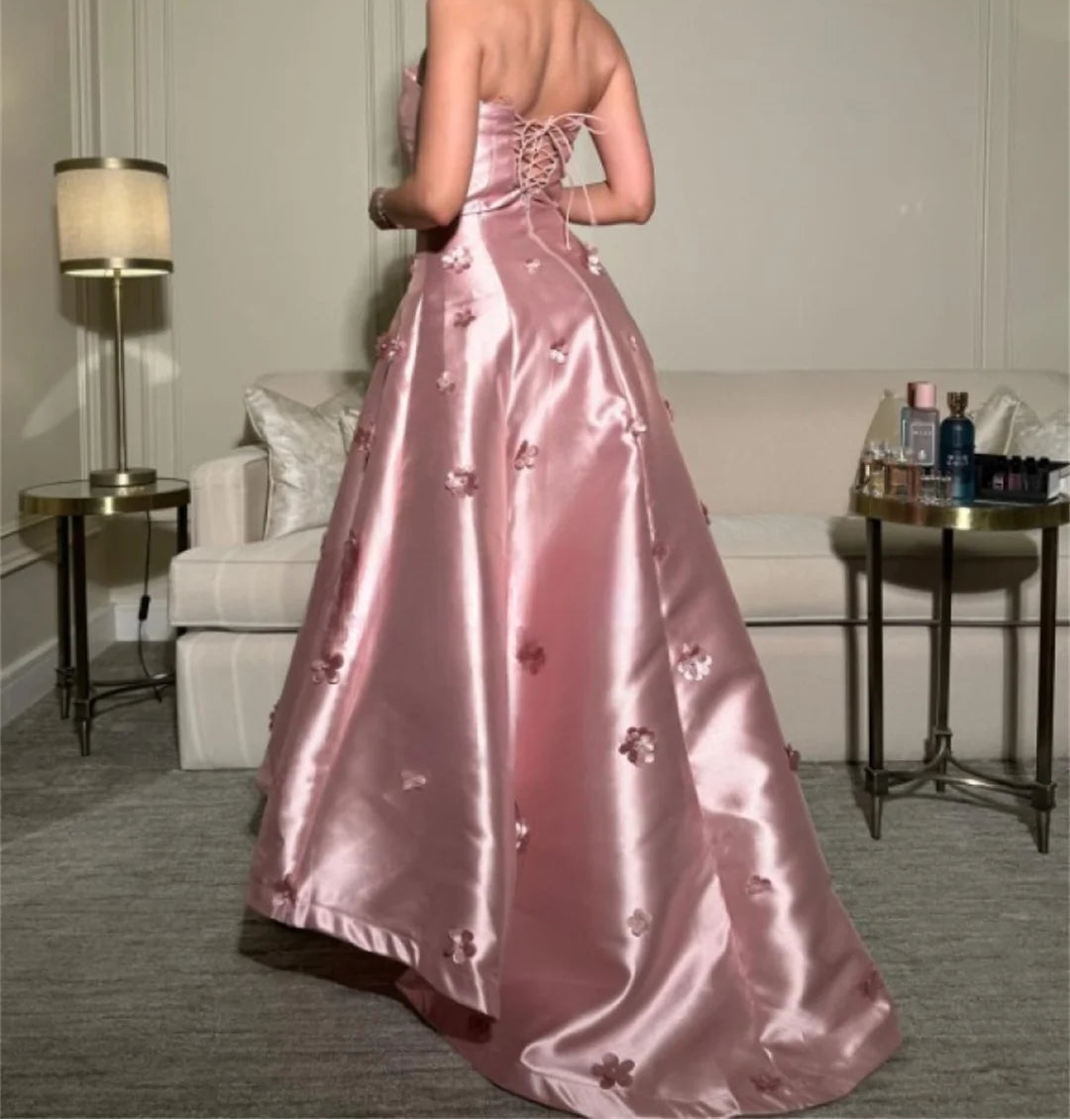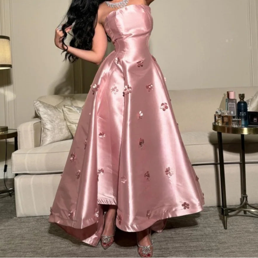 Women's Satin Cloth Off-shoulder Flowers Elegant Evening Dress