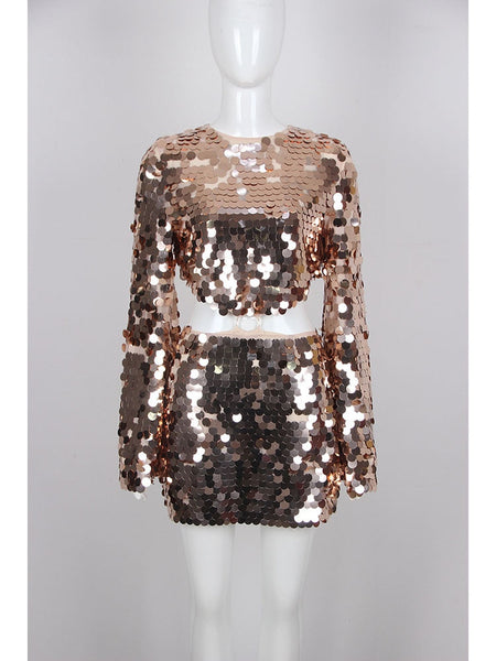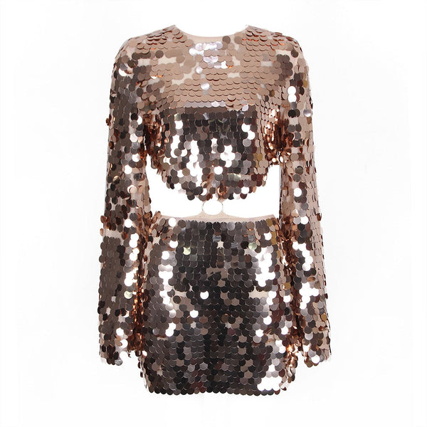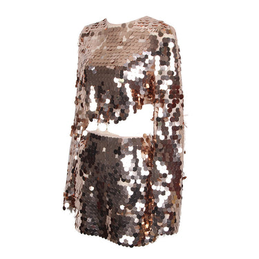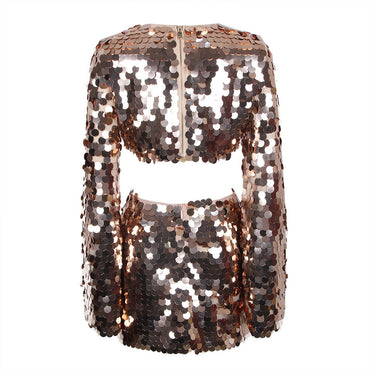 Women's Sexy Sequin Embellished Flare Sleeve Party Mini Dress