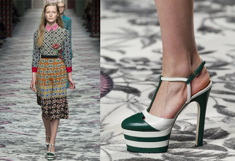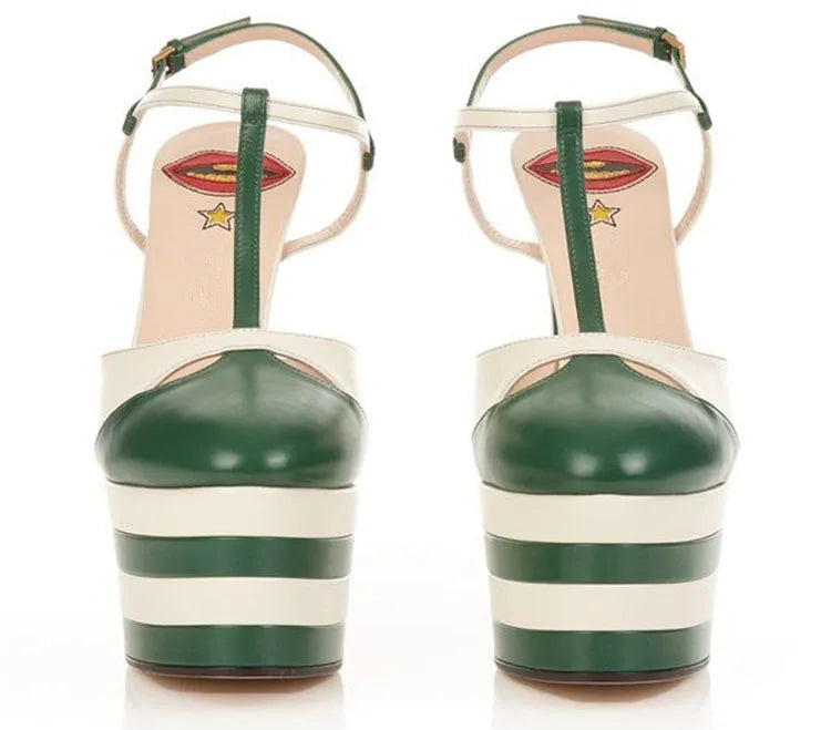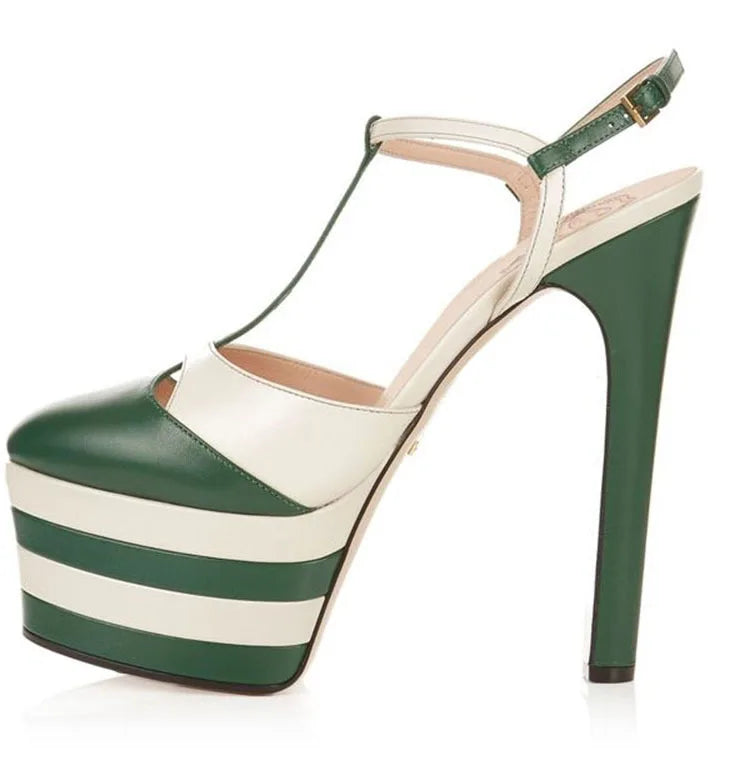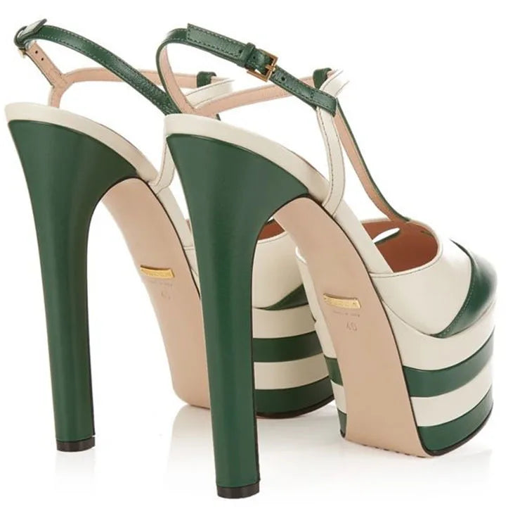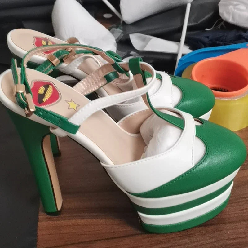 Sexy Club Party Style Green White High Heels Platform Pumps for Women