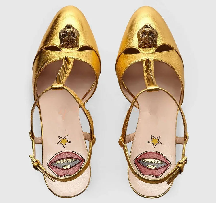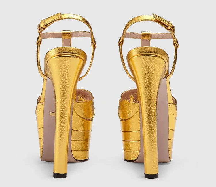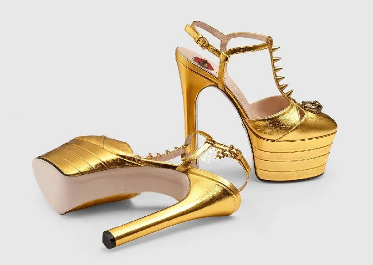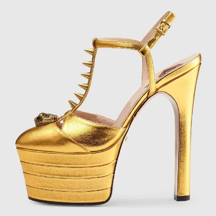 Sexy Golden Club Party Style Riveted High Heels Platform Pumps for Women
