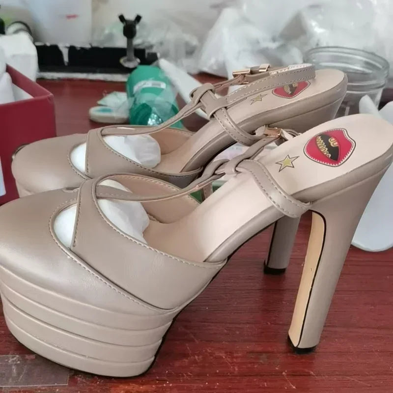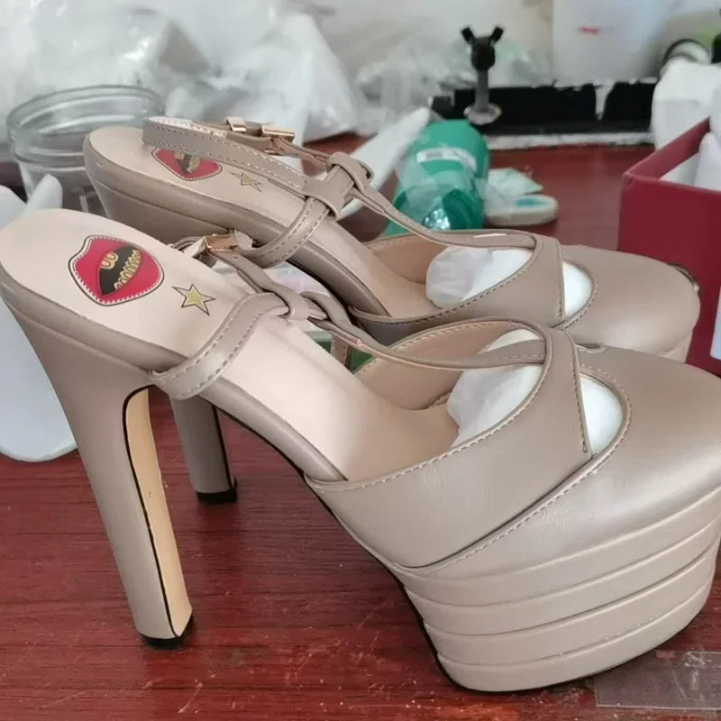Sexy Light Brown Club Party Style High Heels Platform Pumps for Women