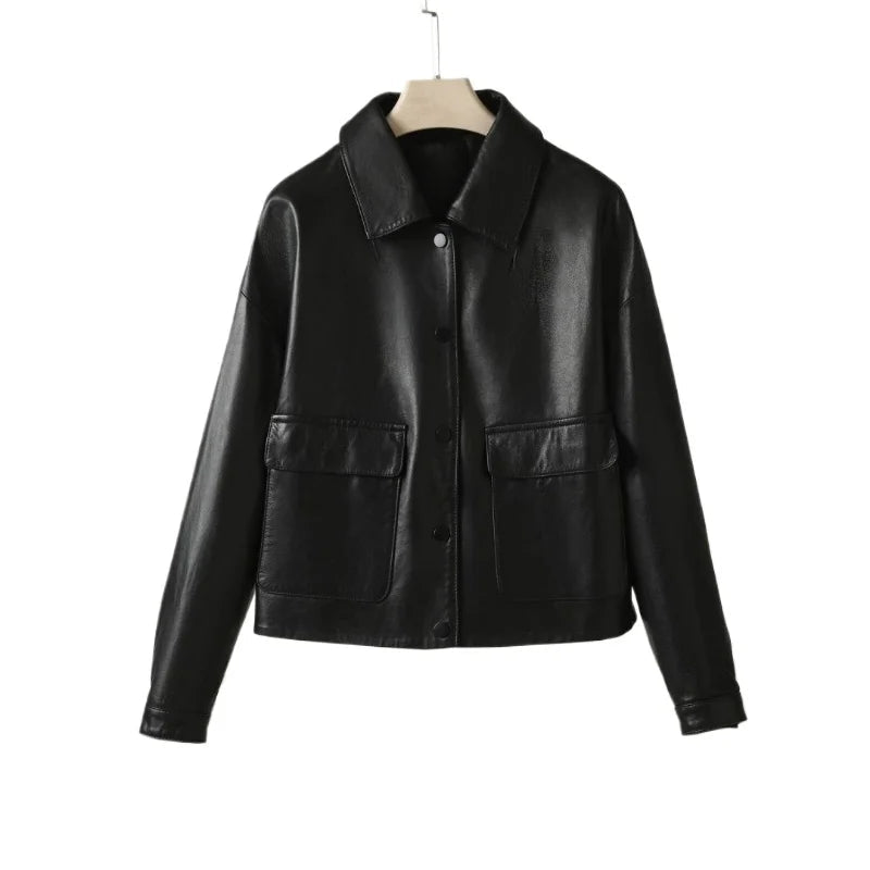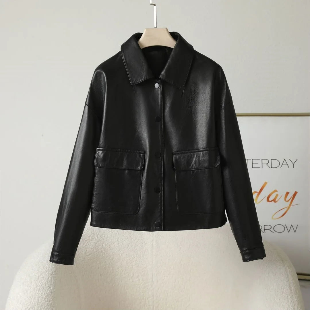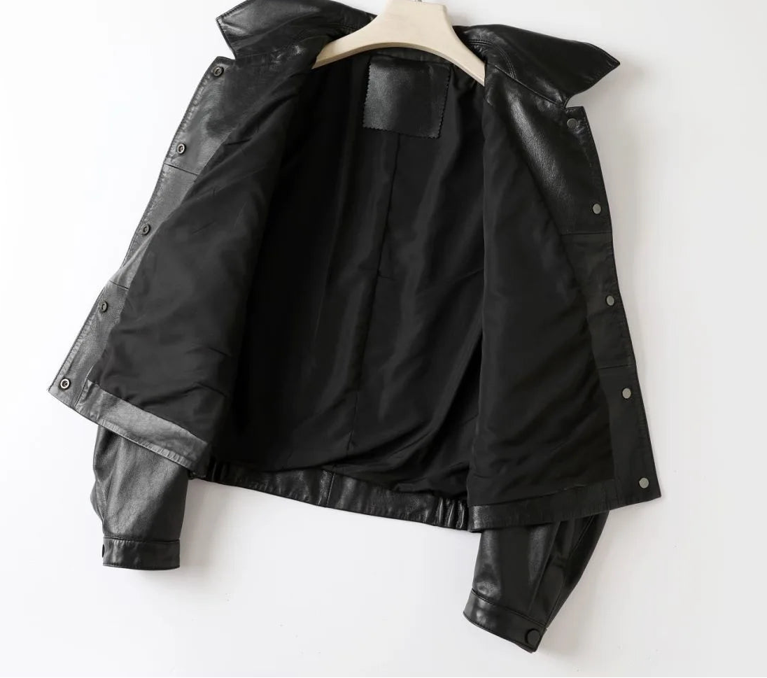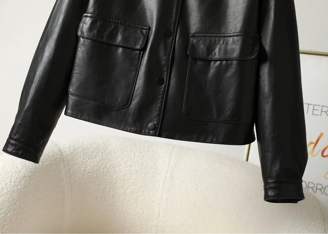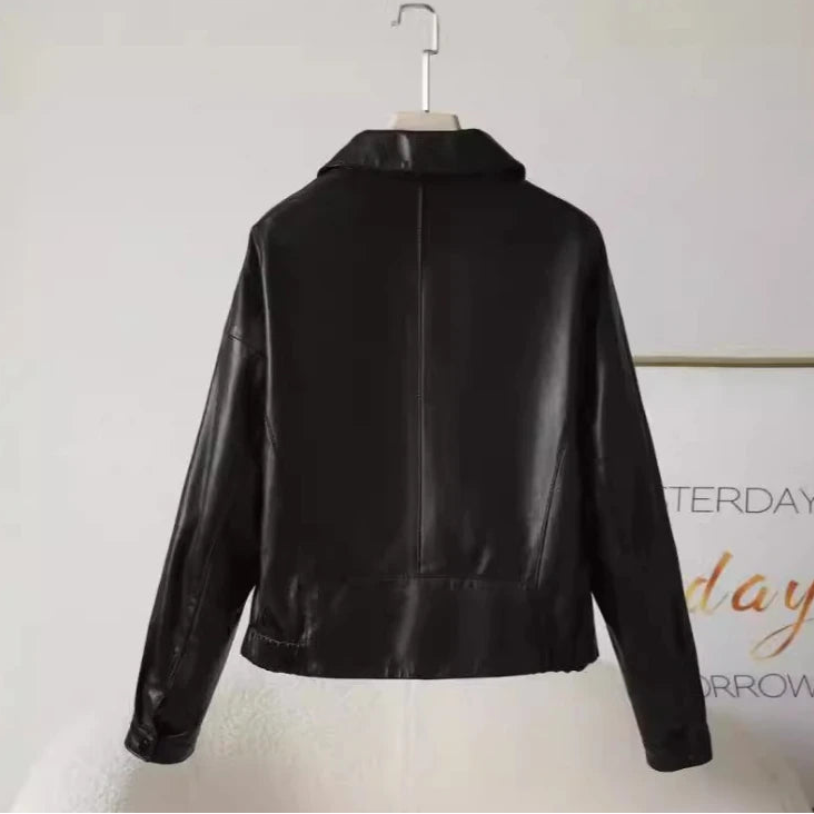 100% Sheepskin Leather Short Motorcycle Jacket for Women