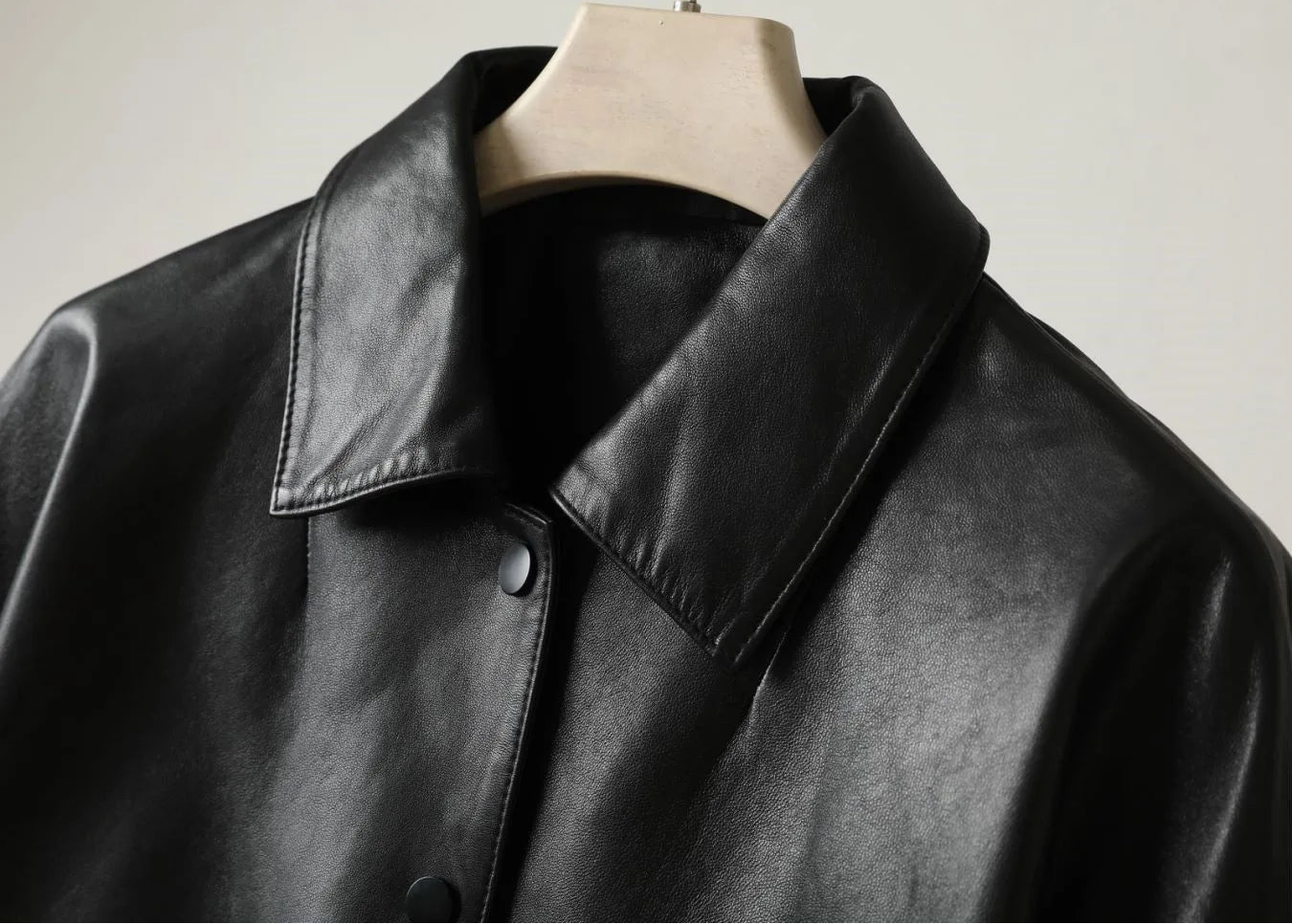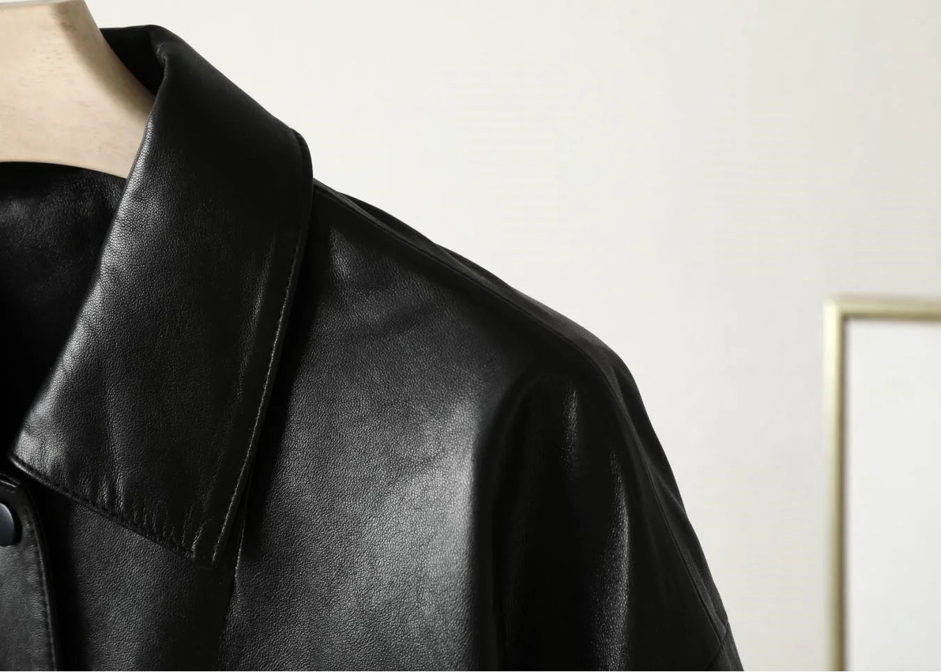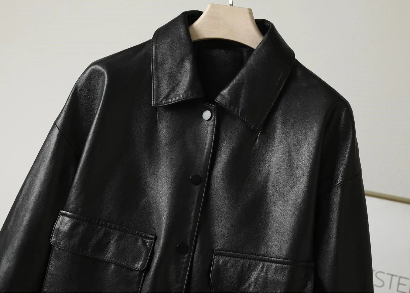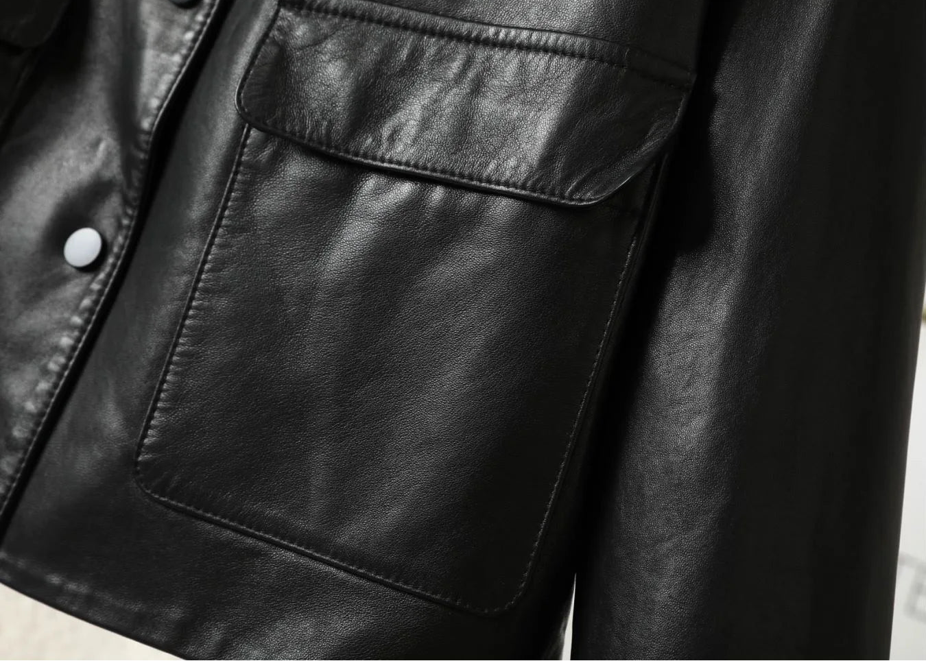 100% Sheepskin Leather Short Motorcycle Jacket for Women
