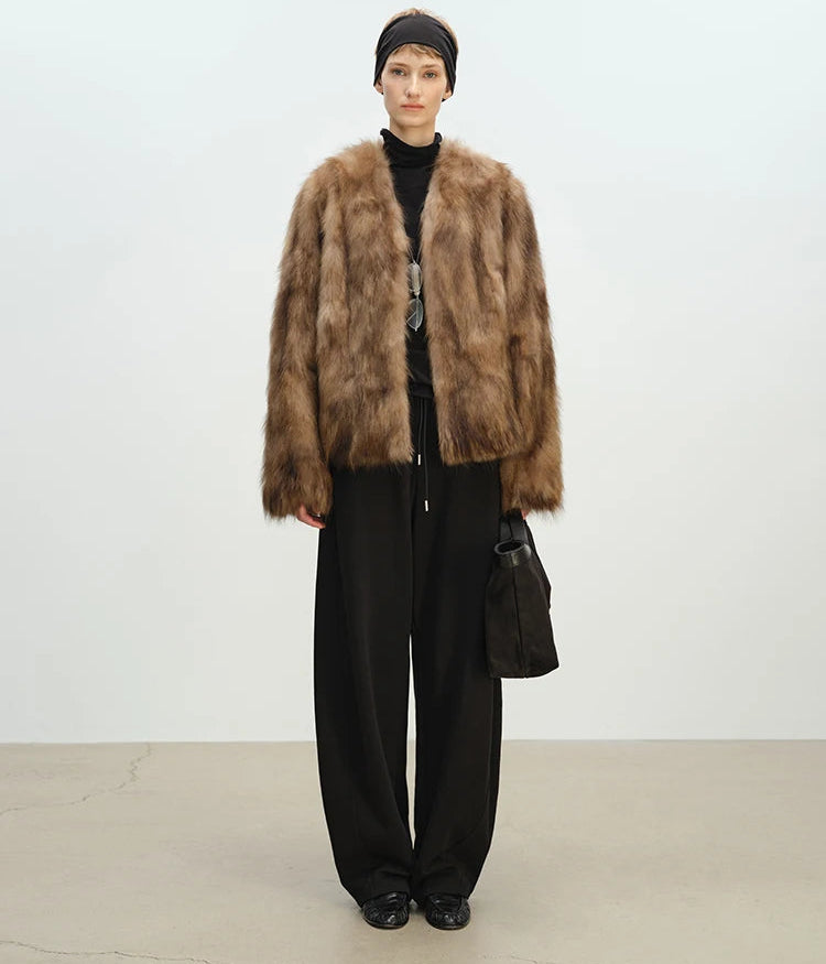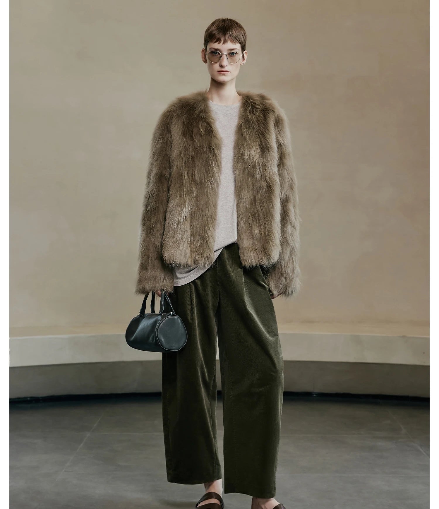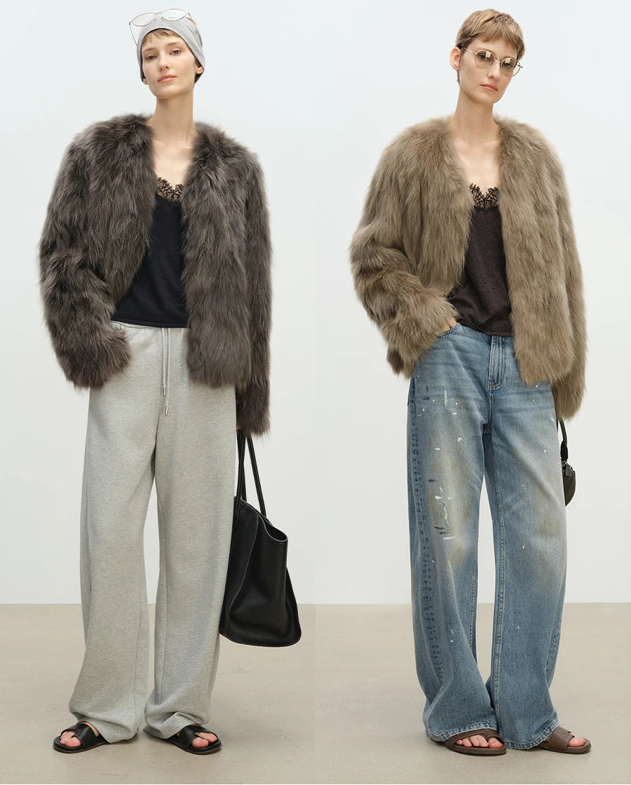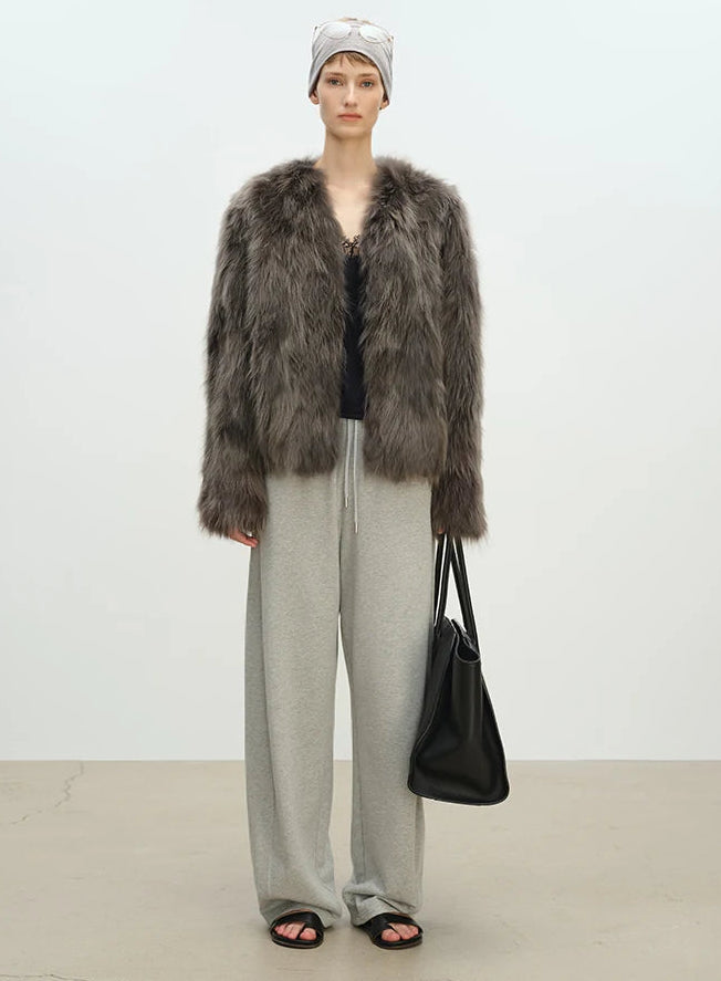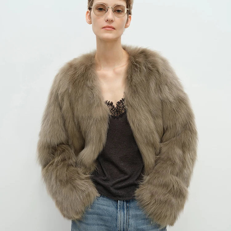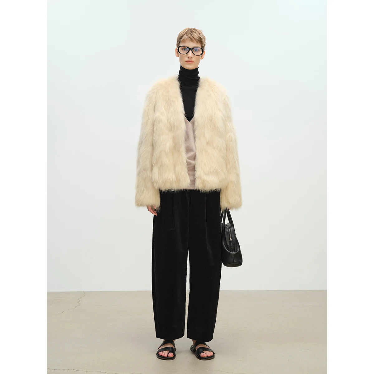 Luxury V-neck Natural Raccoon Dog Fur Winter Coat for Women
