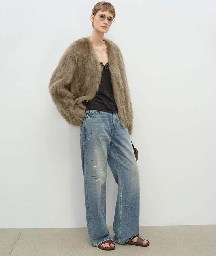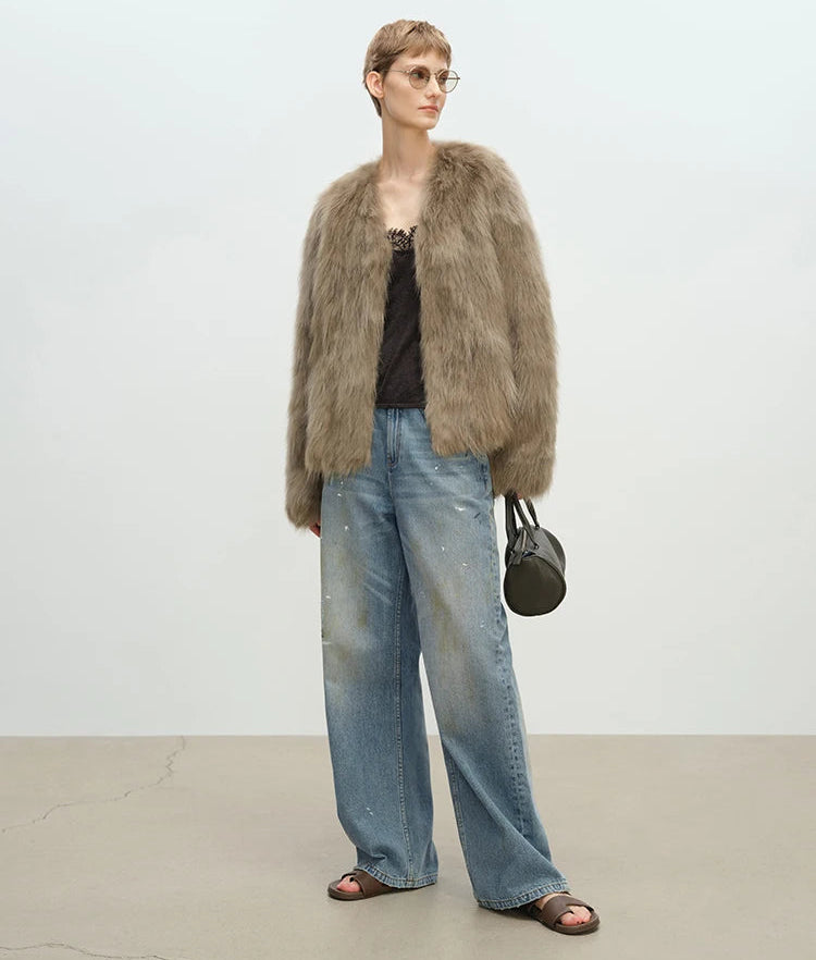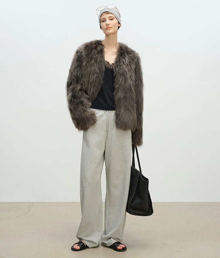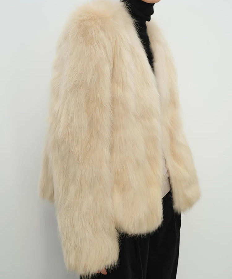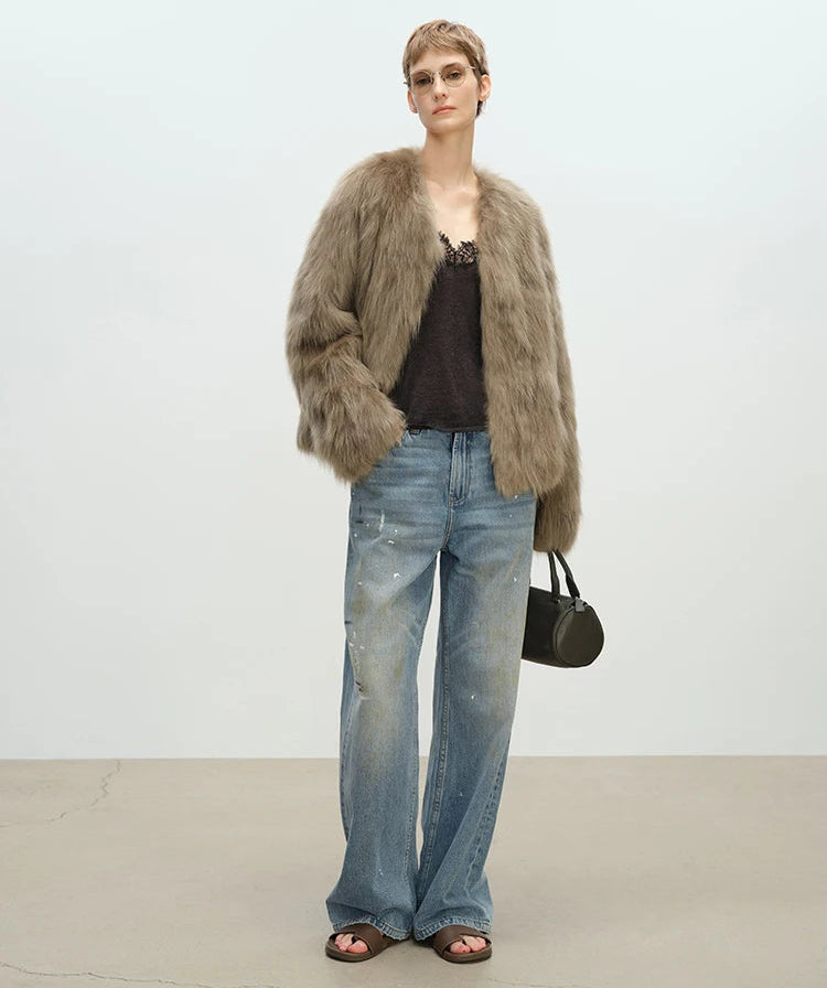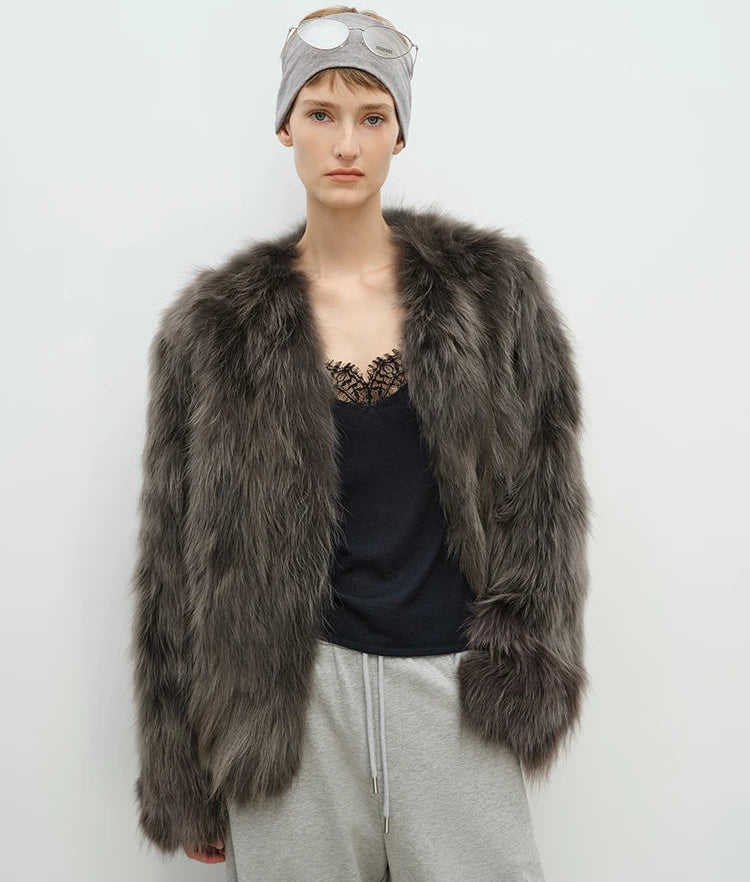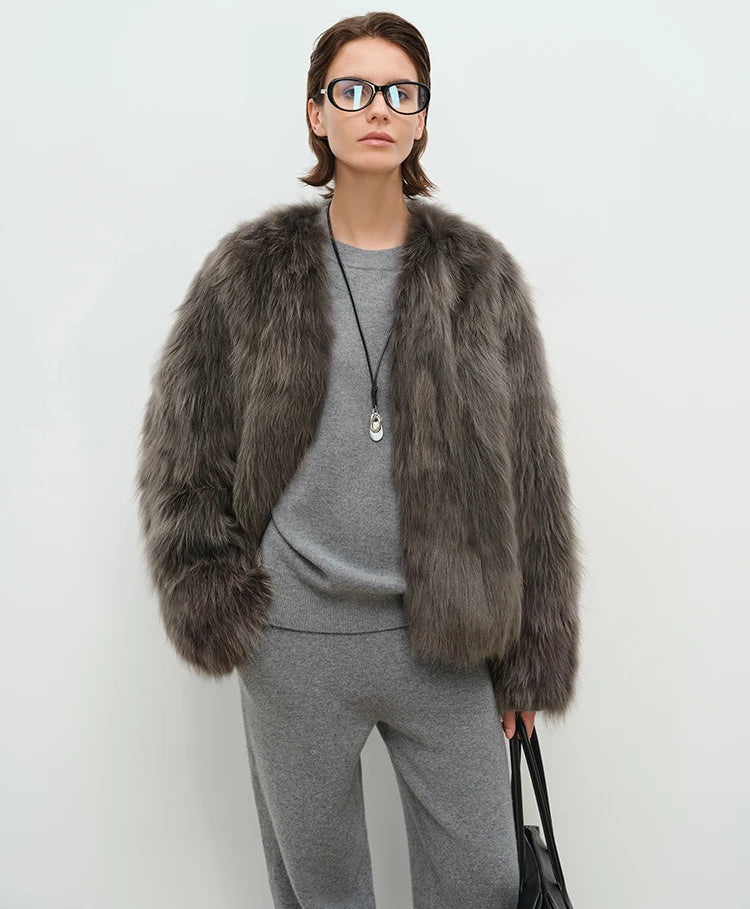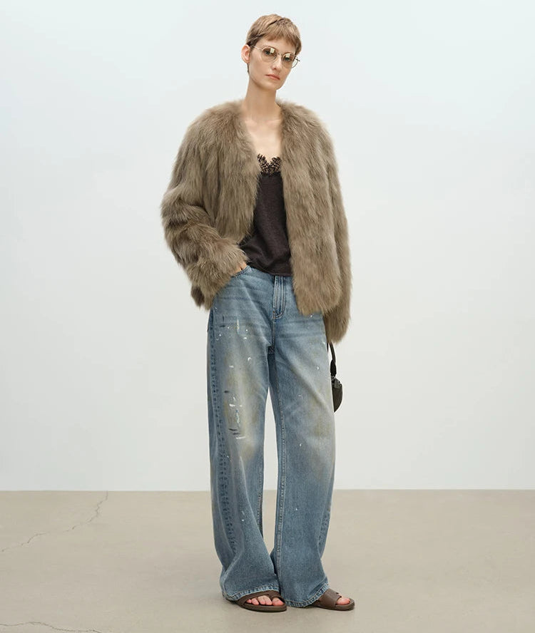 Luxury V-neck Natural Raccoon Dog Fur Winter Coat for Women
