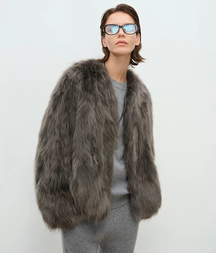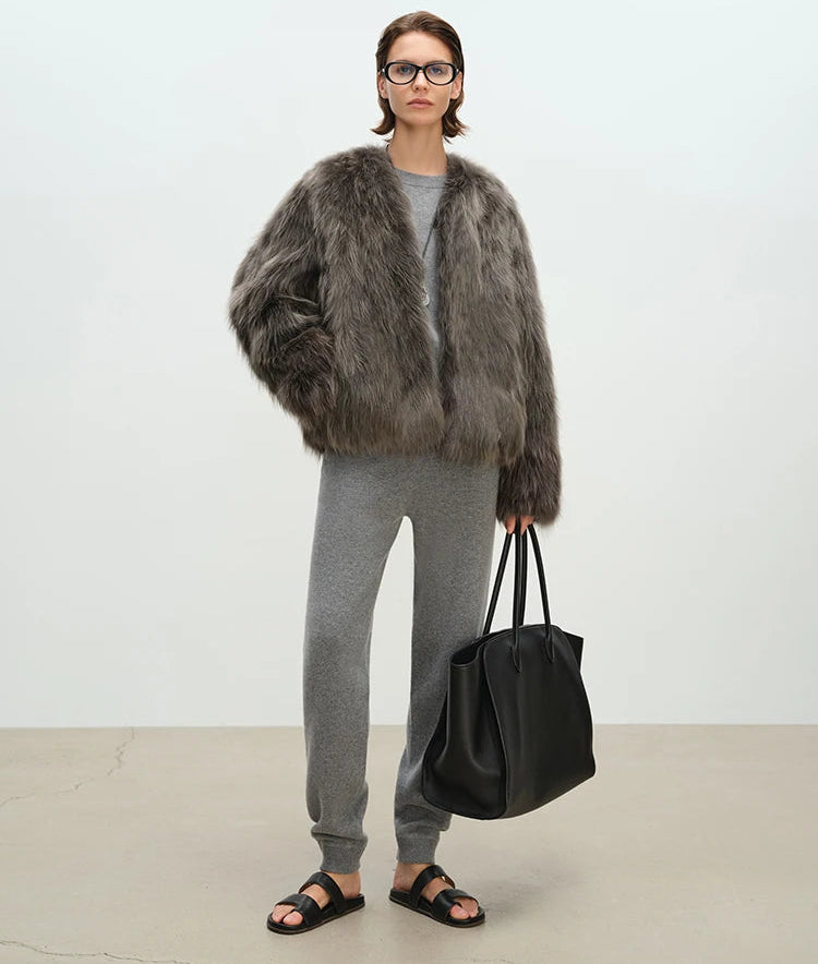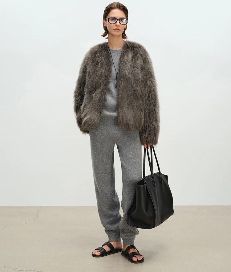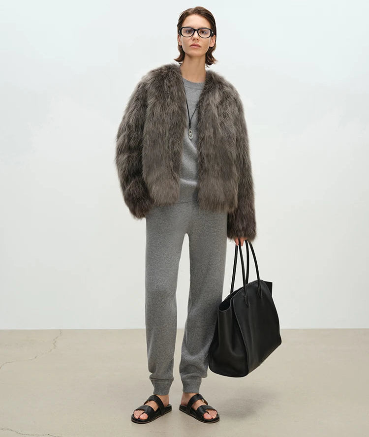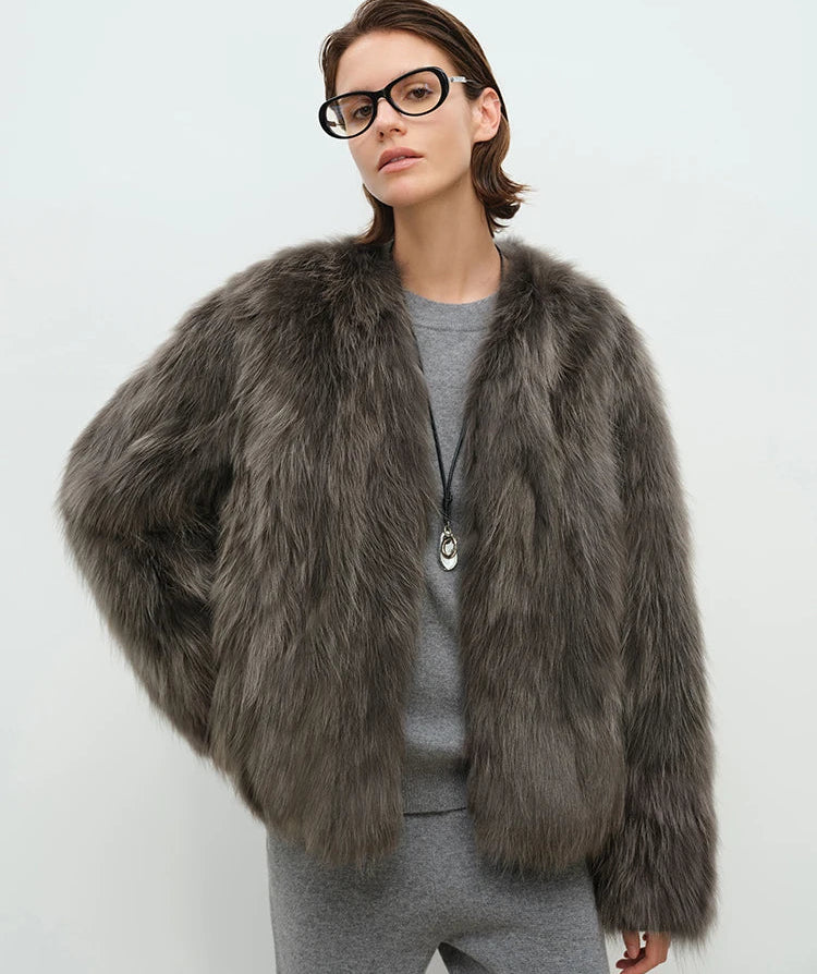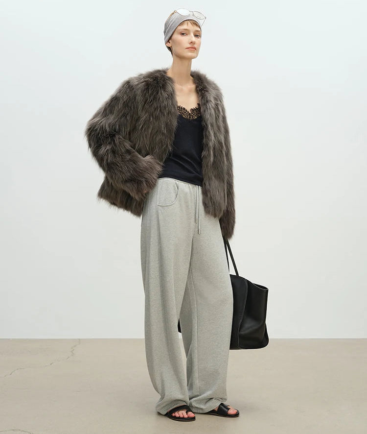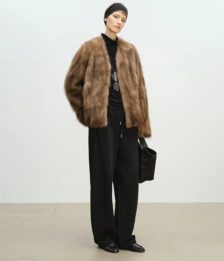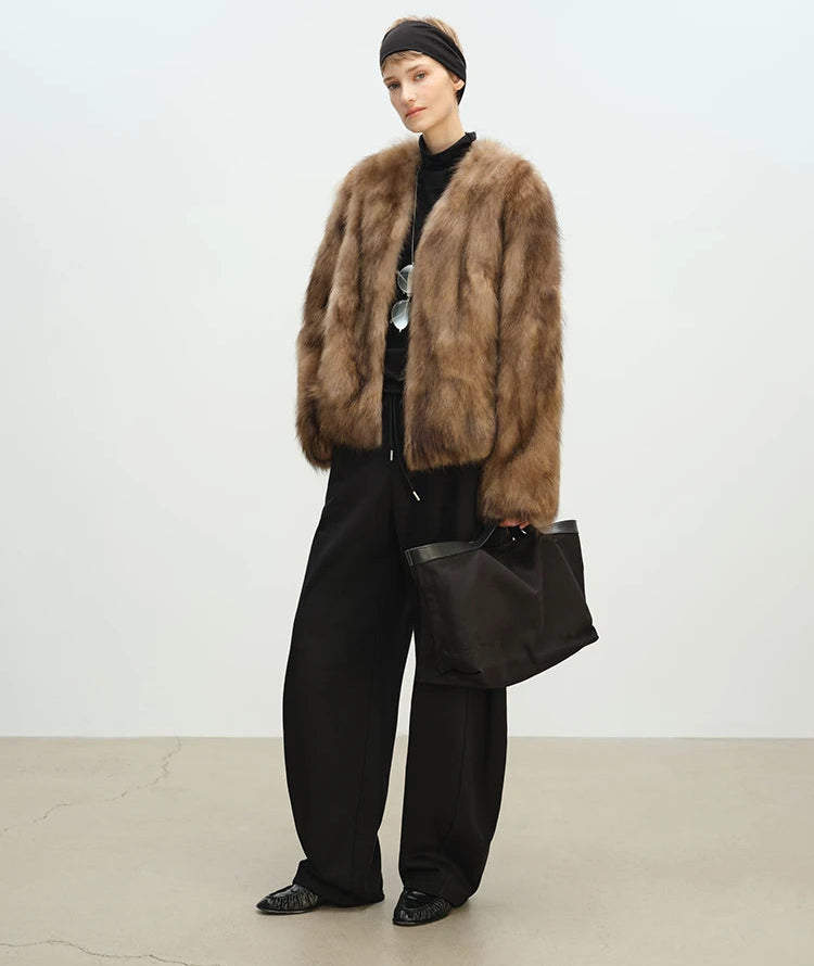 Luxury V-neck Natural Raccoon Dog Fur Winter Coat for Women