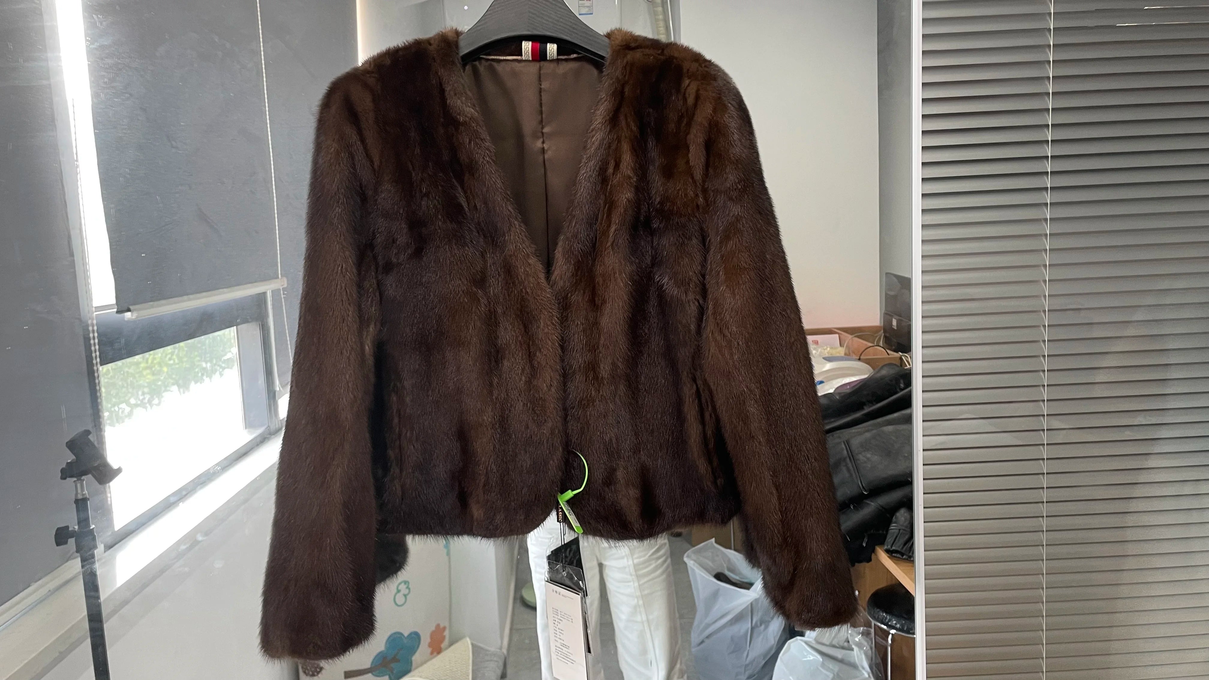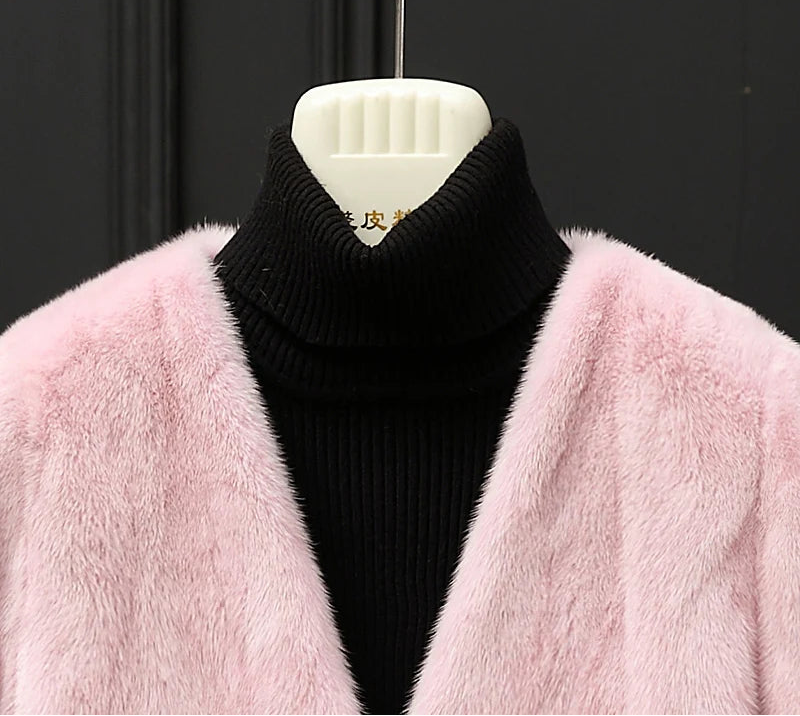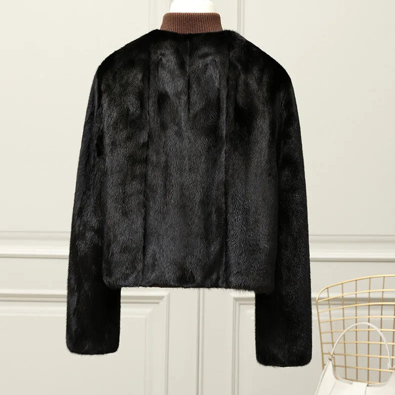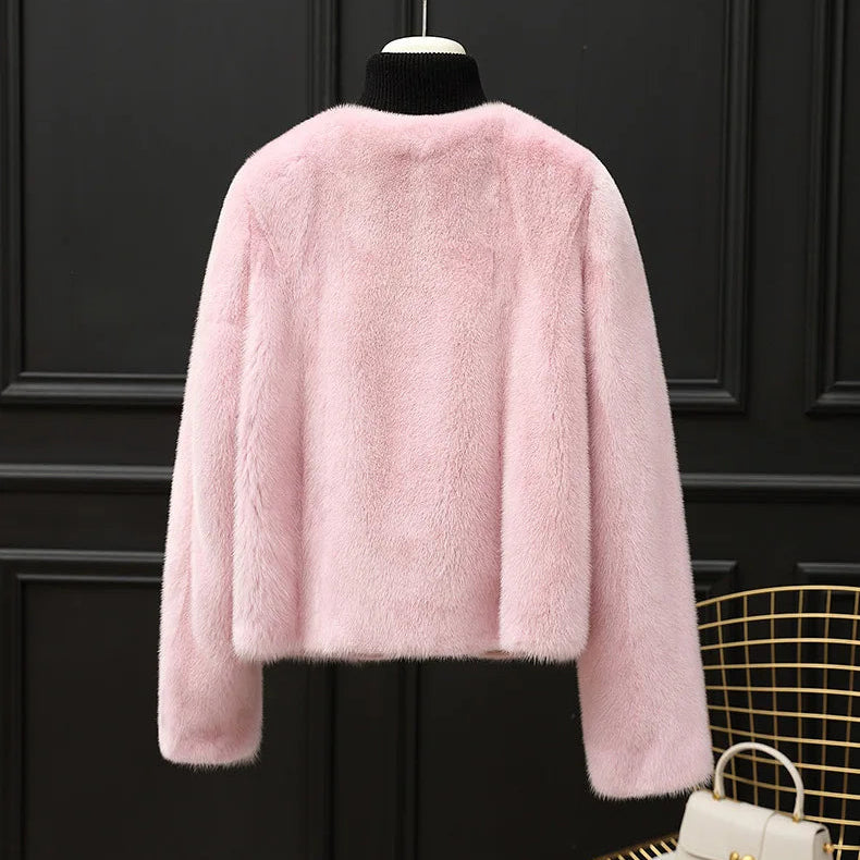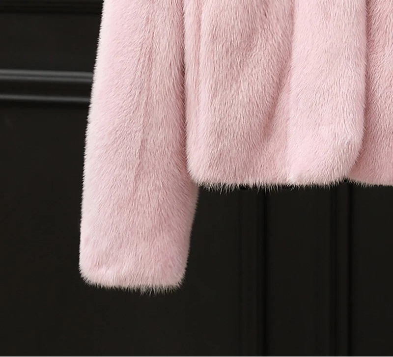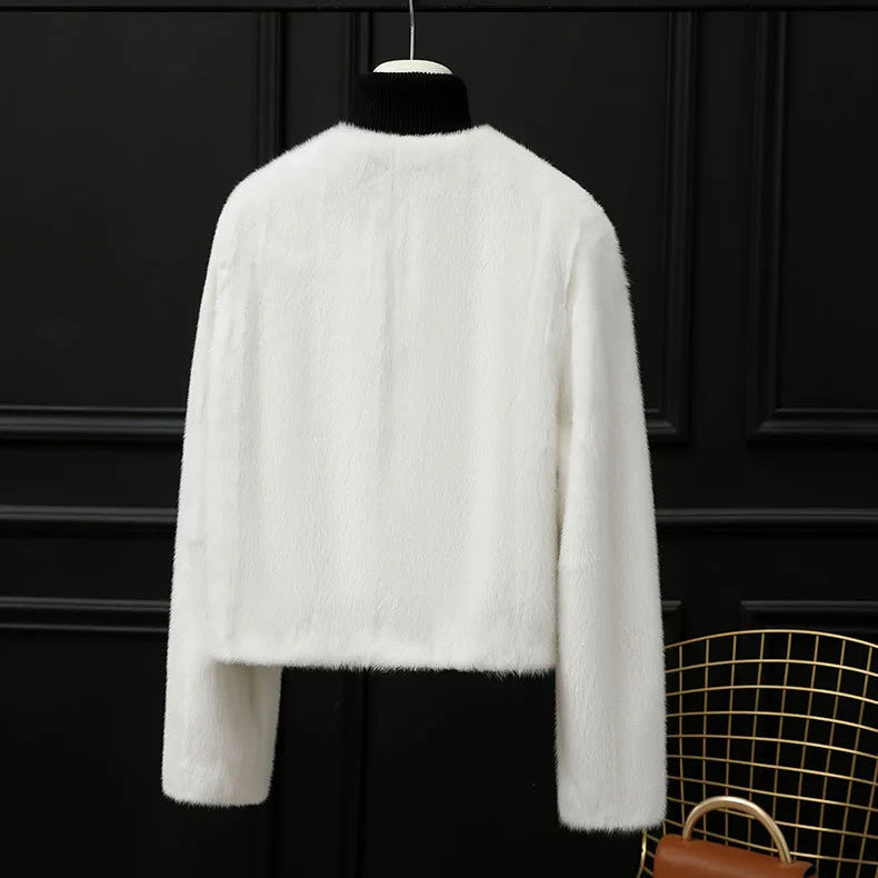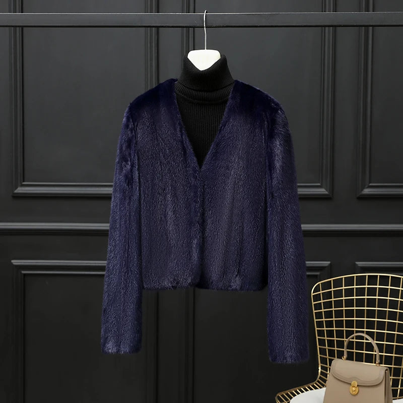 Real Whole Mink Fur Short V-neck Winter Jacket for Women