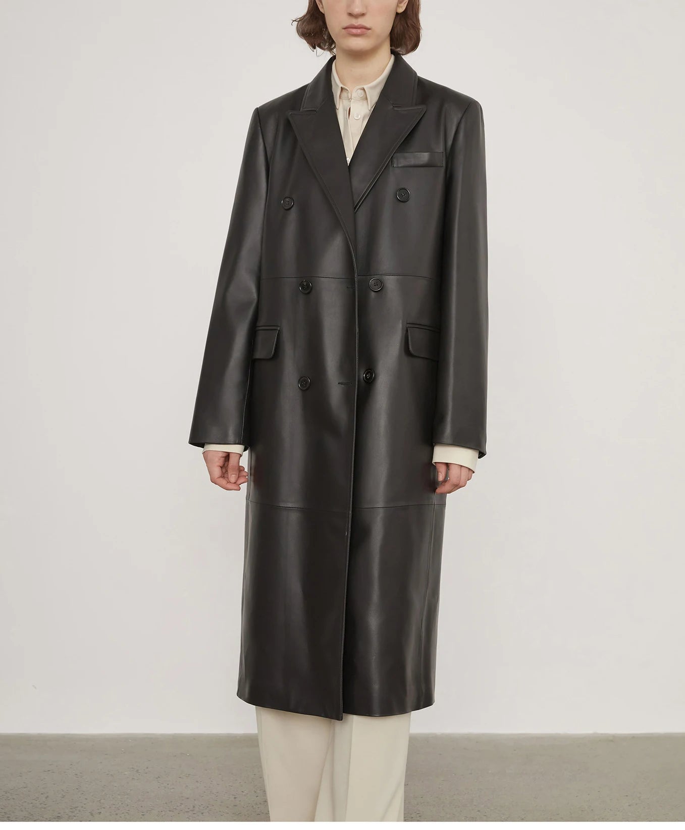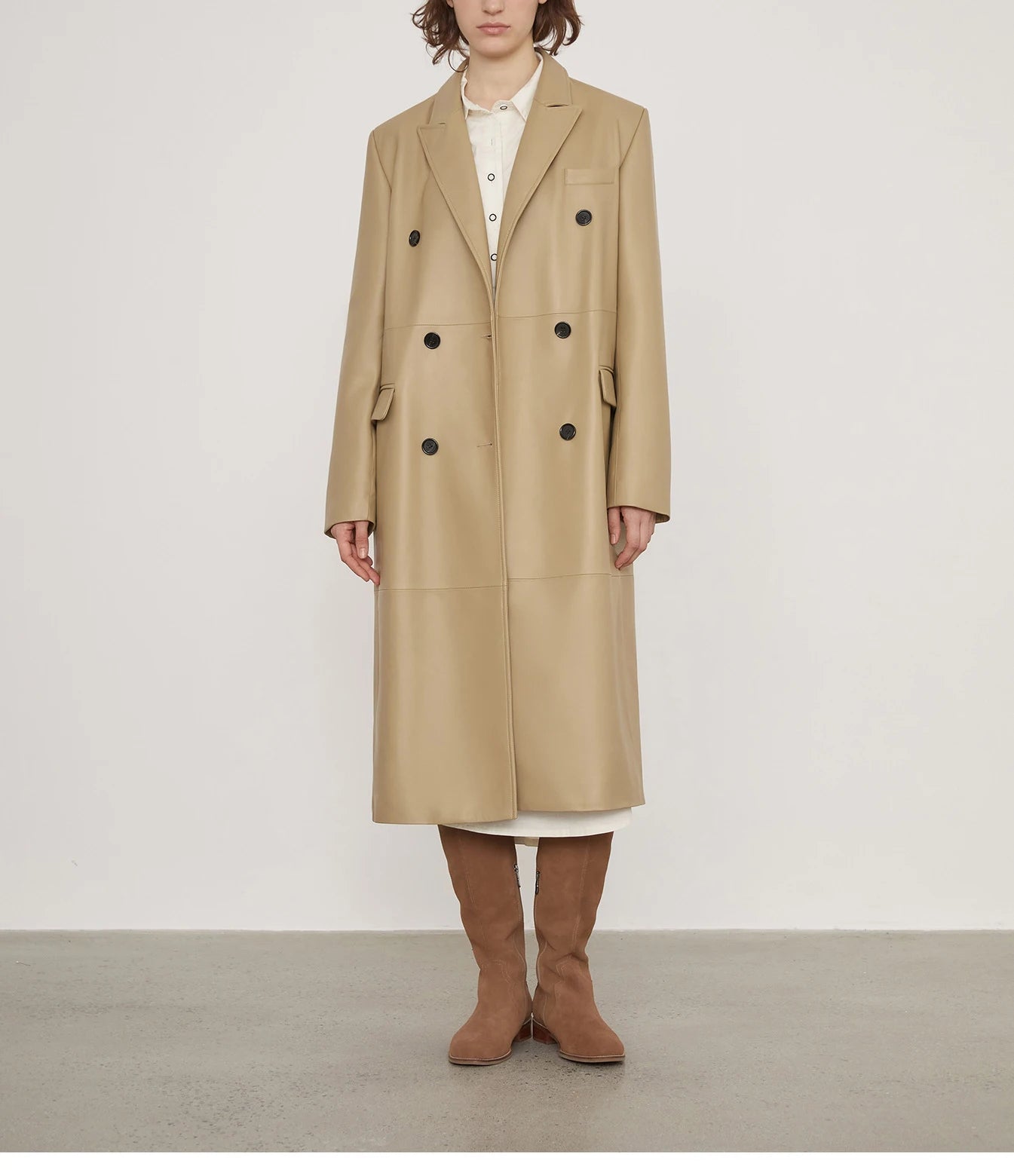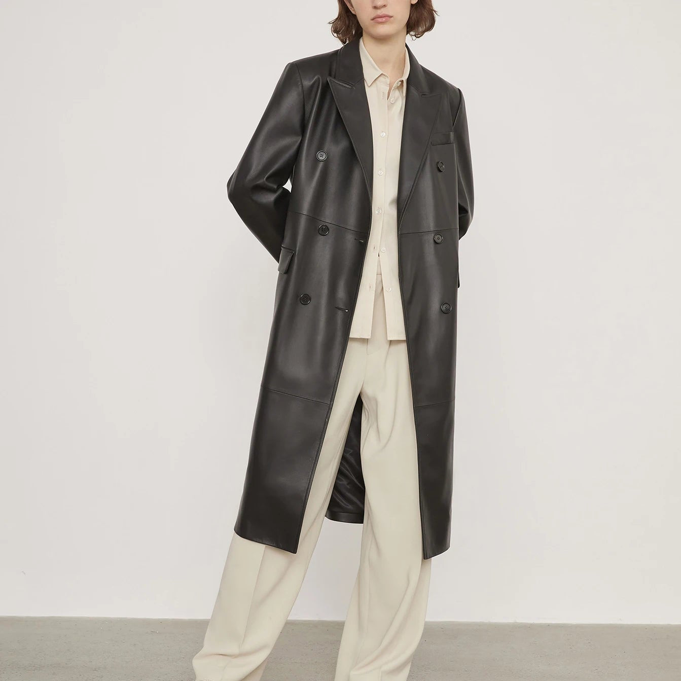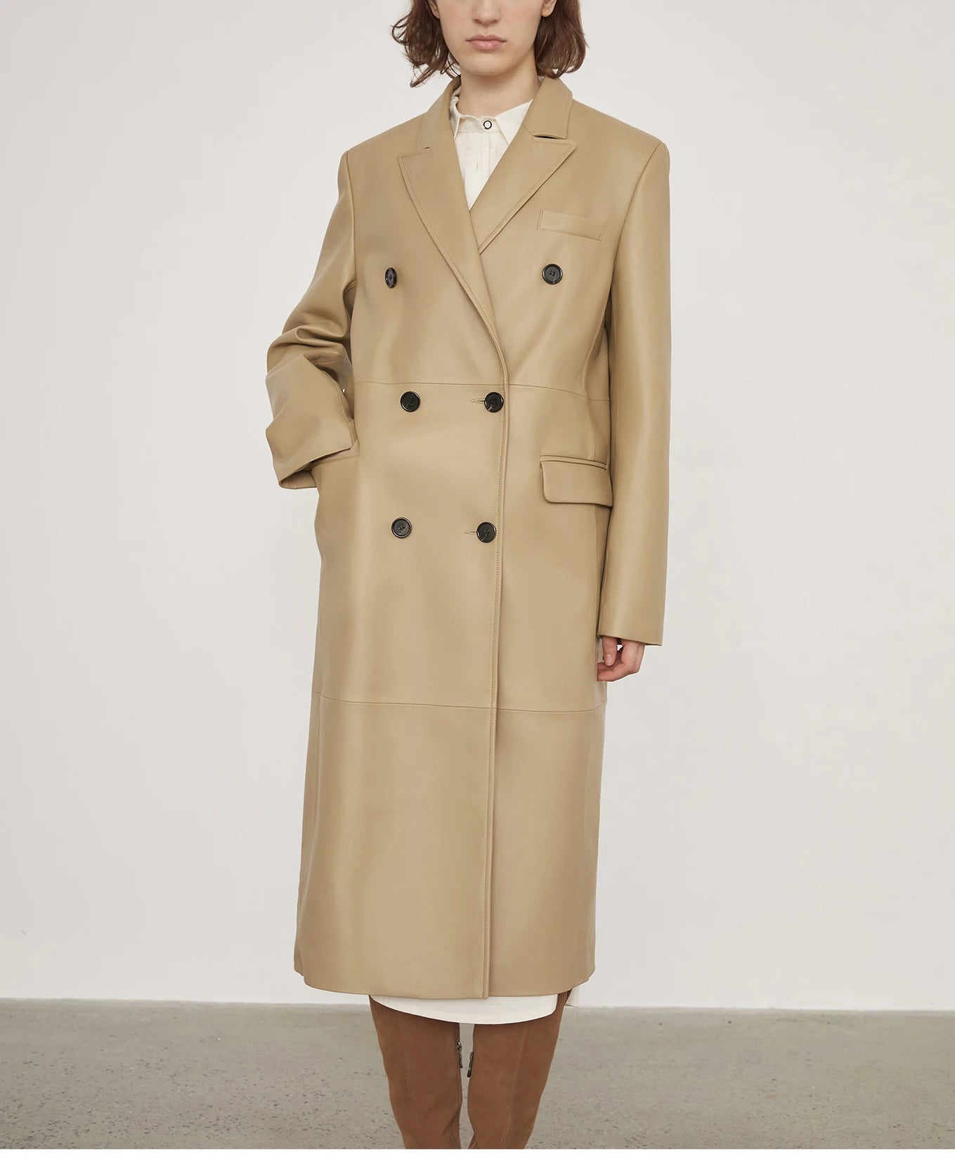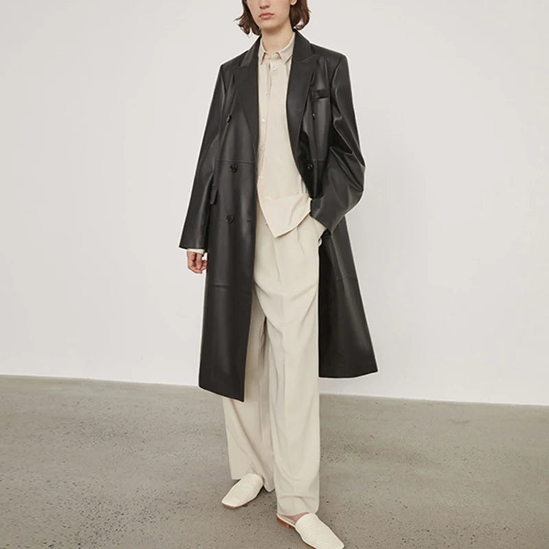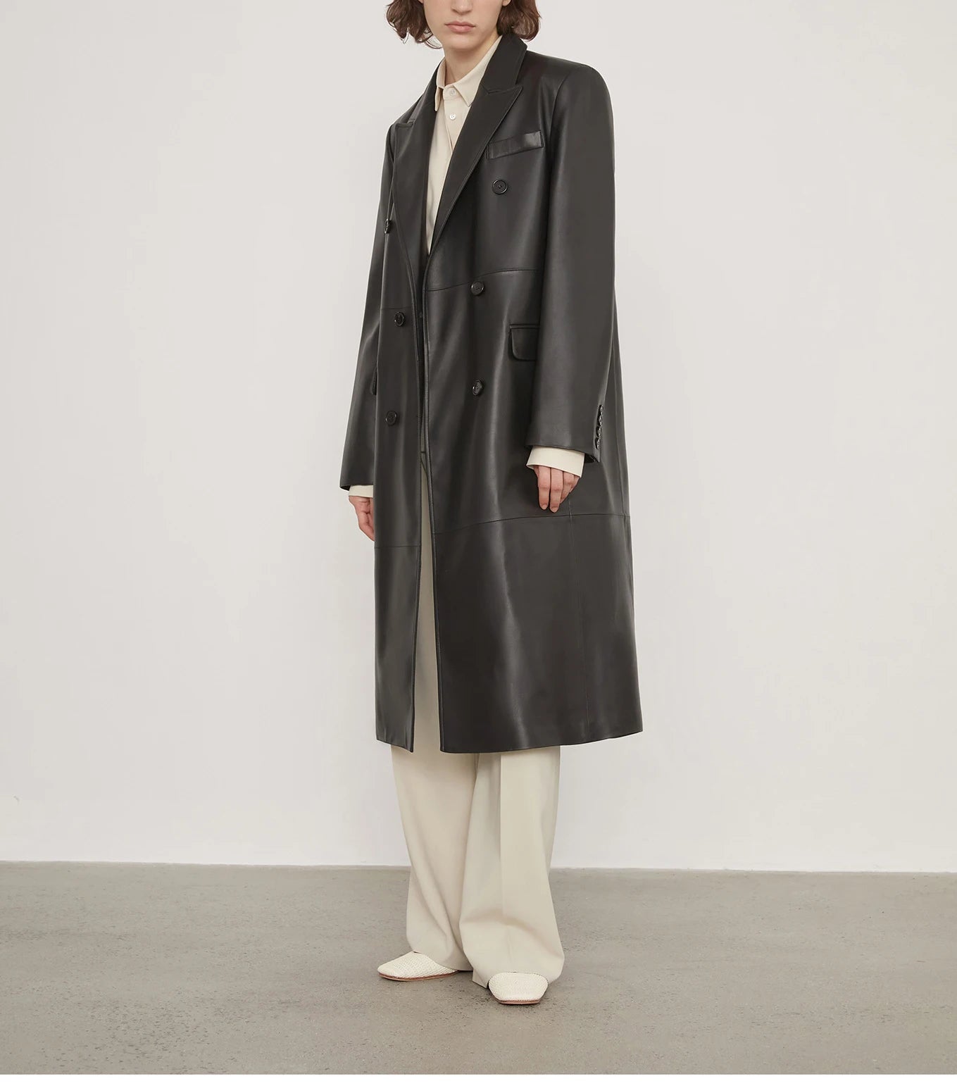 Sheepskin Peak Lapel Double Breasted Long Trench Coat for Women