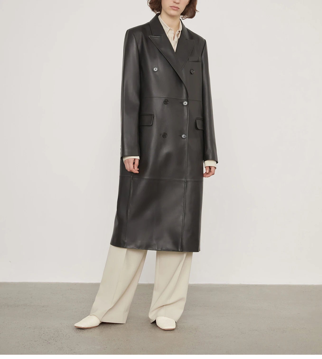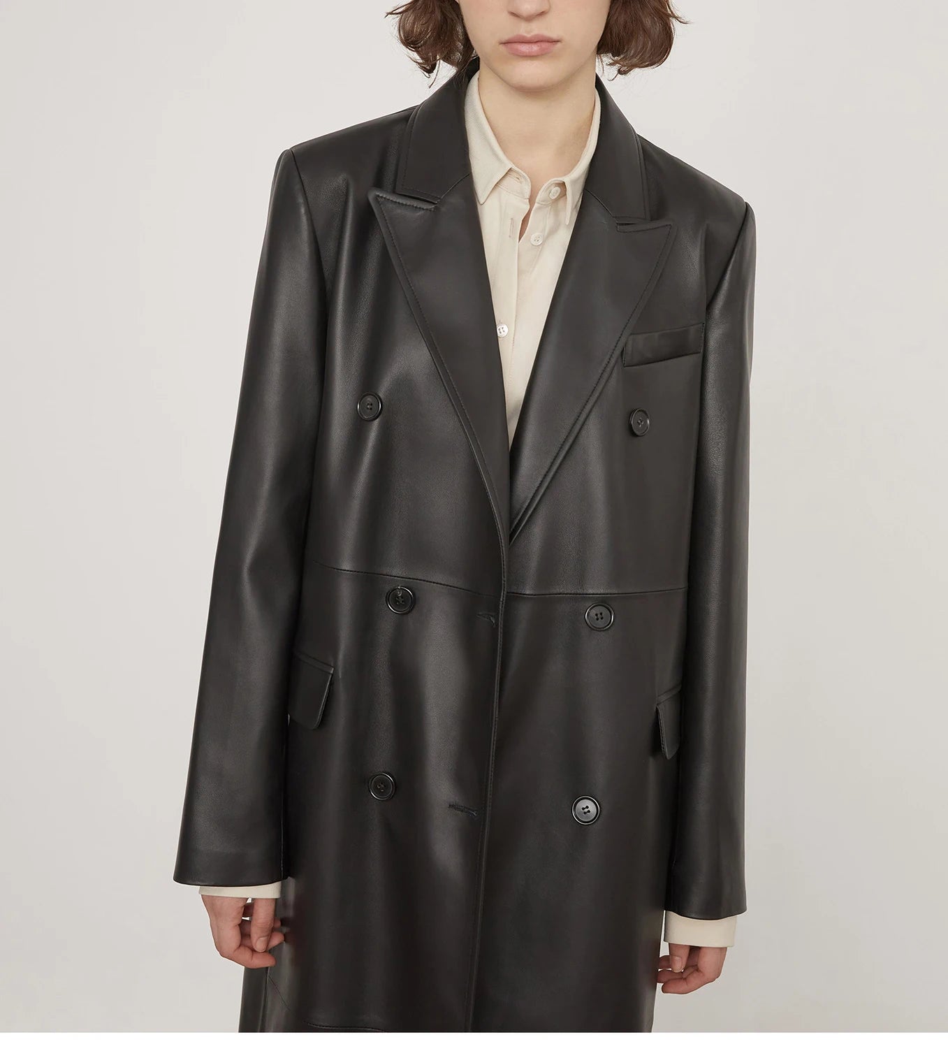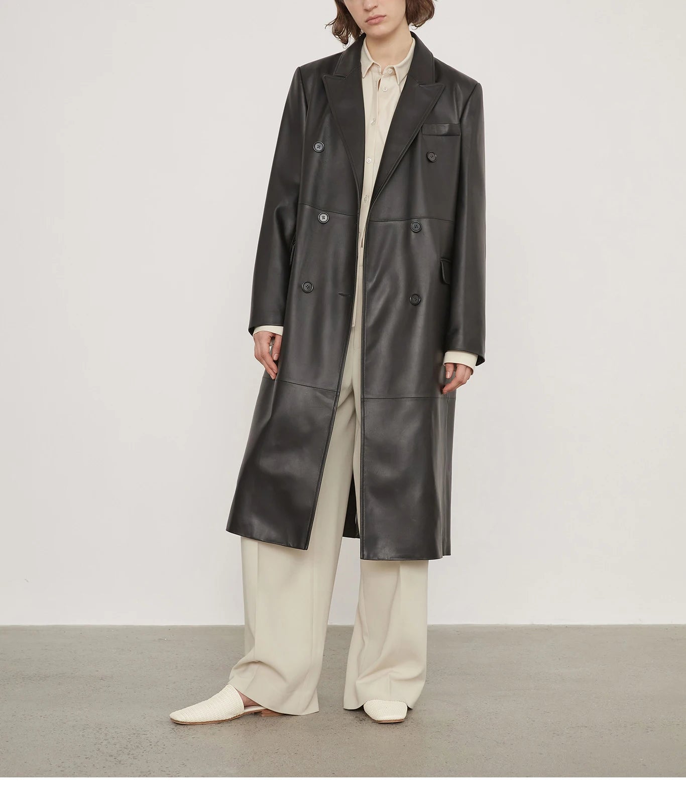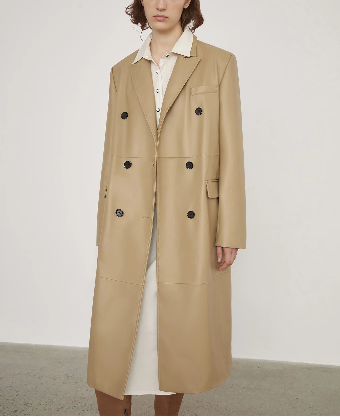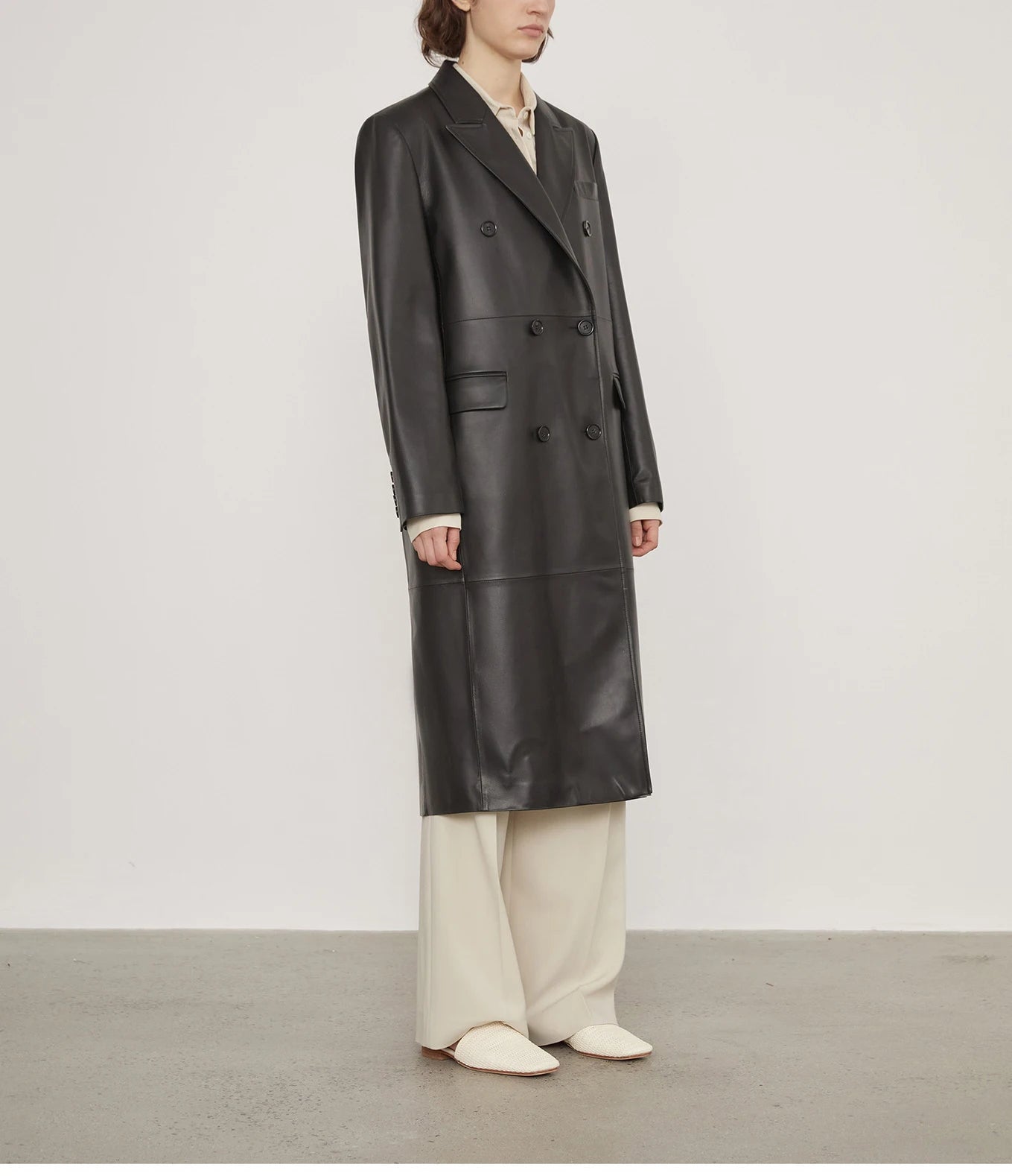 Sheepskin Peak Lapel Double Breasted Long Trench Coat for Women