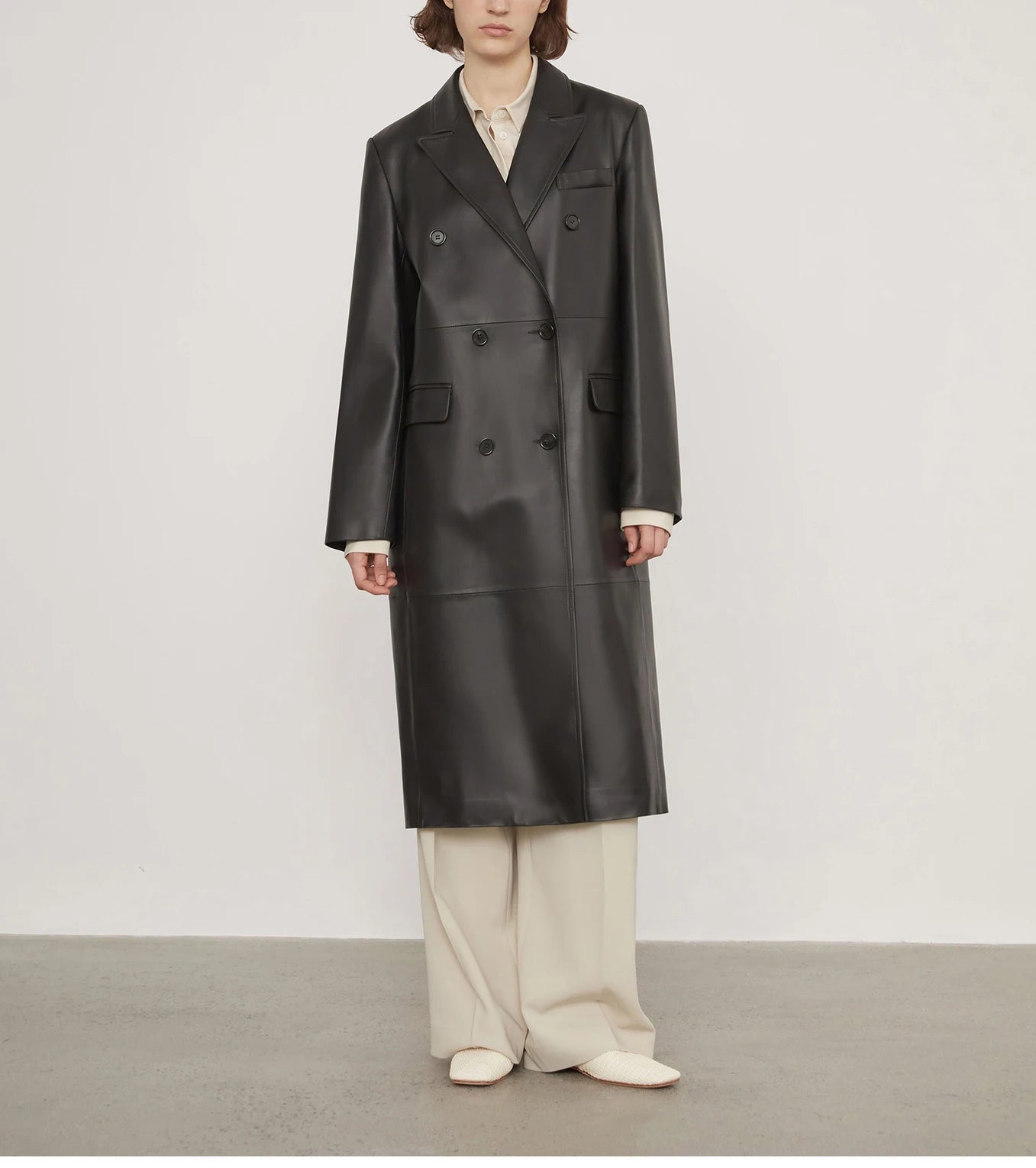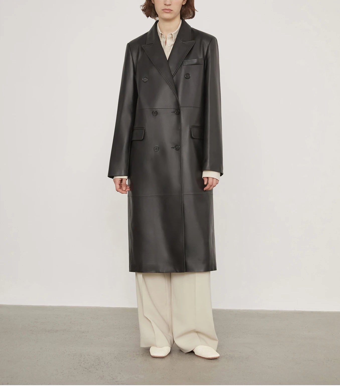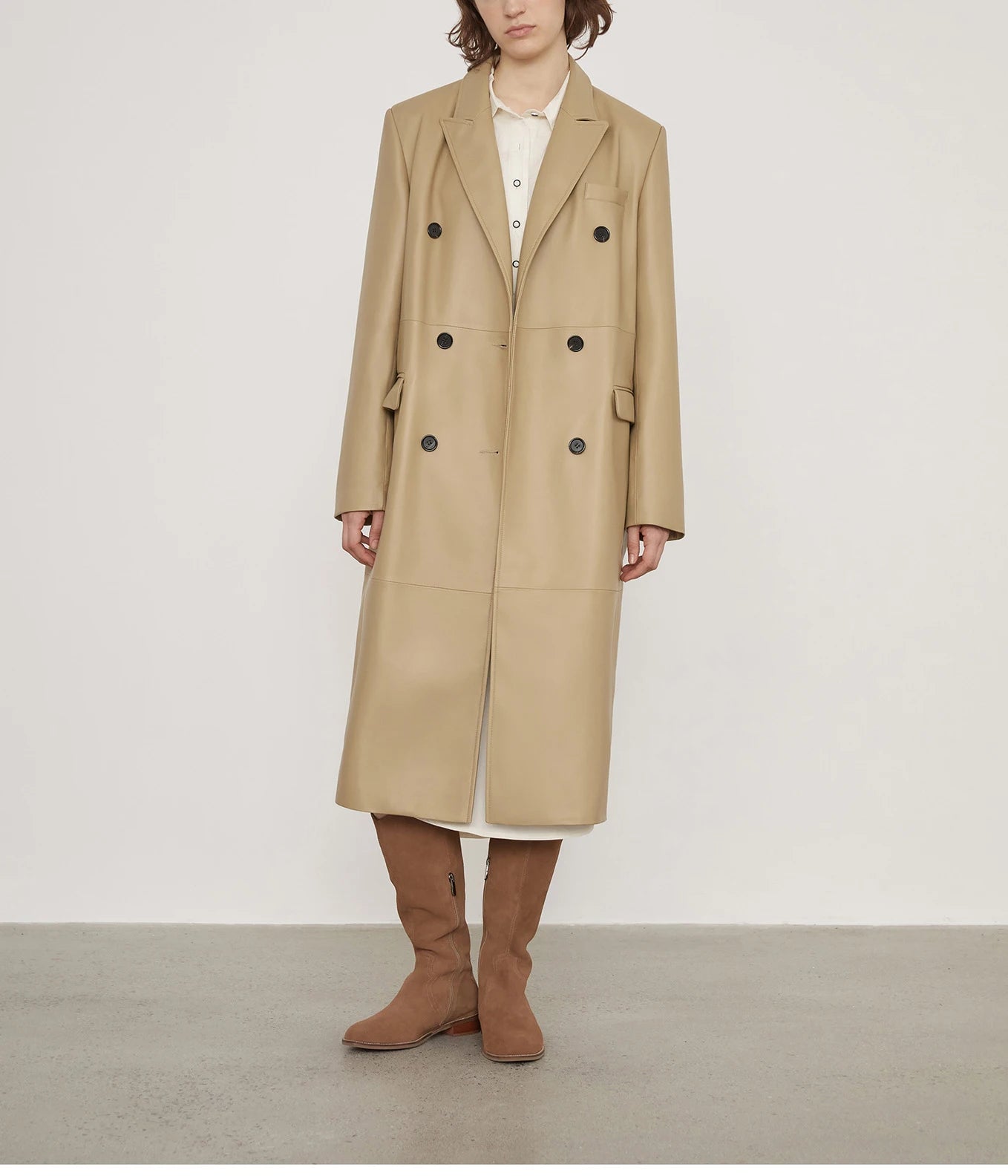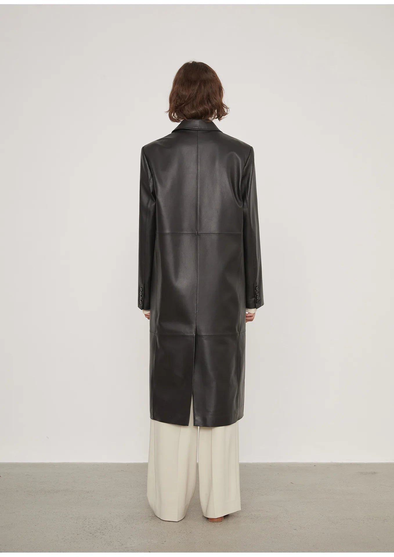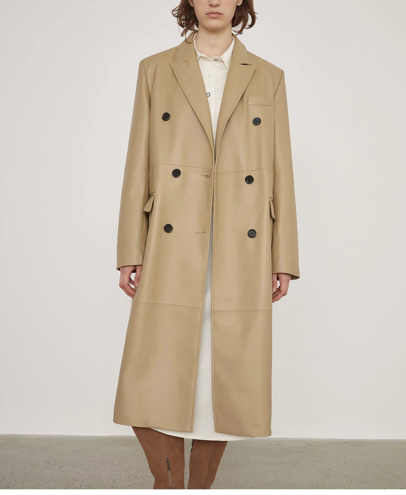 Sheepskin Peak Lapel Double Breasted Long Trench Coat for Women