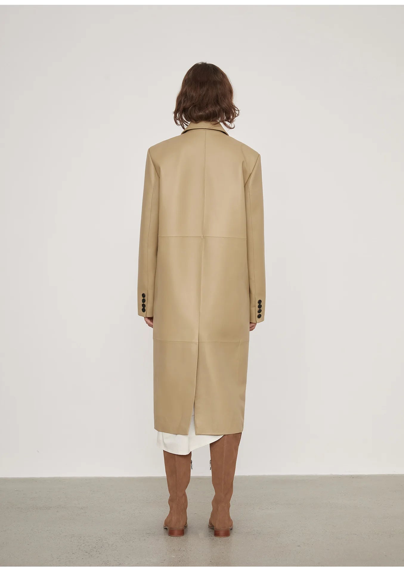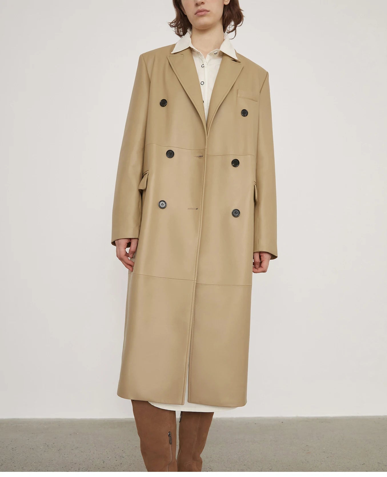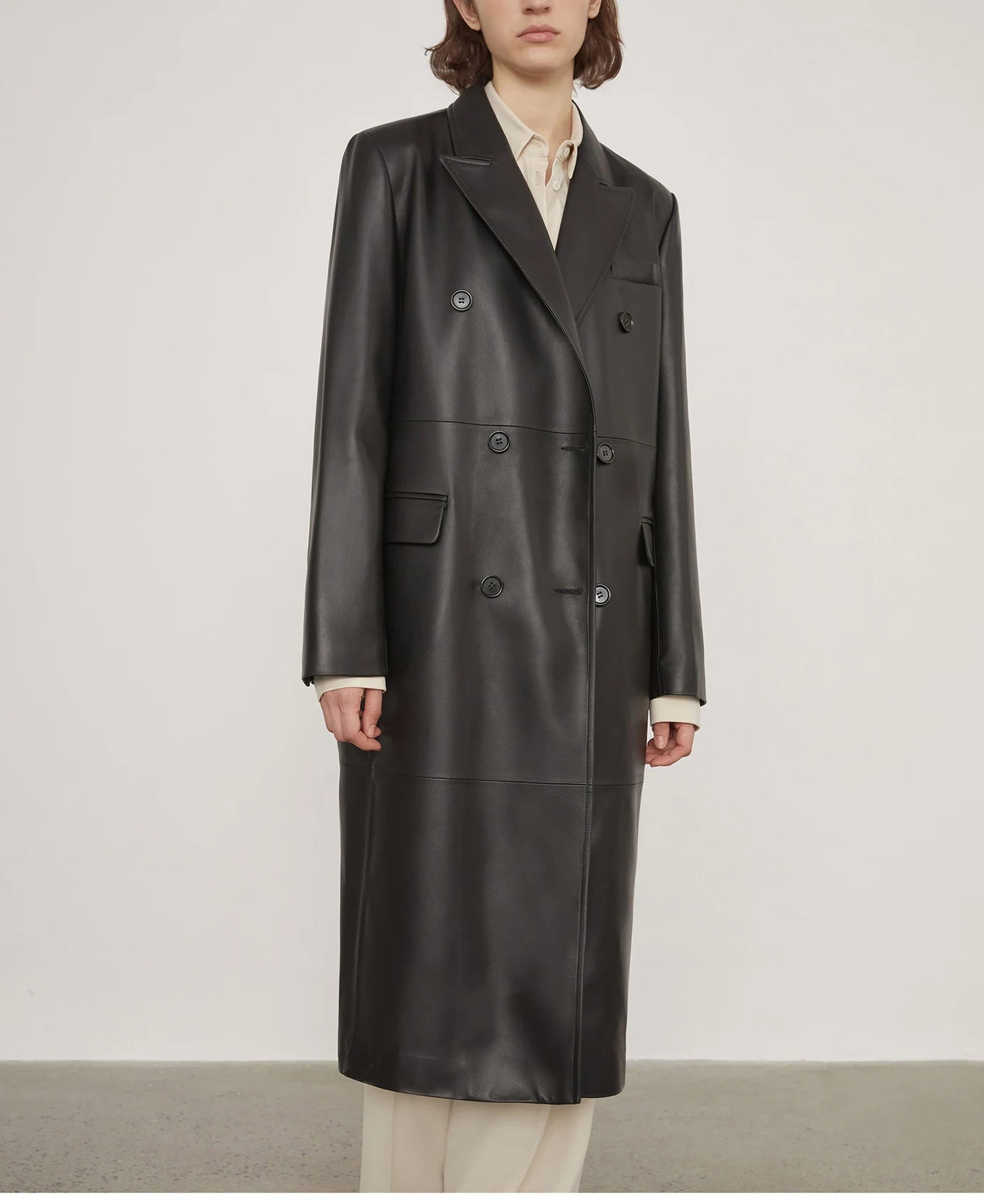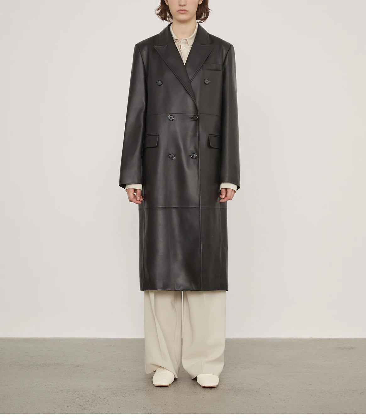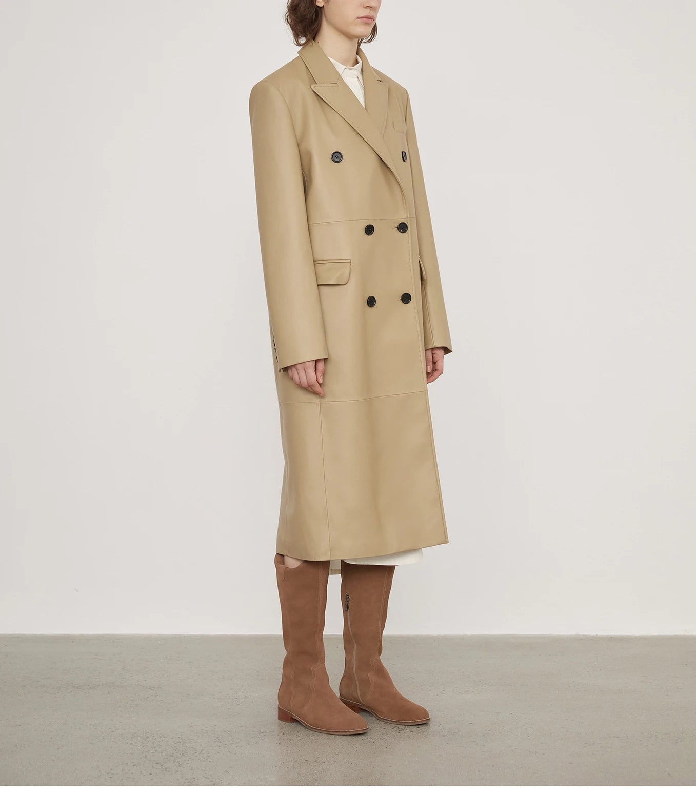 Sheepskin Peak Lapel Double Breasted Long Trench Coat for Women