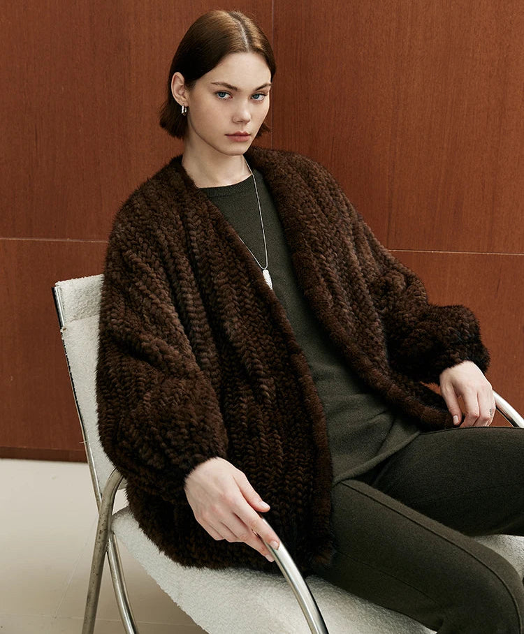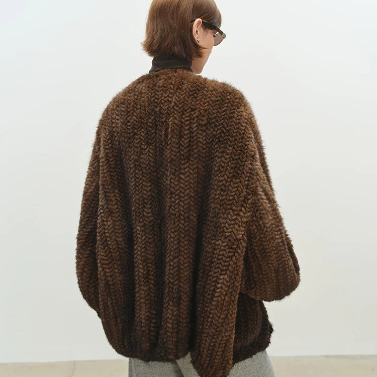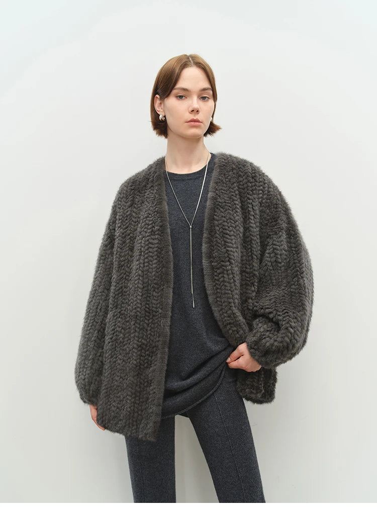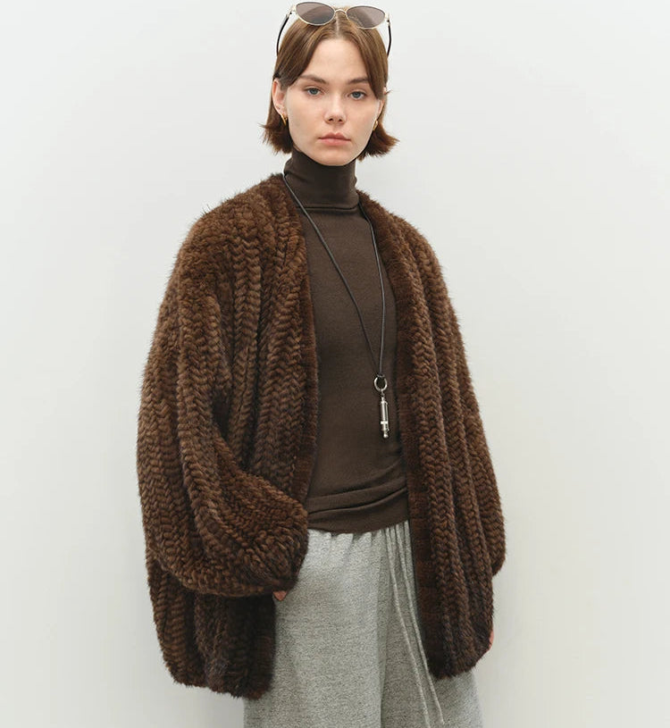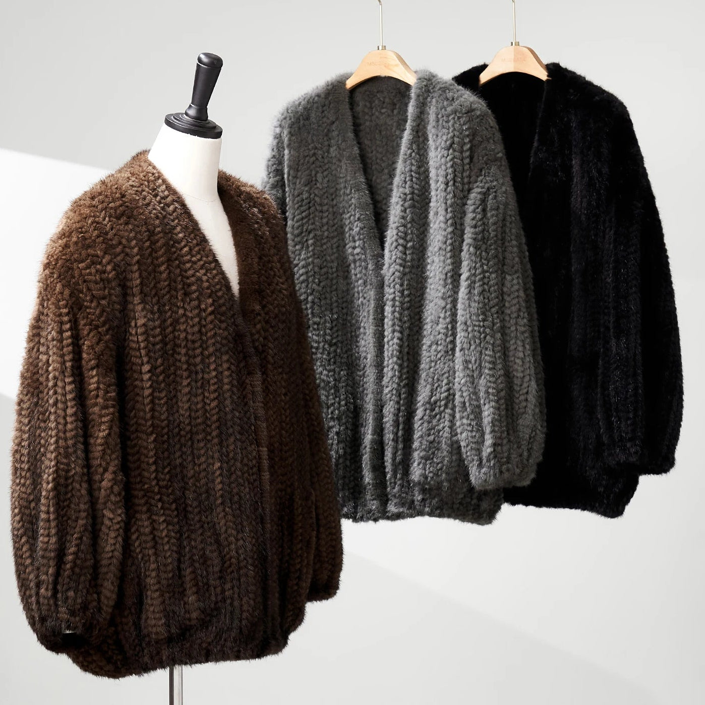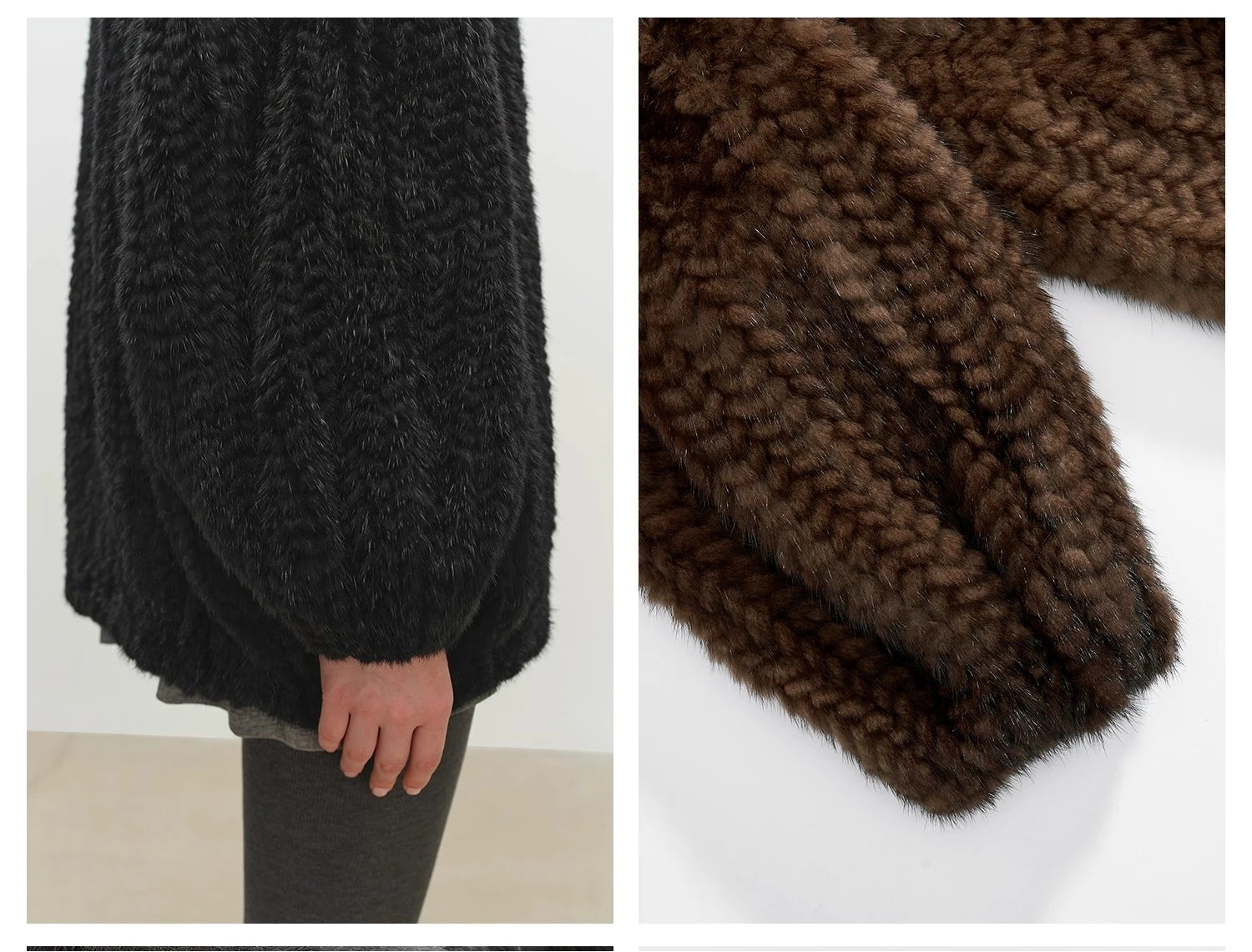 Women's Double-Sided Weaving Real Mink Fur Lantern Sleeves Winter Coat