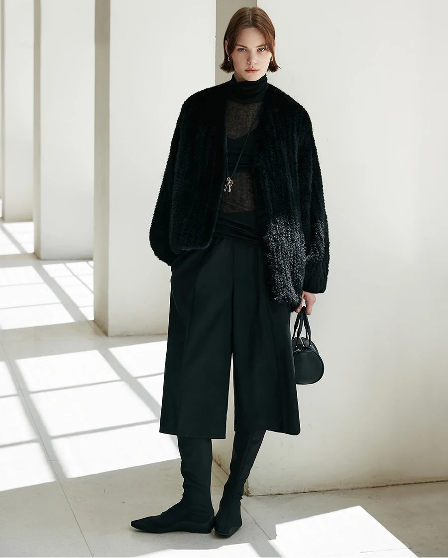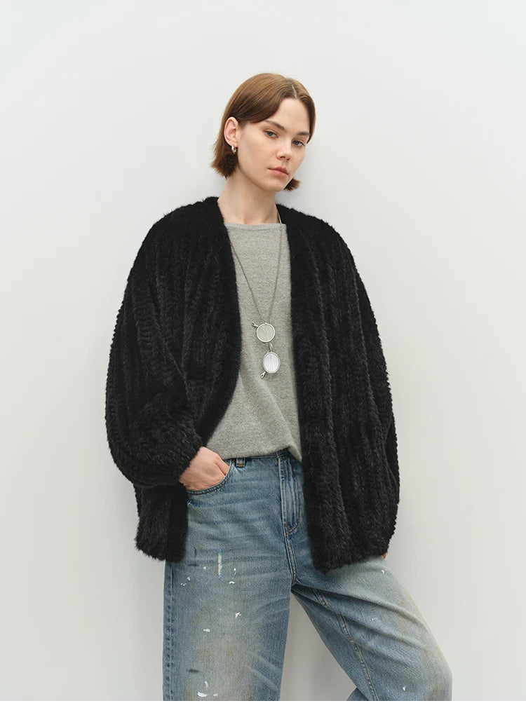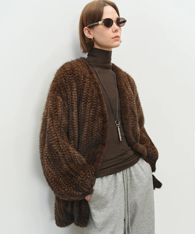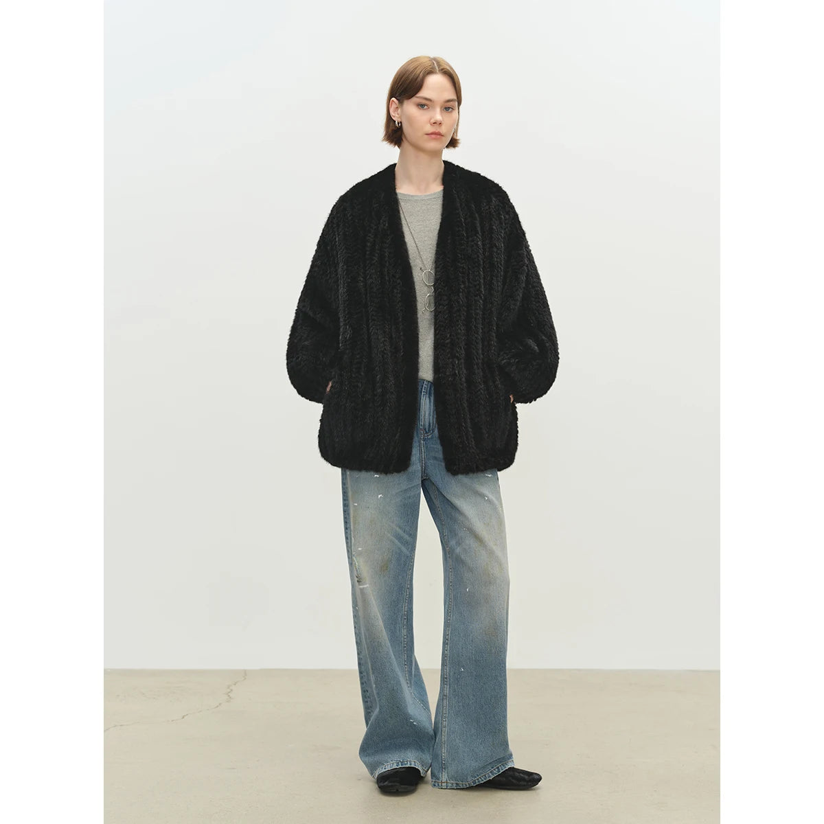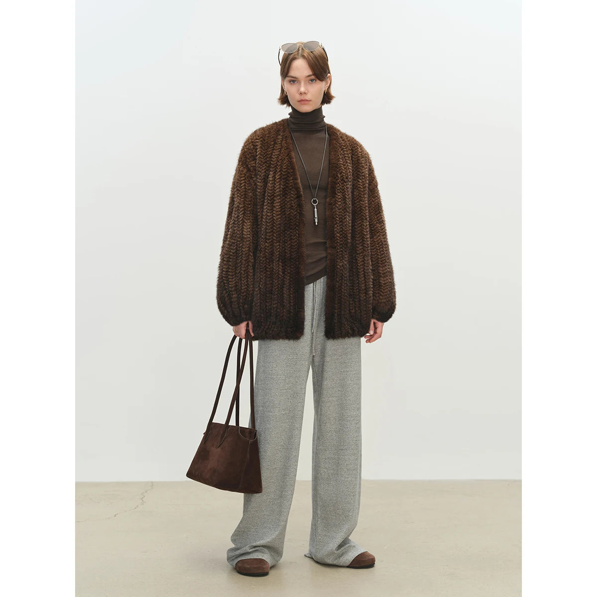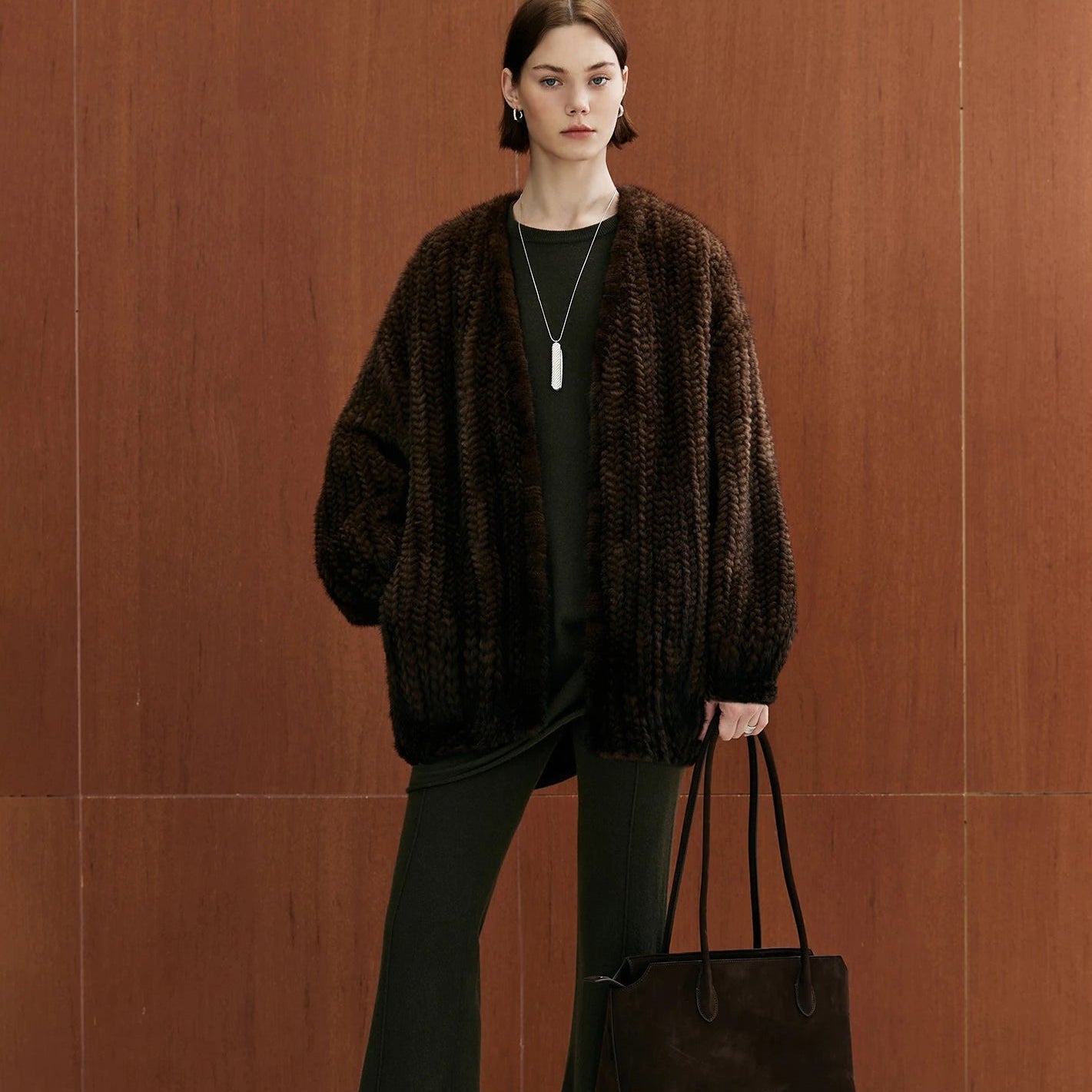 Women's Double-Sided Weaving Real Mink Fur Lantern Sleeves Winter Coat