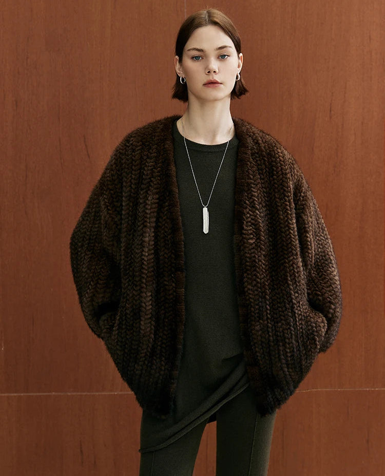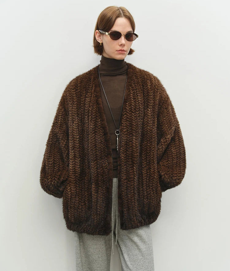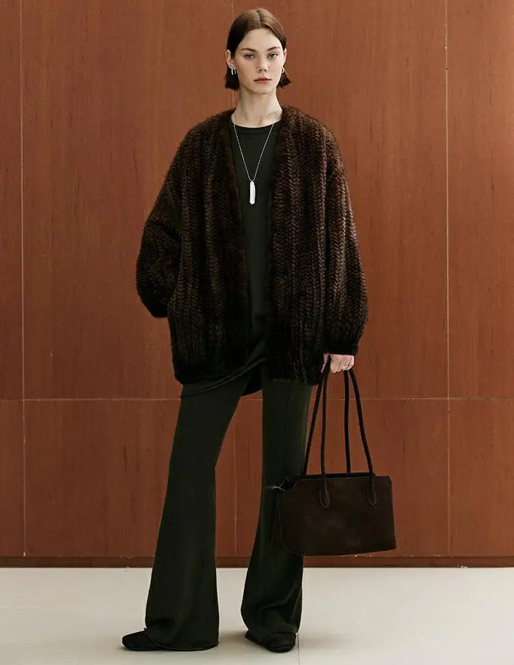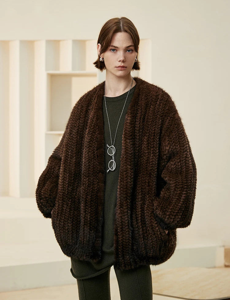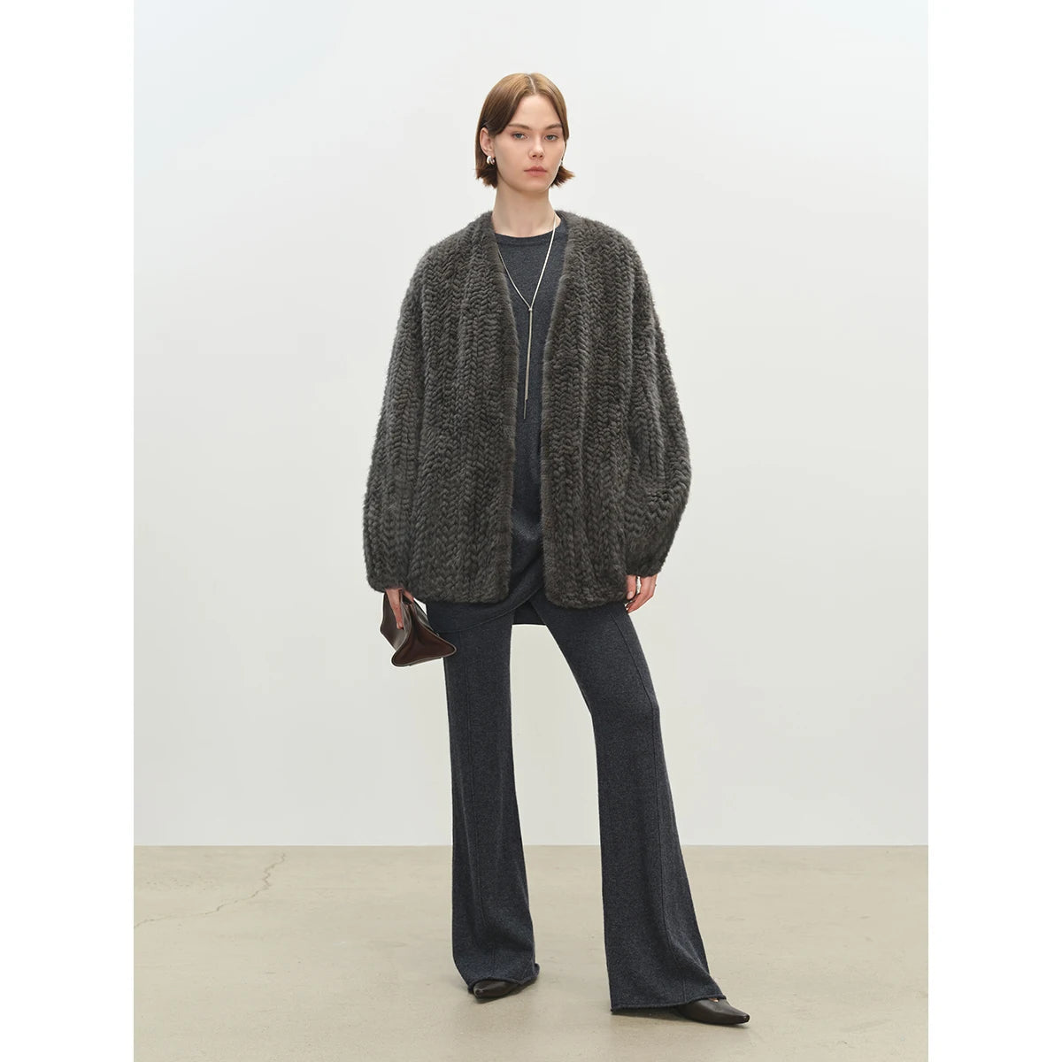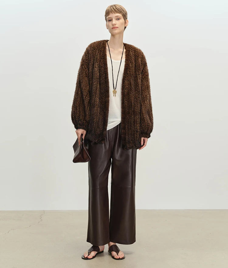 Women's Double-Sided Weaving Real Mink Fur Lantern Sleeves Winter Coat