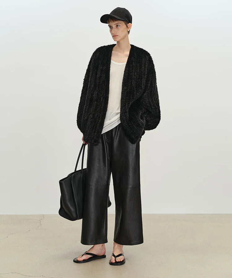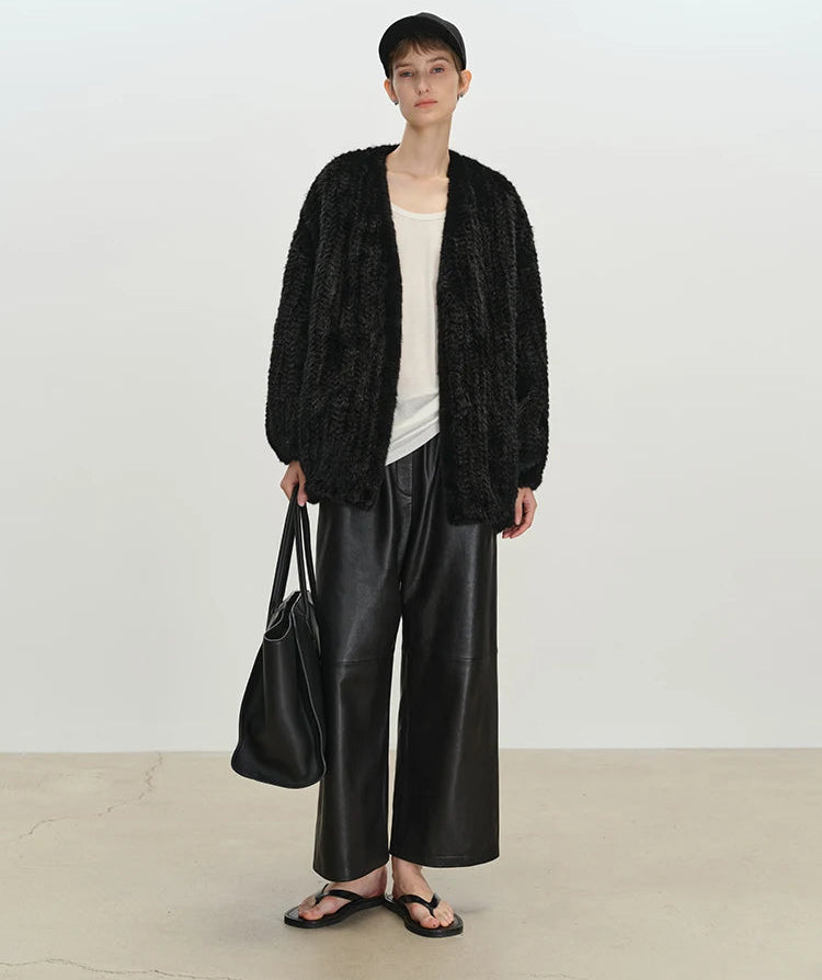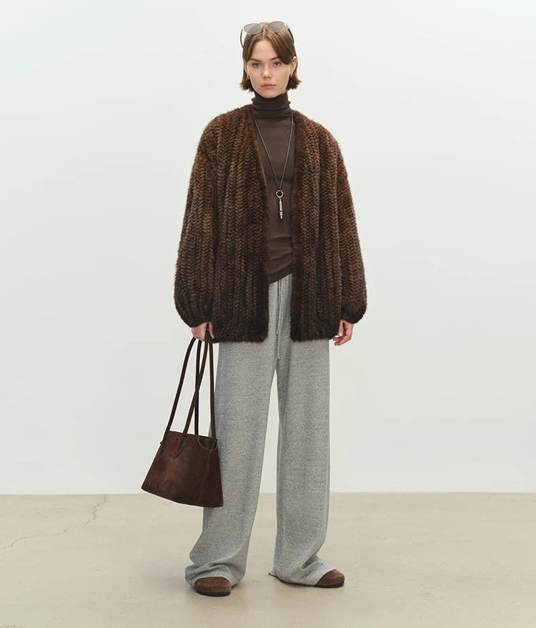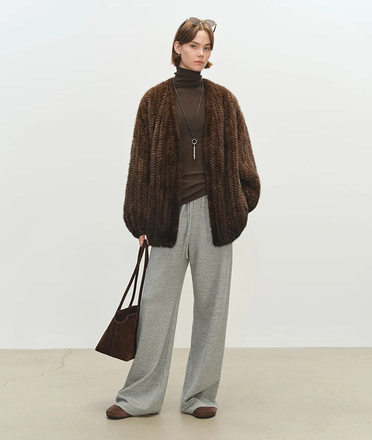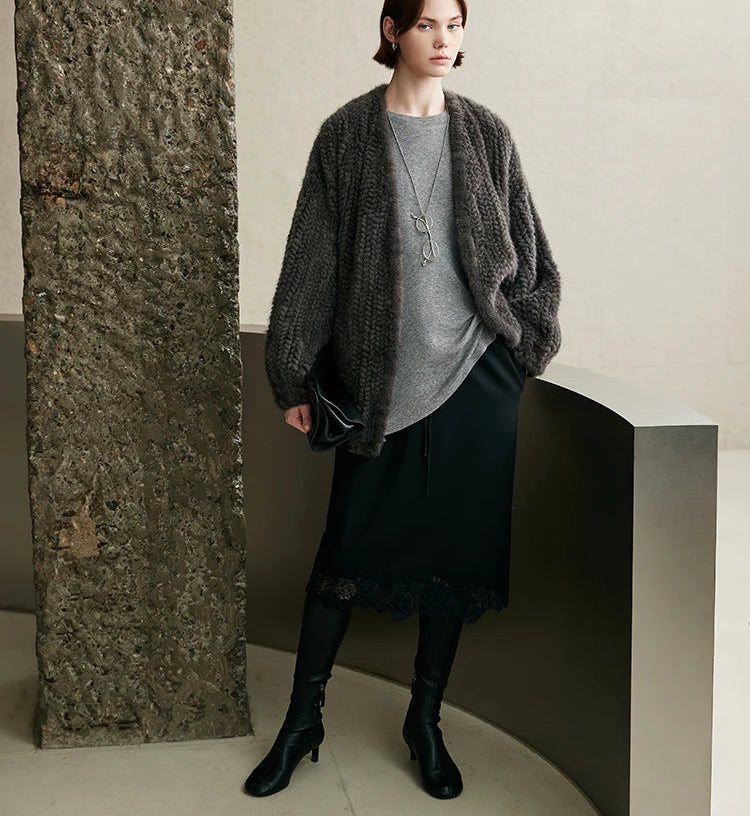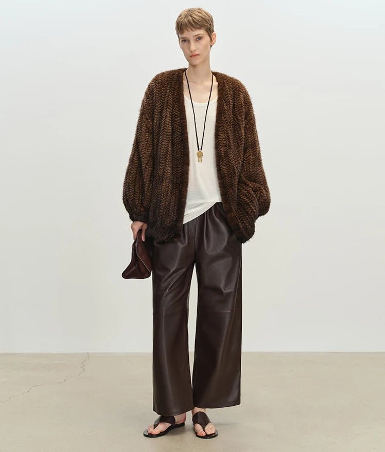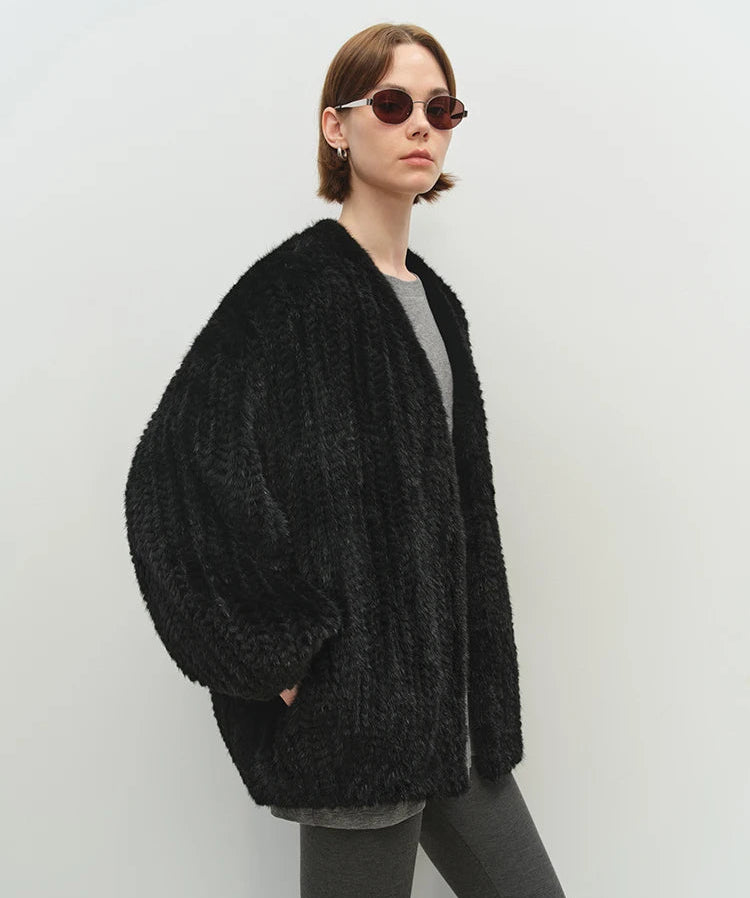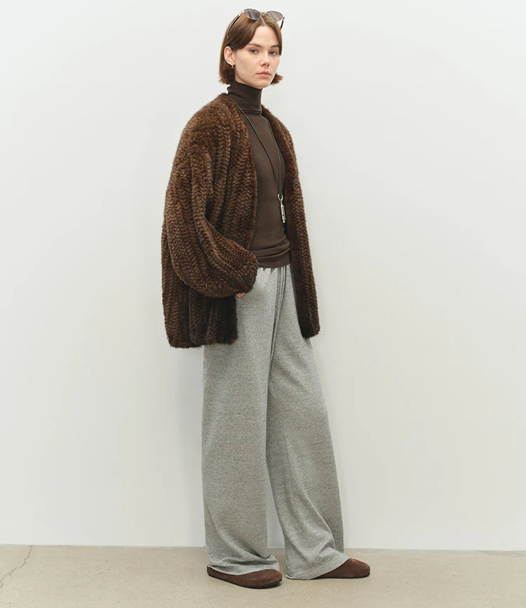 Women's Double-Sided Weaving Real Mink Fur Lantern Sleeves Winter Coat
