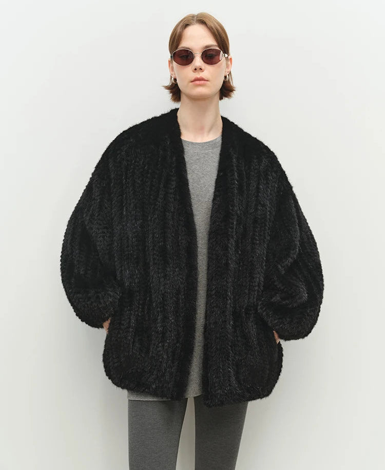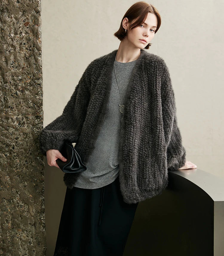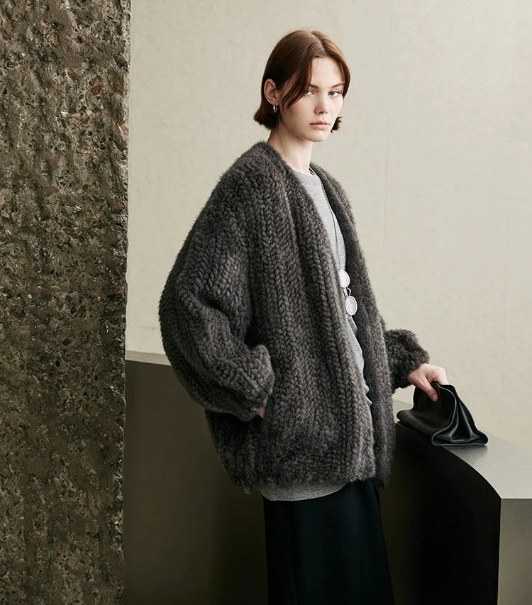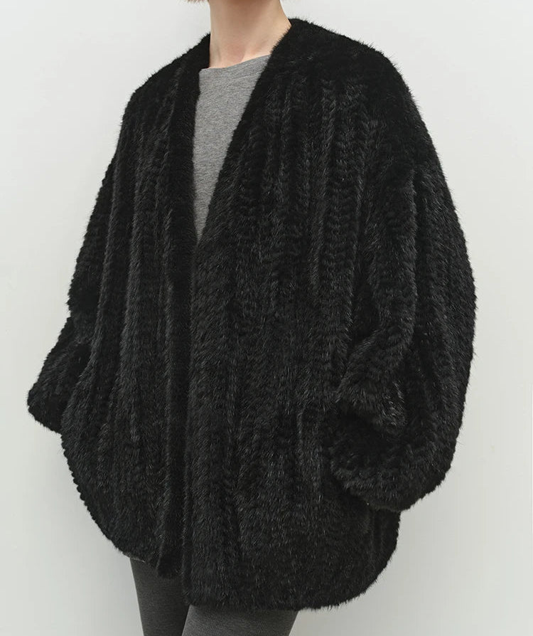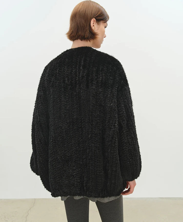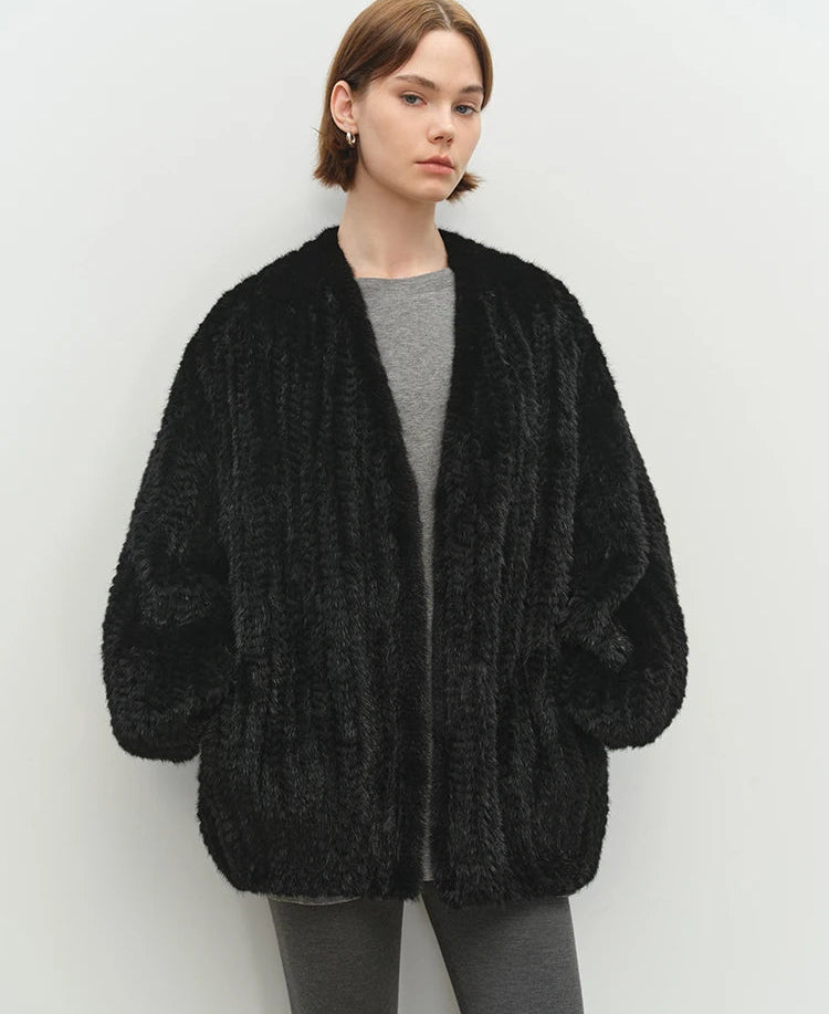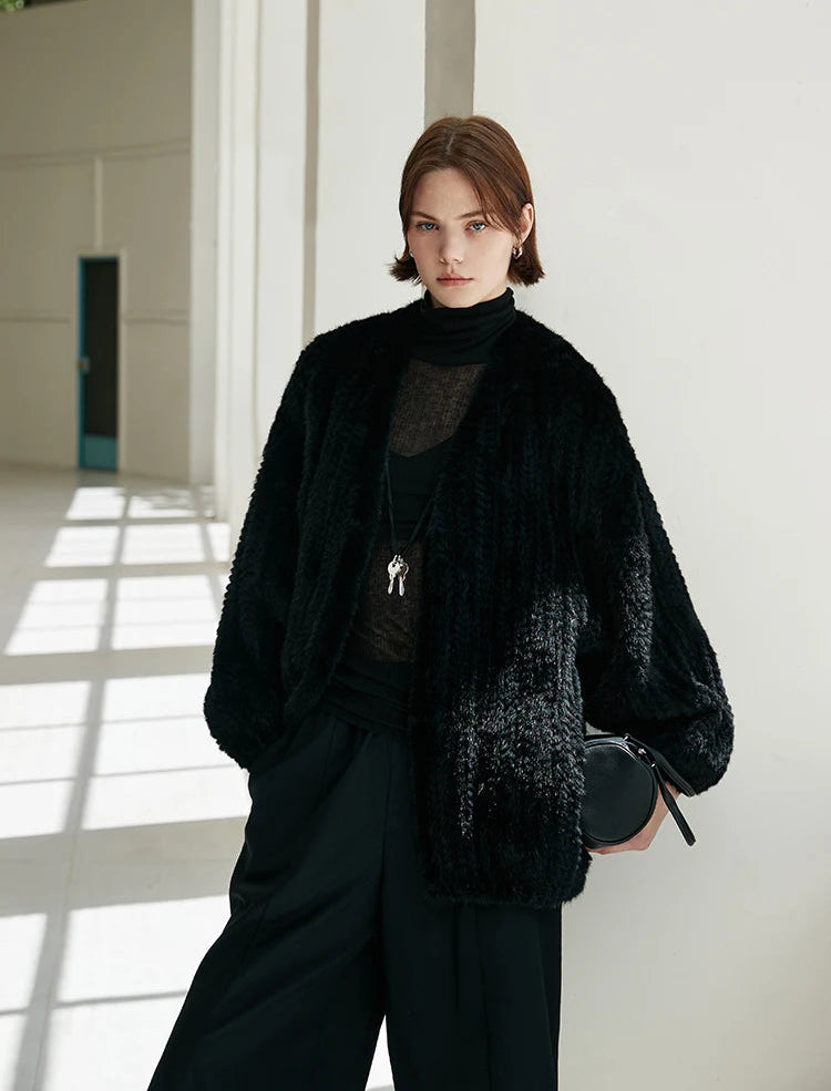 This women's double-sided winter coat is your go-to choice for comfort and style when the temperature drops. Made with mink fur, it is durable and looks appealing with lantern sleeves. The solid color and the loose fit will notch up your look. Order now!