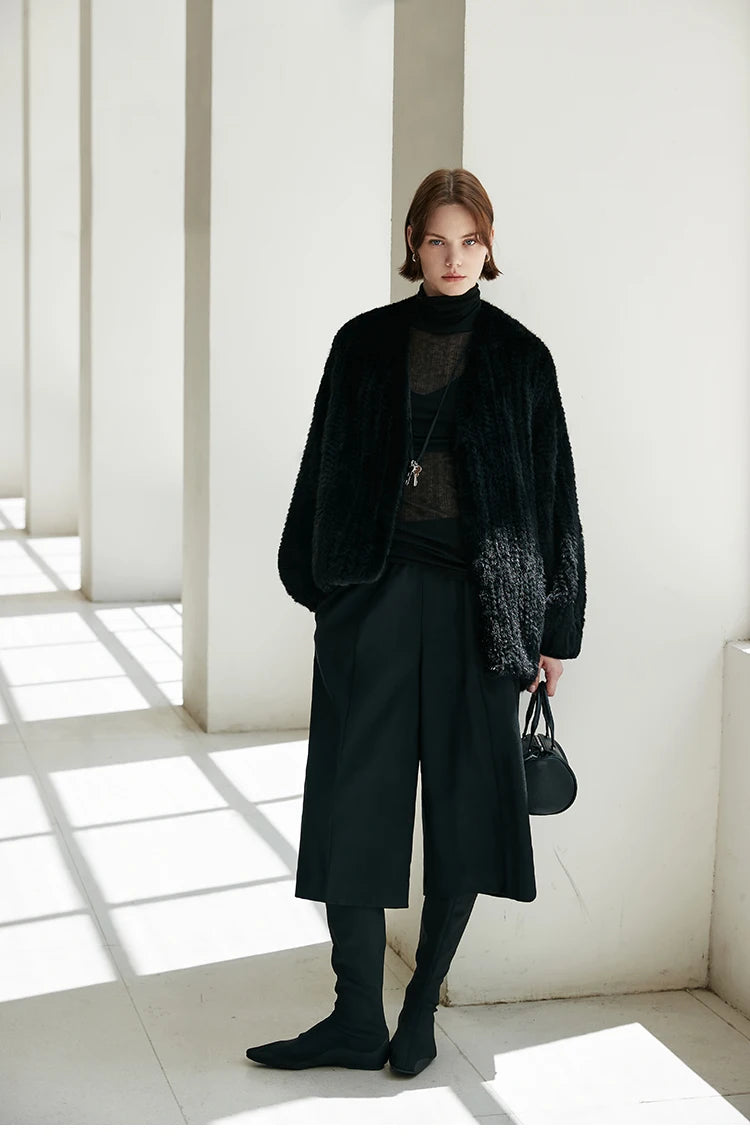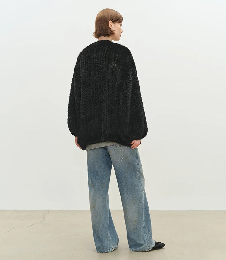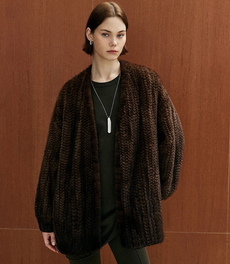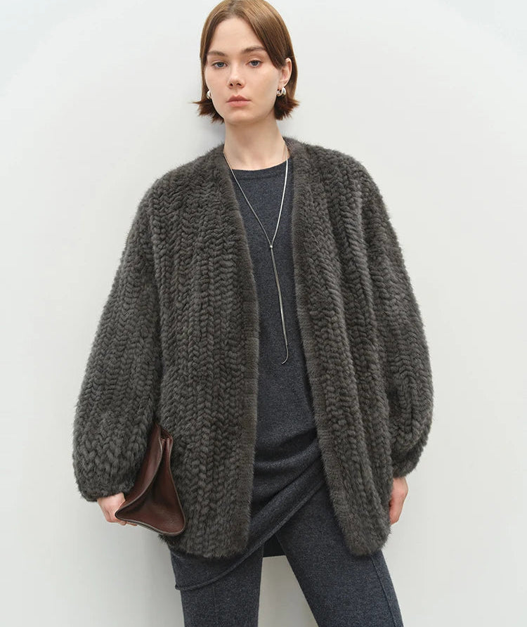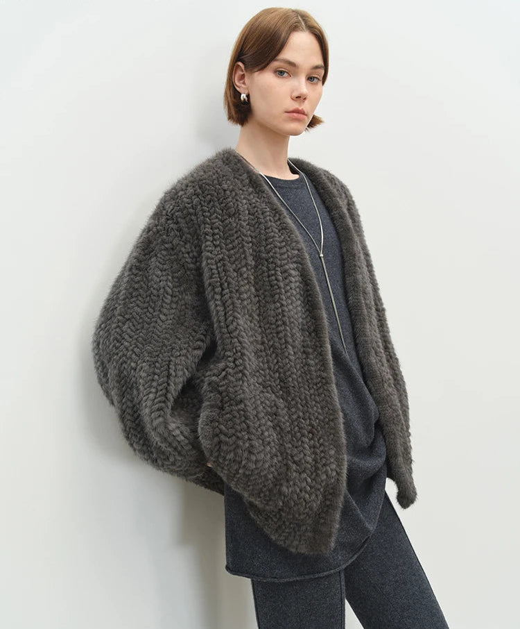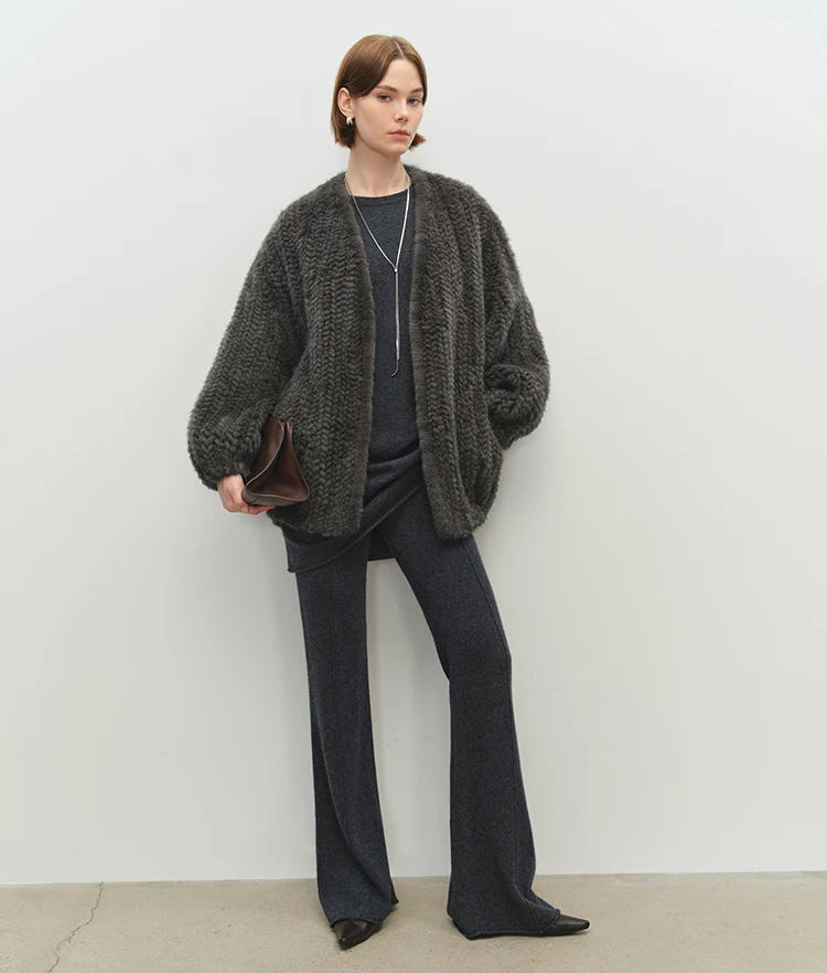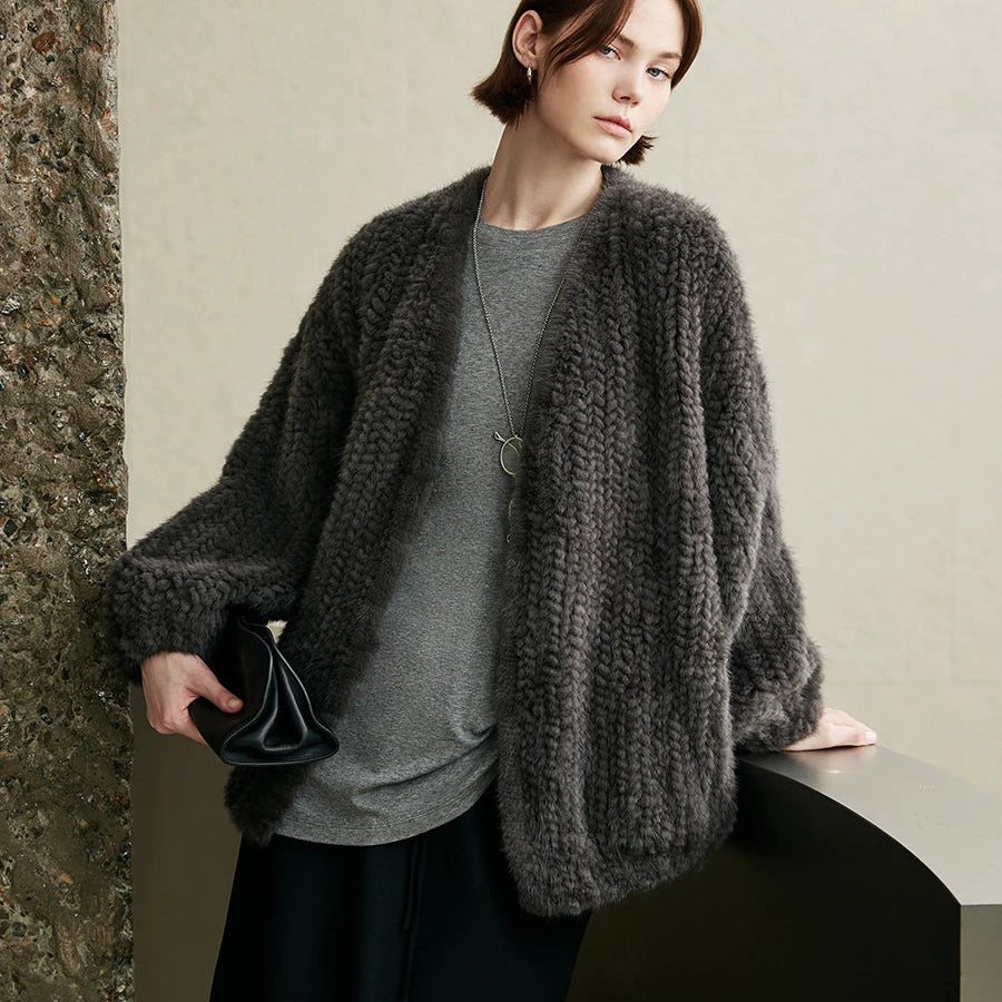 This women's double-sided winter coat is your go-to choice for comfort and style when the temperature drops. Made with mink fur, it is durable and looks appealing with lantern sleeves. The solid color and the loose fit will notch up your look. Order now!