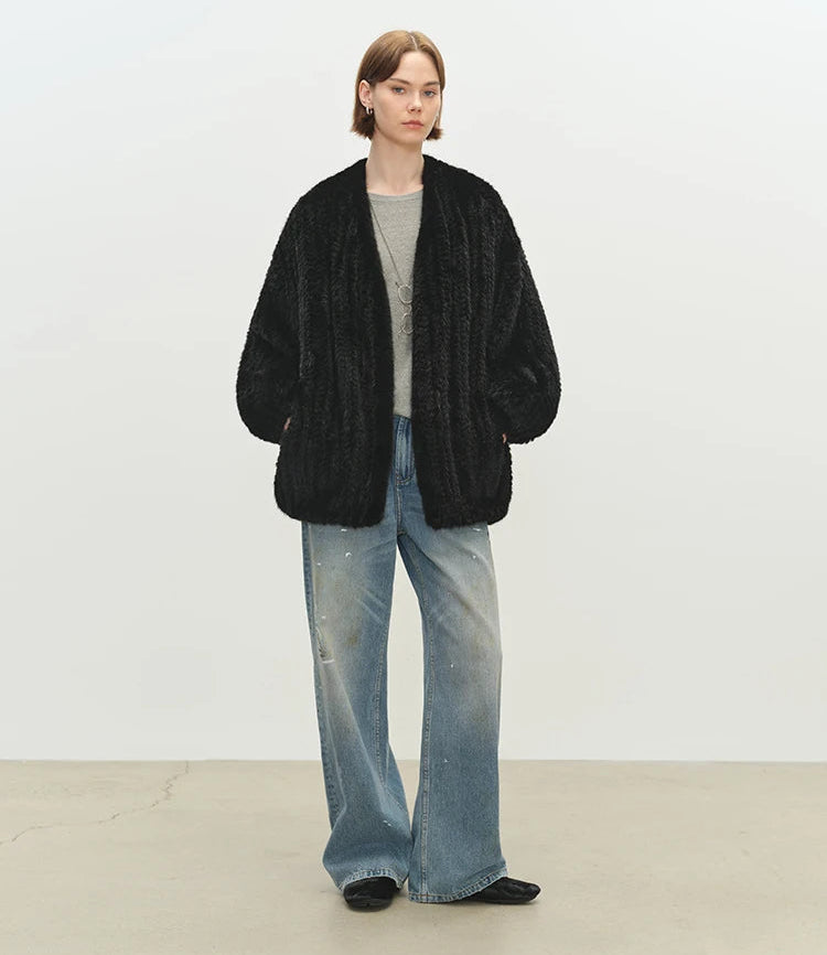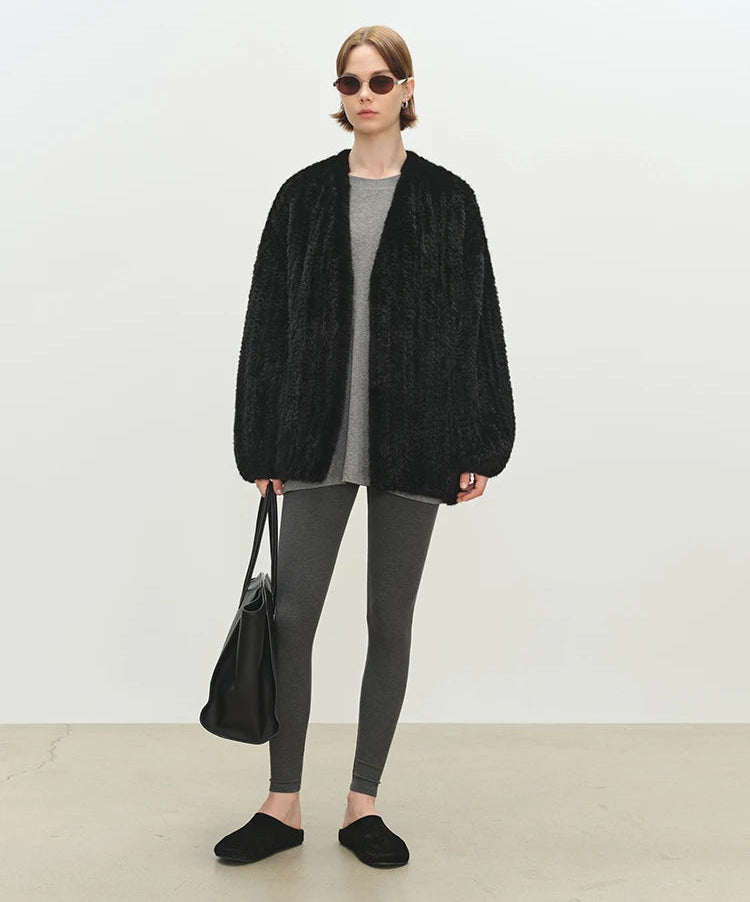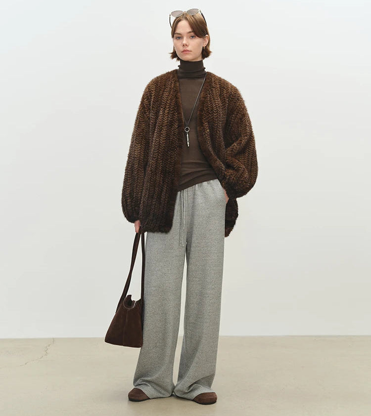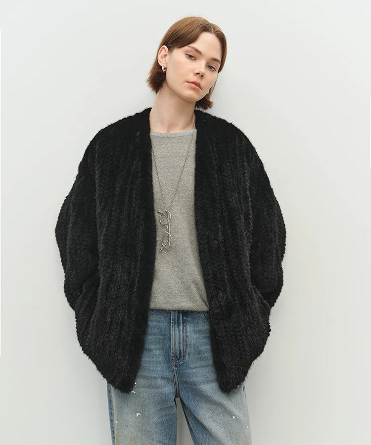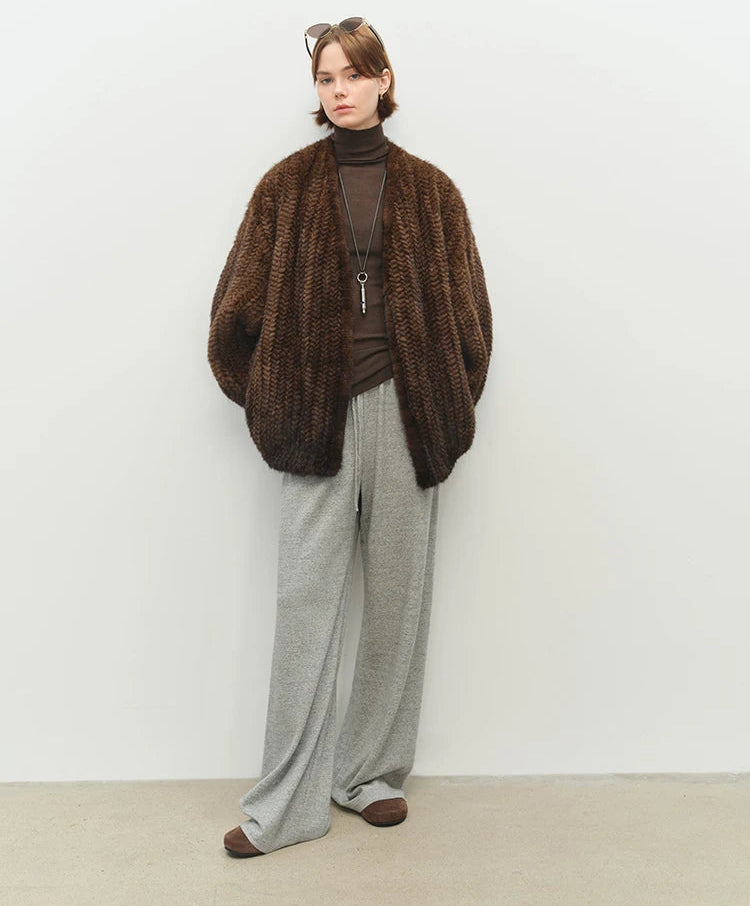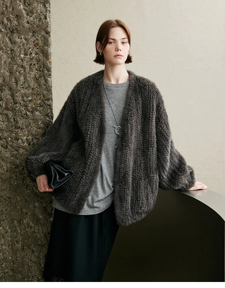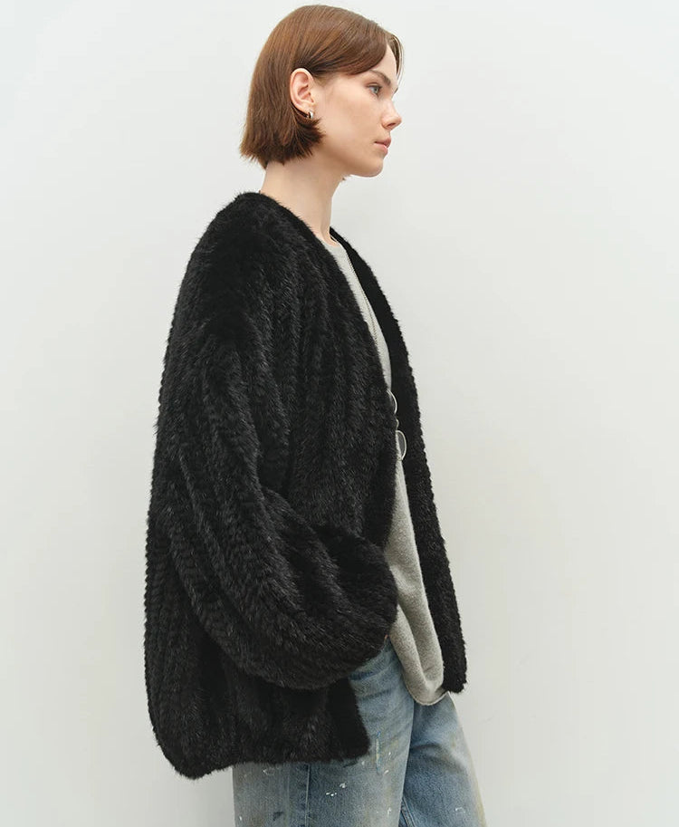 This women's double-sided winter coat is your go-to choice for comfort and style when the temperature drops. Made with mink fur, it is durable and looks appealing with lantern sleeves. The solid color and the loose fit will notch up your look. Order now!