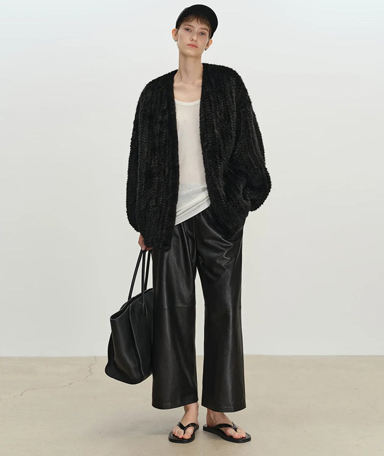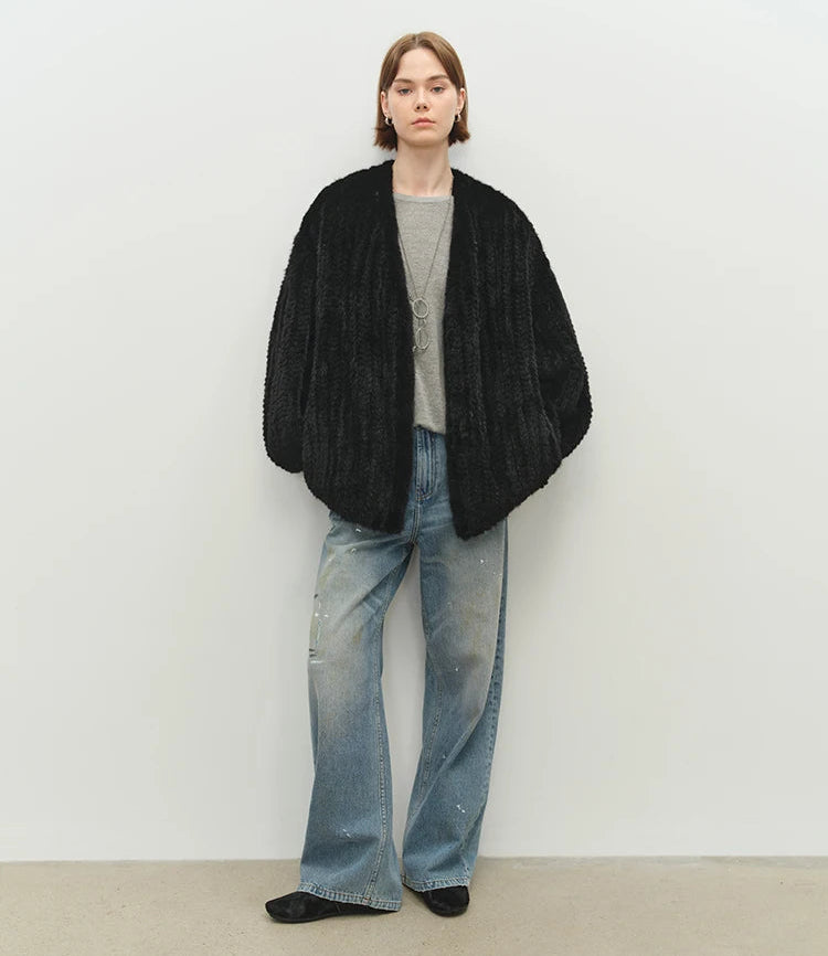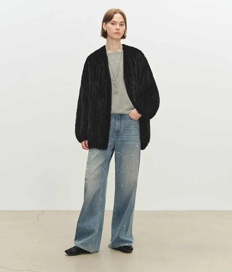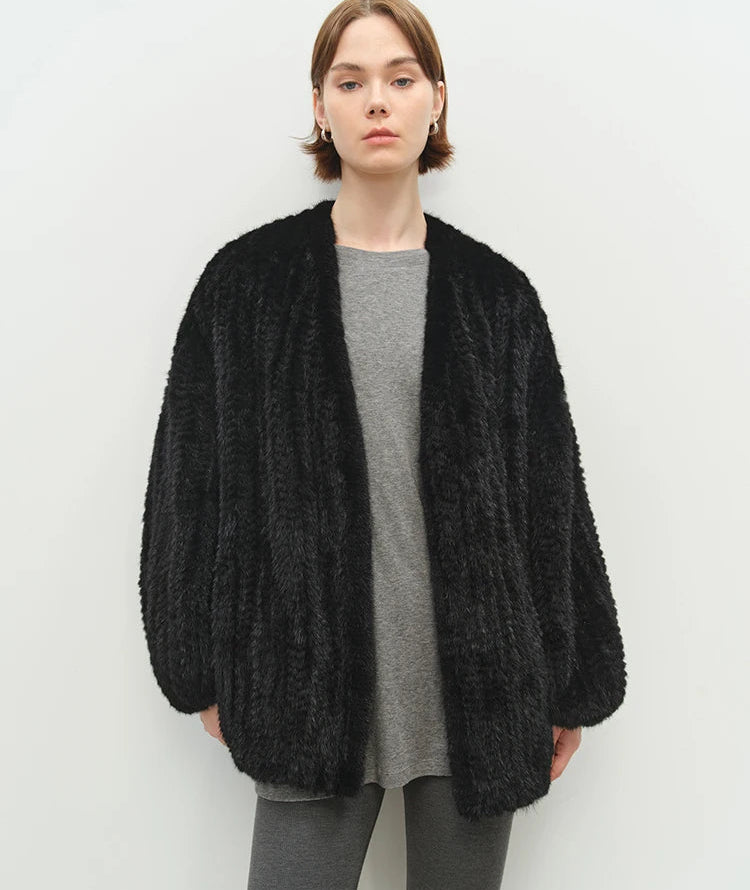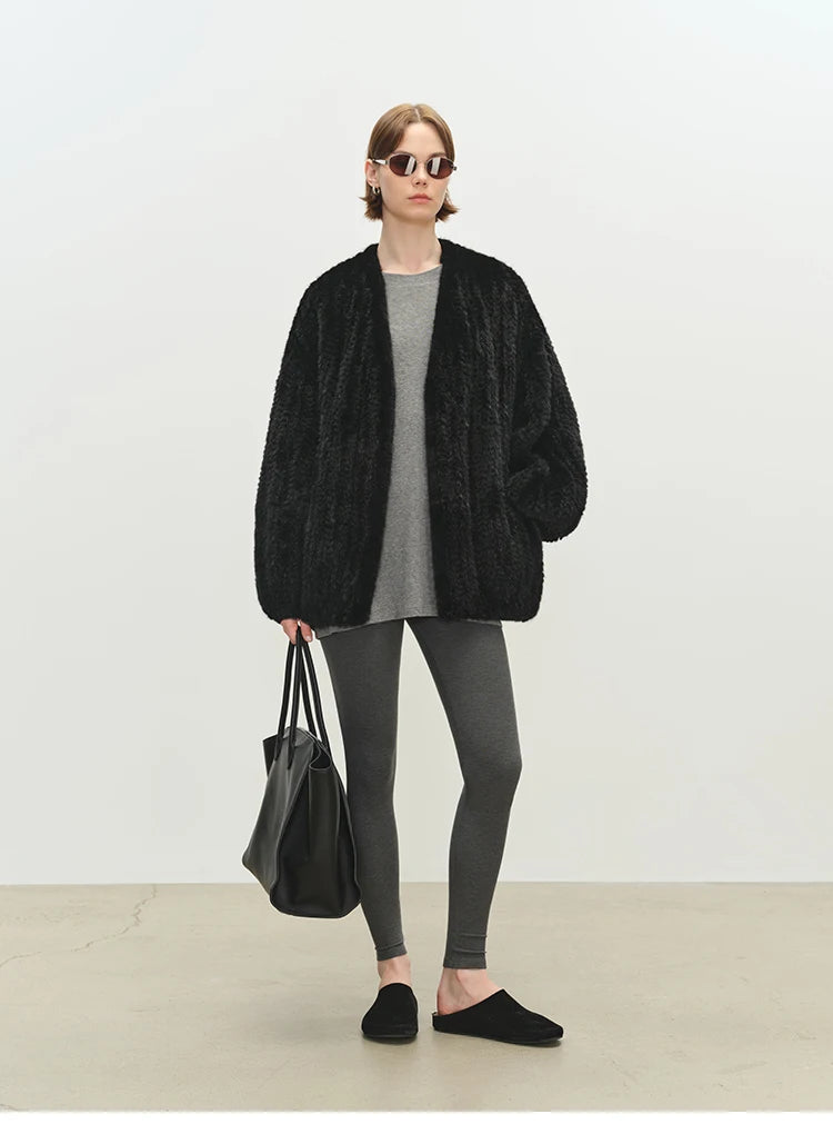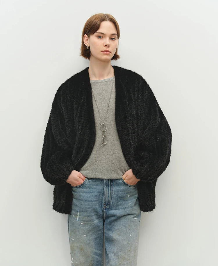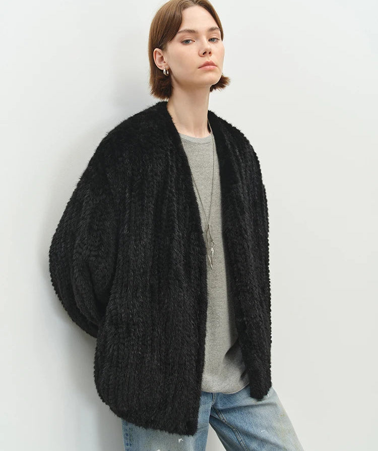 This women's double-sided winter coat is your go-to choice for comfort and style when the temperature drops. Made with mink fur, it is durable and looks appealing with lantern sleeves. The solid color and the loose fit will notch up your look. Order now!