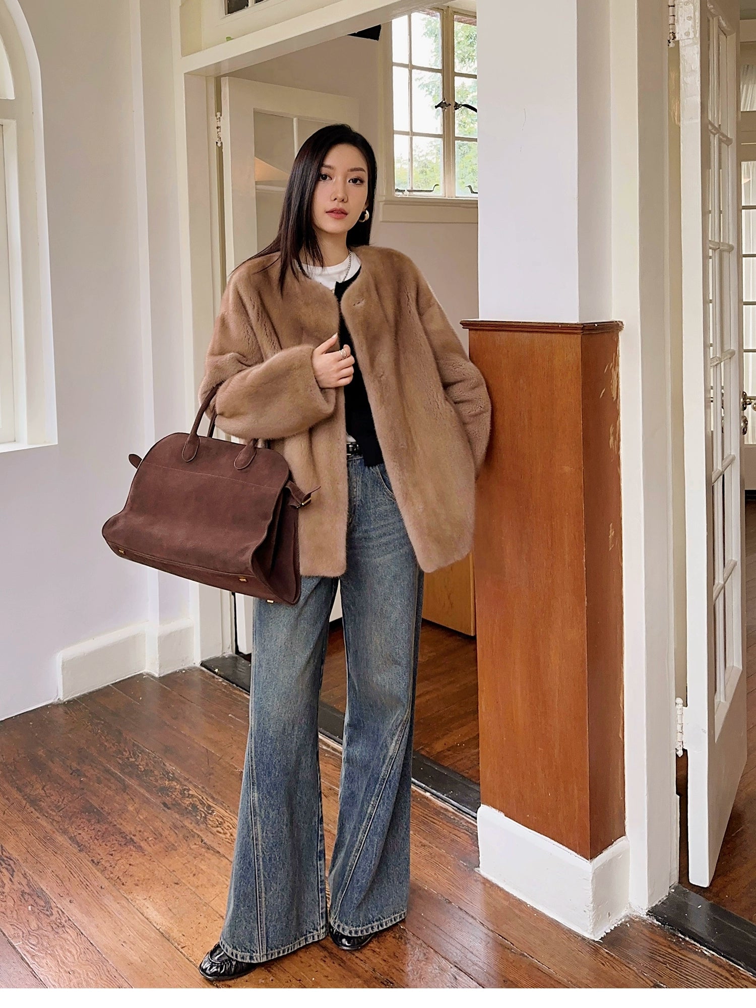 Women's Winter Fashion Natural Fur Luxury Style Winter Coat