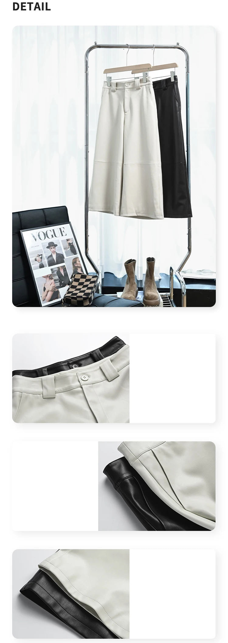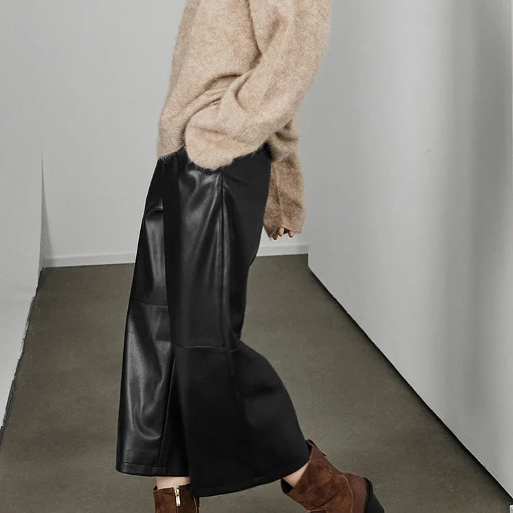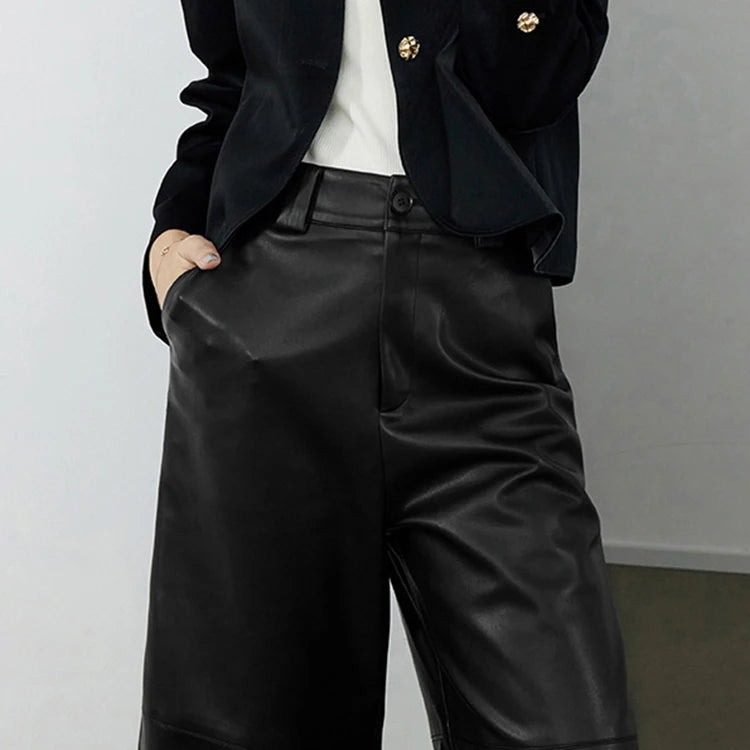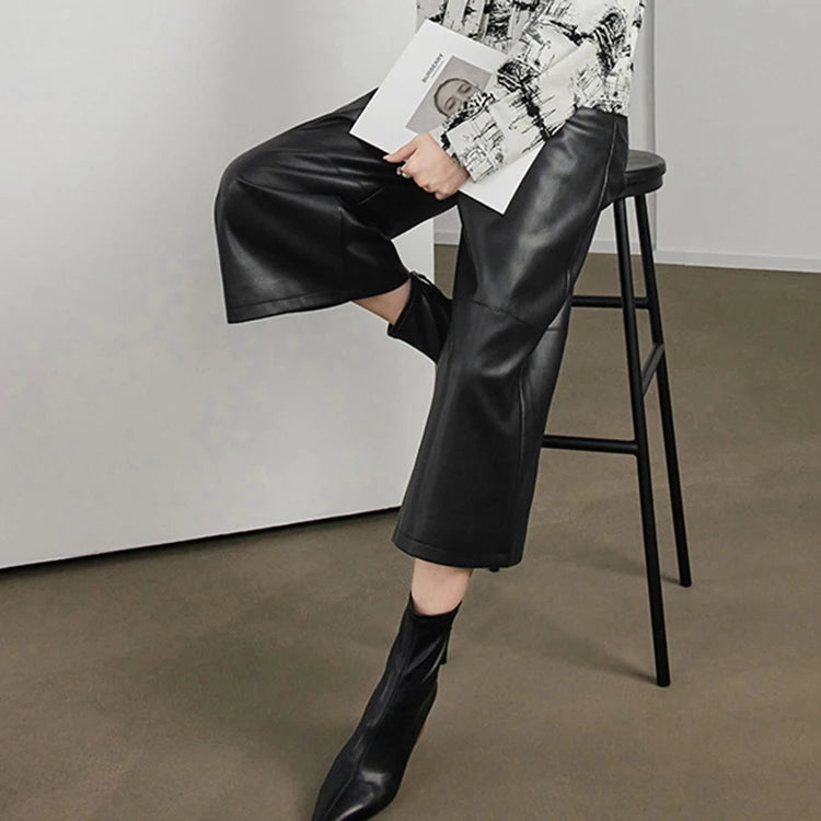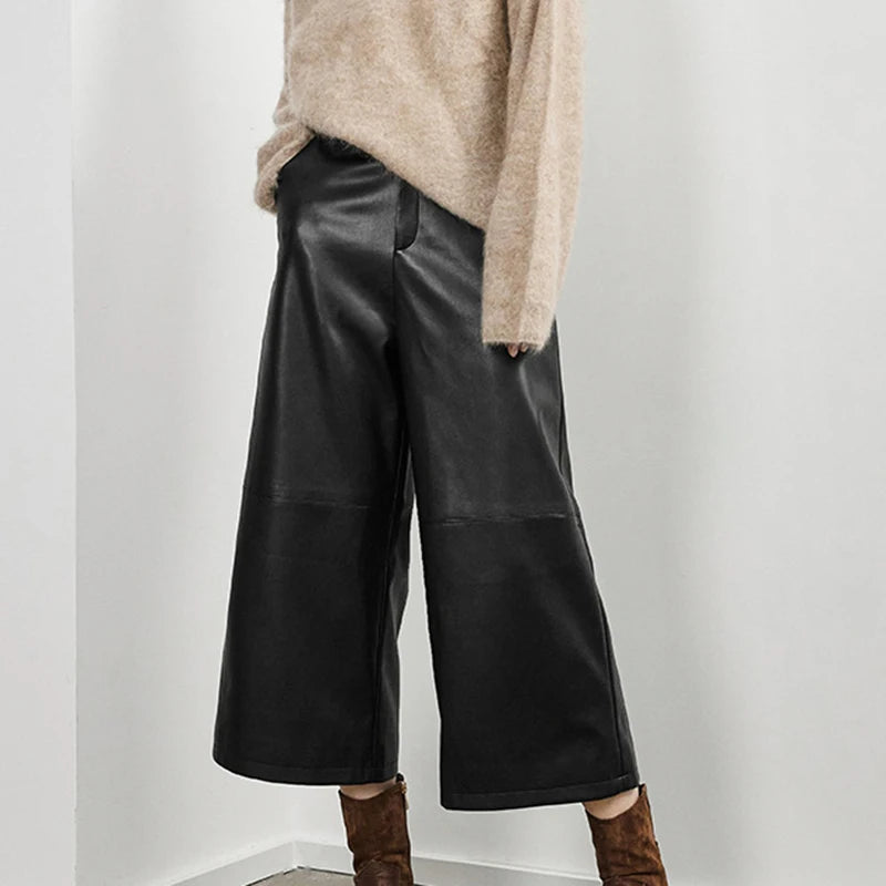 Versatile Loose Wide Leg Pantalon Leather Cropped Pants for Women