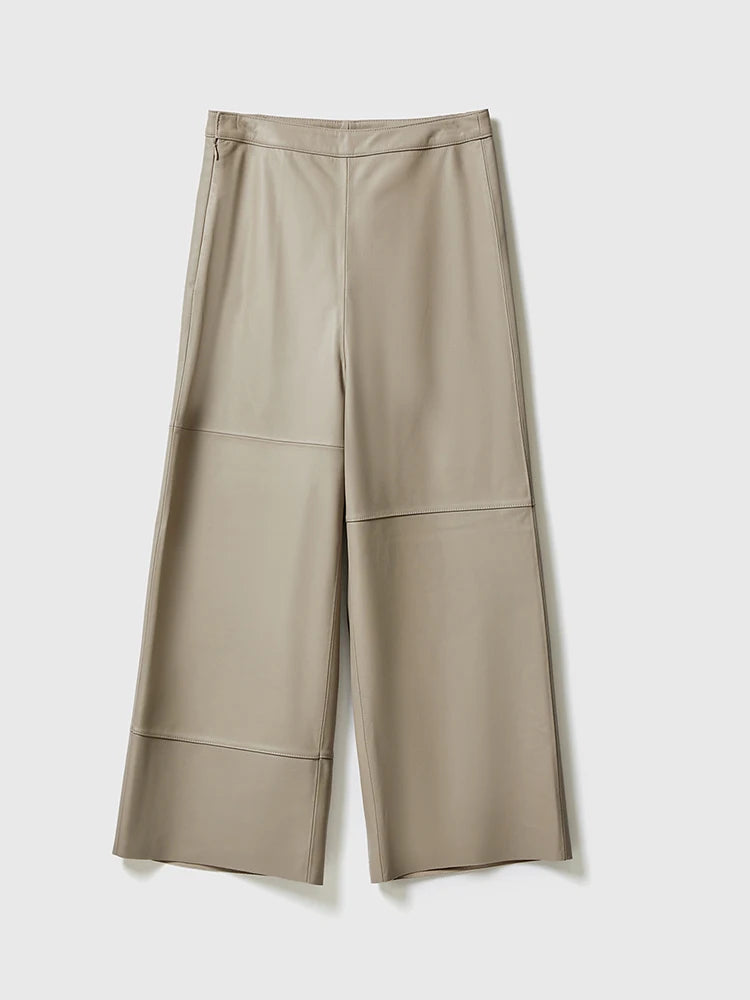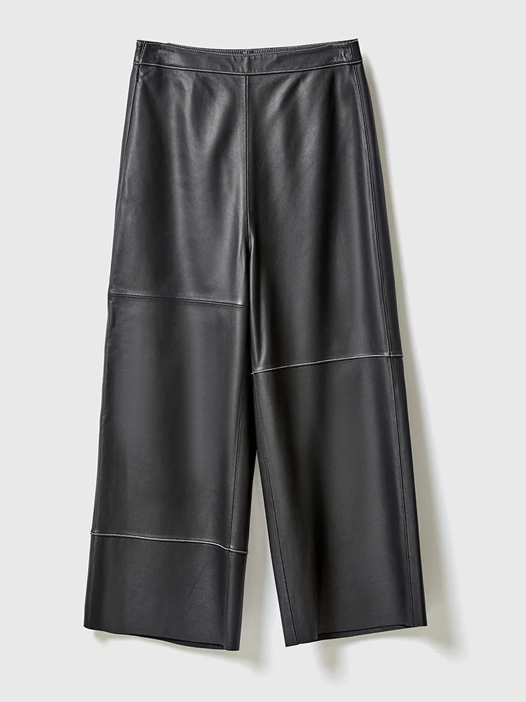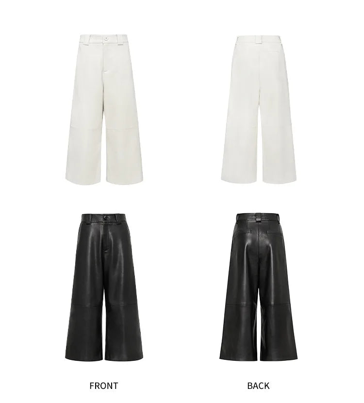 These chic women's pants feature wide, cropped legs, making them the epitome of comfort. Made with sheepskin leather, it is durable and looks appealing. The finish of the leather material makes it look more stylish. Perfect for fashion-conscious women who love to stand out in style!