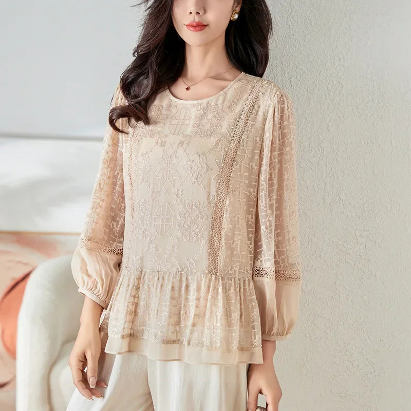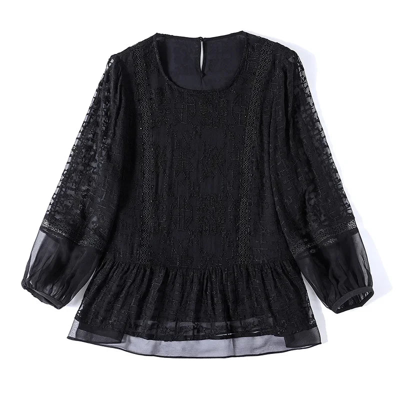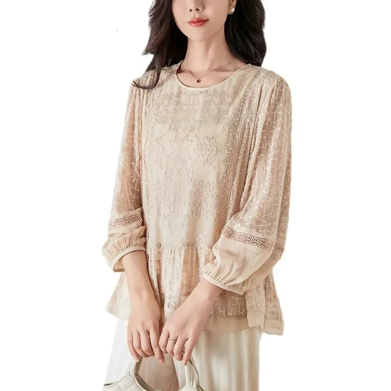 Women's Summer Real Mulberry Silk Casual Long Sleeve Tops