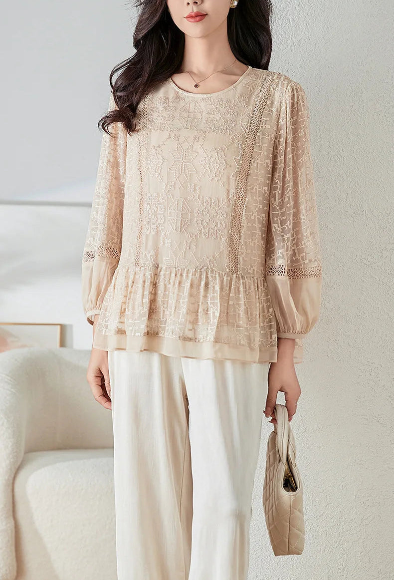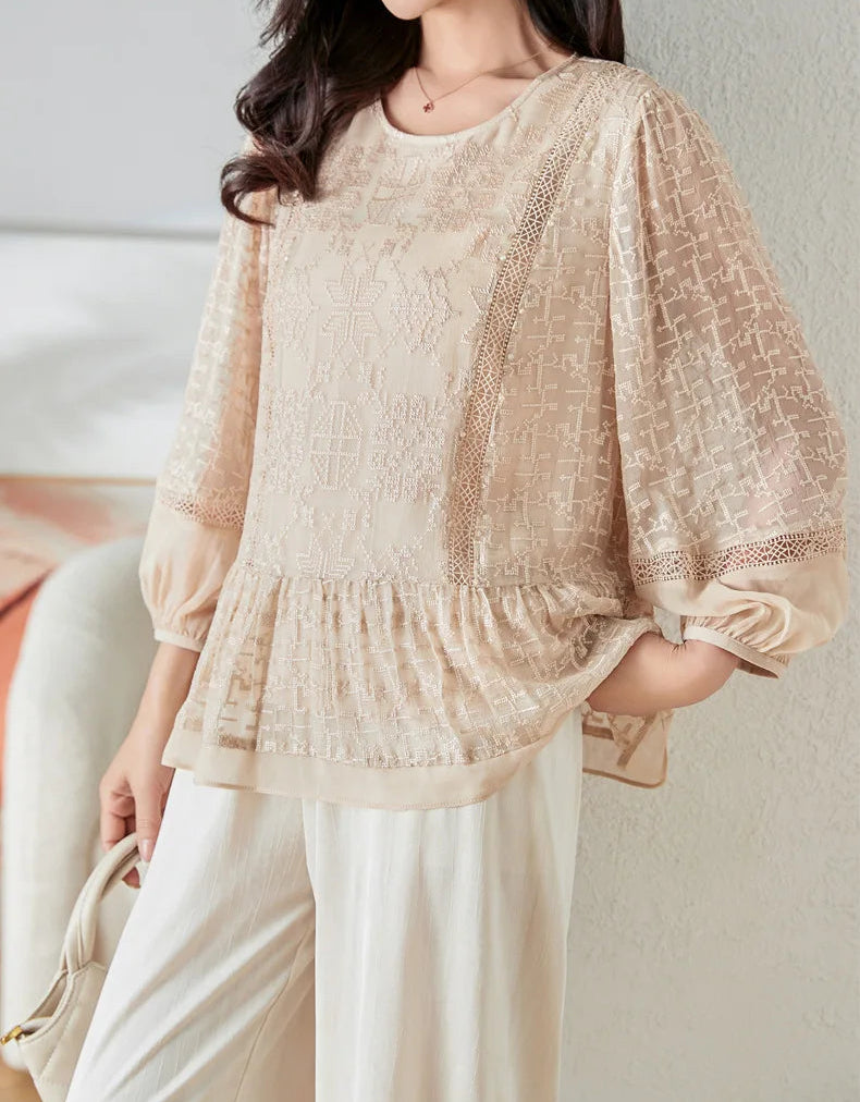 If you are looking for attractive women's tops for this summer, then this is for you. This casual top, where elegance meets comfort, is made of mulberry silk and elevates your style effortlessly when paired with pants, skirts or shorts. Perfect for fashion-conscious women who love to stand out in style, this top has long sleeves and flare silhouette. Buy now!