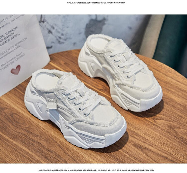 Women's Solid Breathable 7cm Wedge Heels Platform Sneakers Shoes