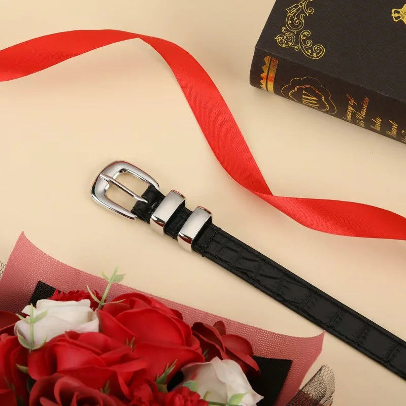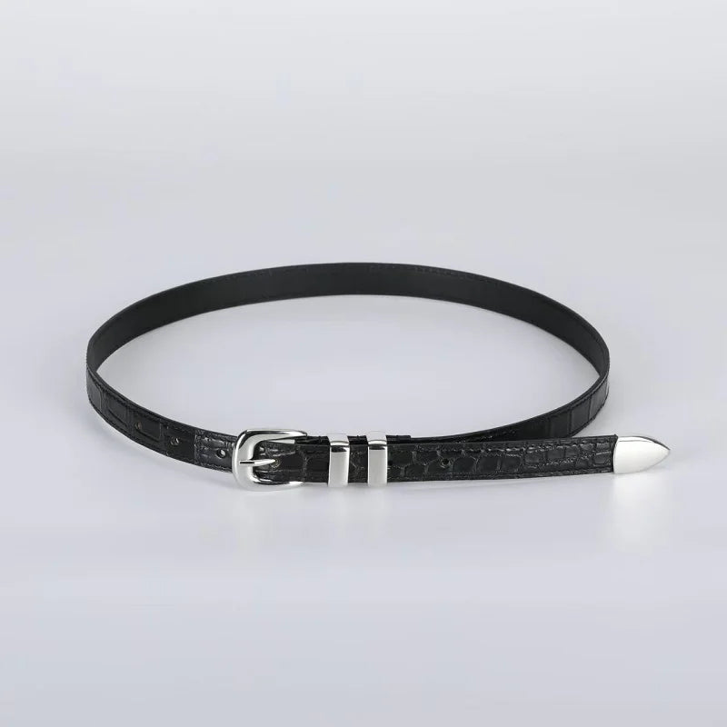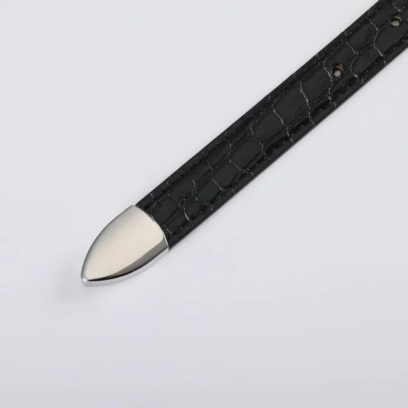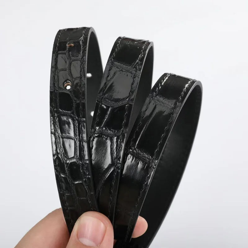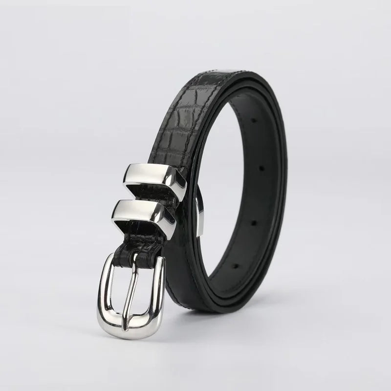 Solid Color Metal Buckle Crocodile Skin Adjustable Belt for Women