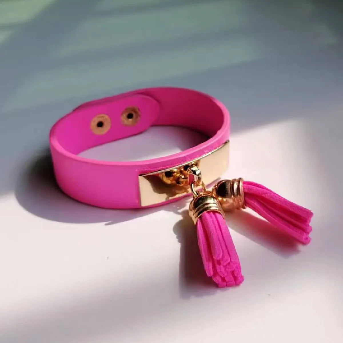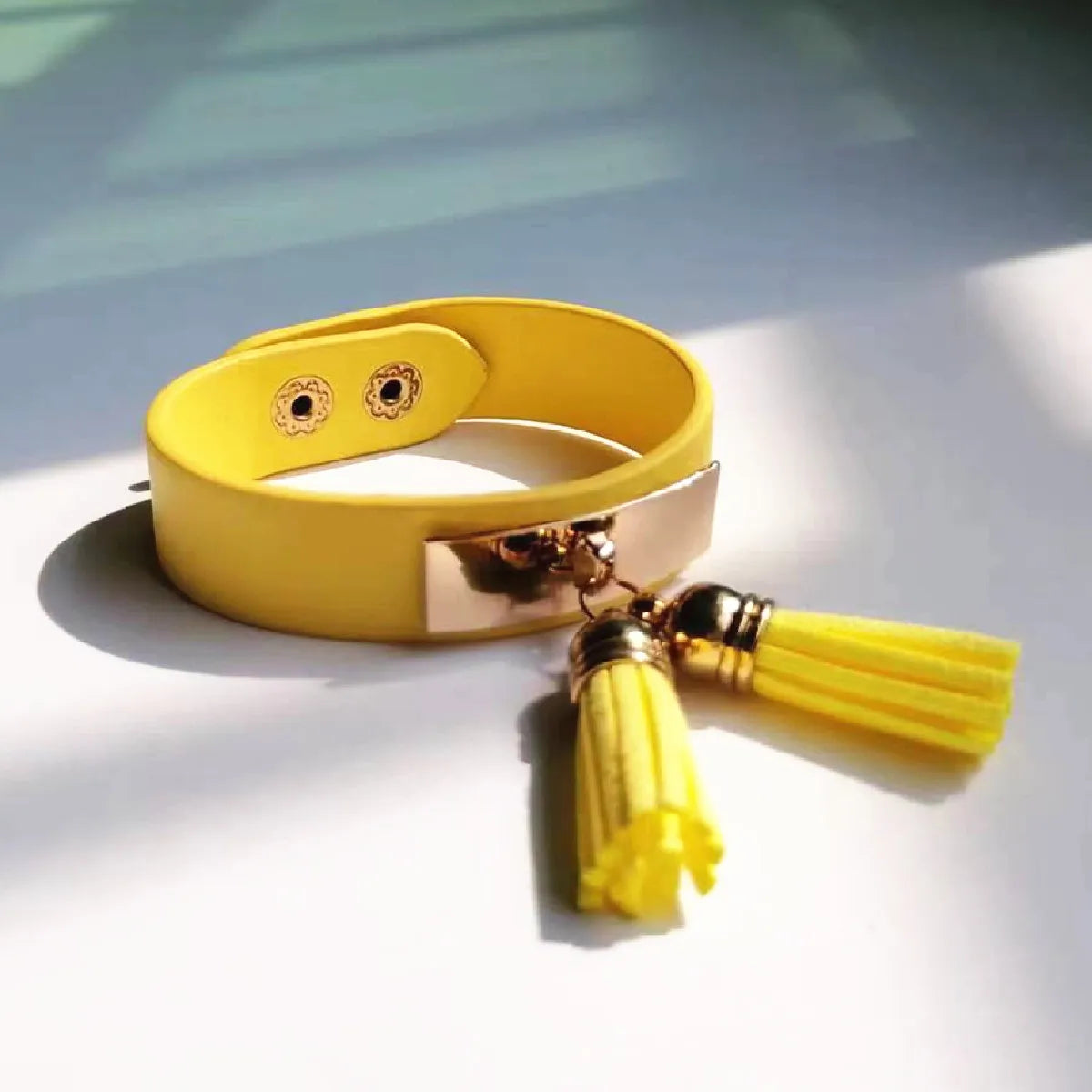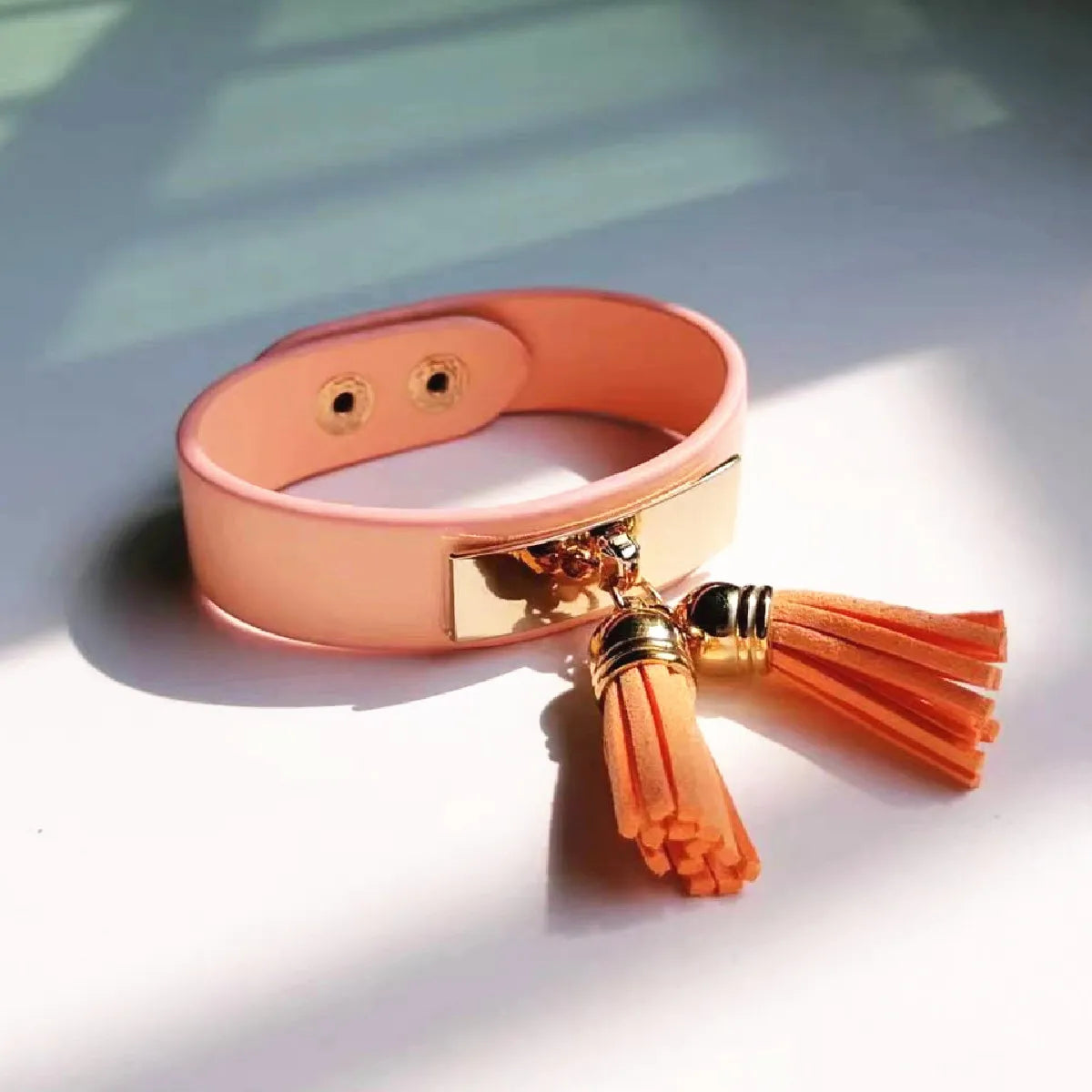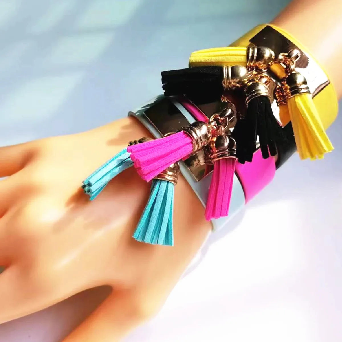 Casual Synthetic Leather Neon Color Tassel Bangle Bracelet for Women