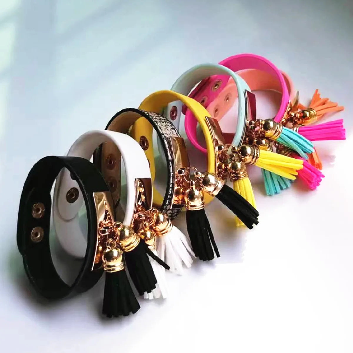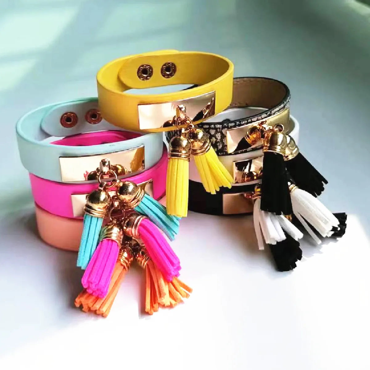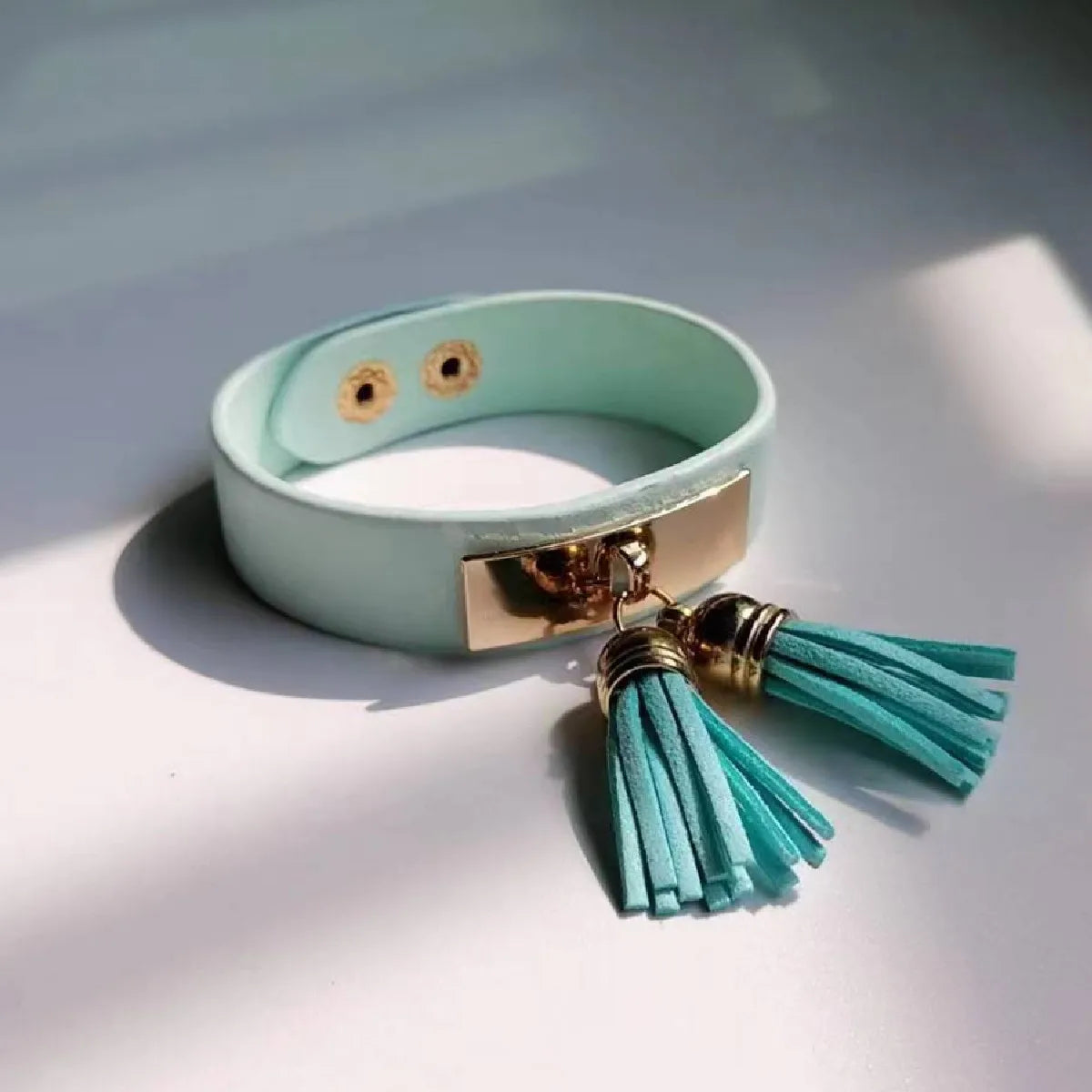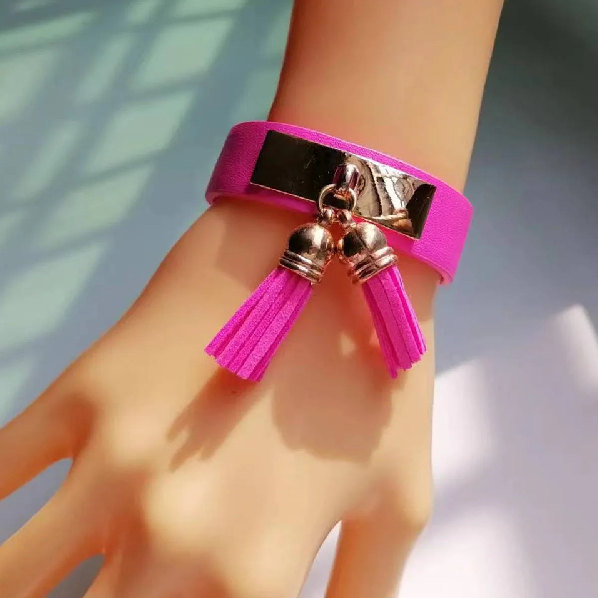 Casual Synthetic Leather Neon Color Tassel Bangle Bracelet for Women