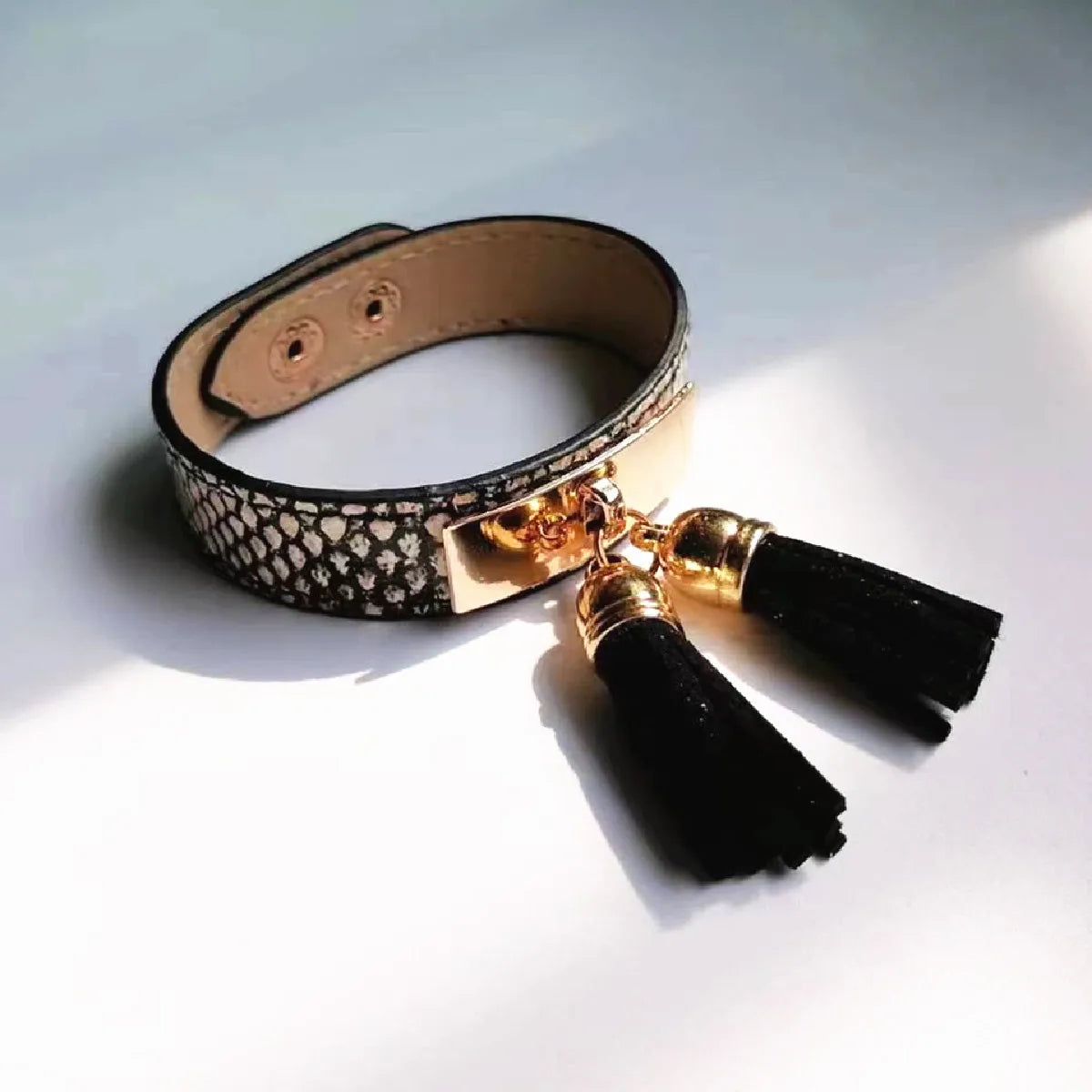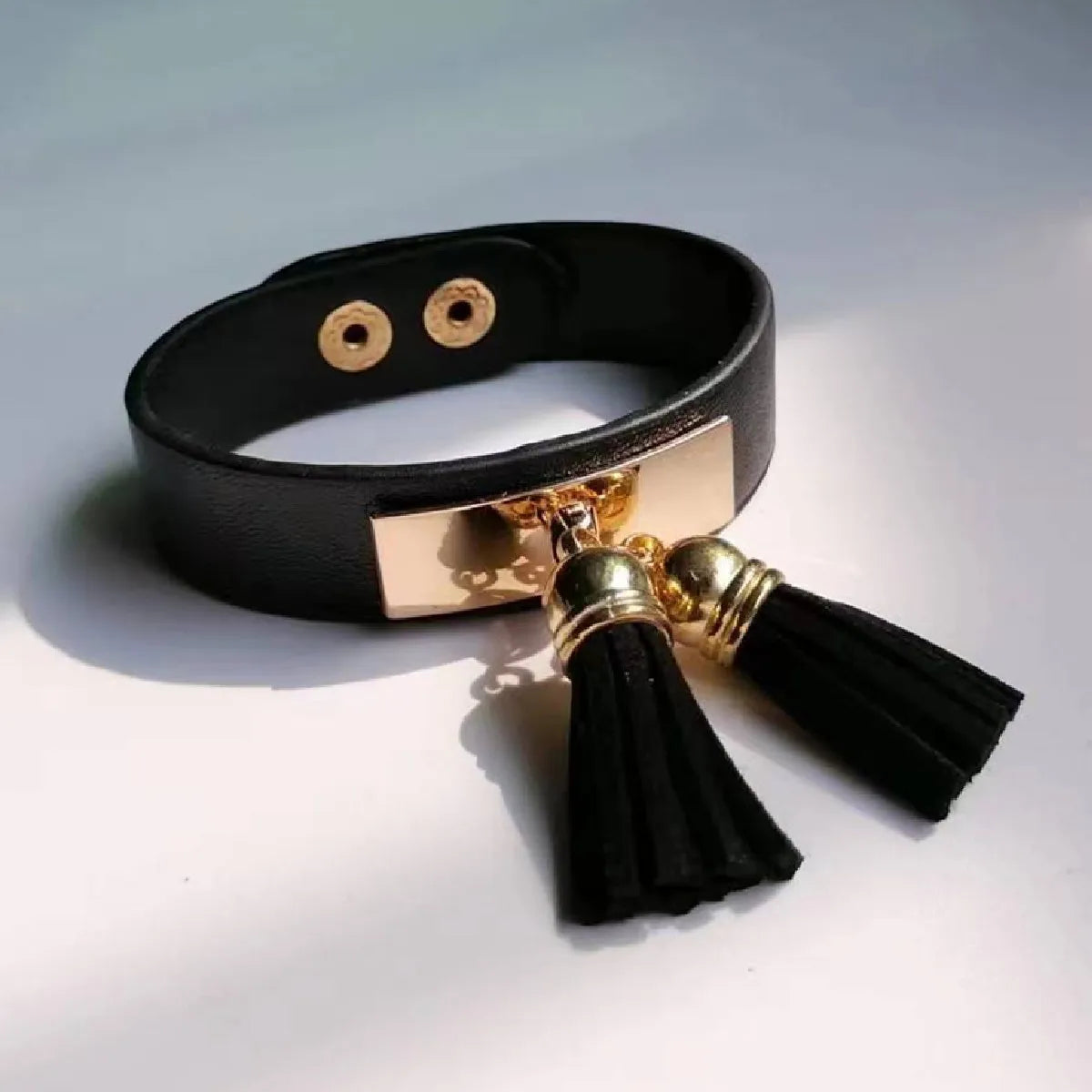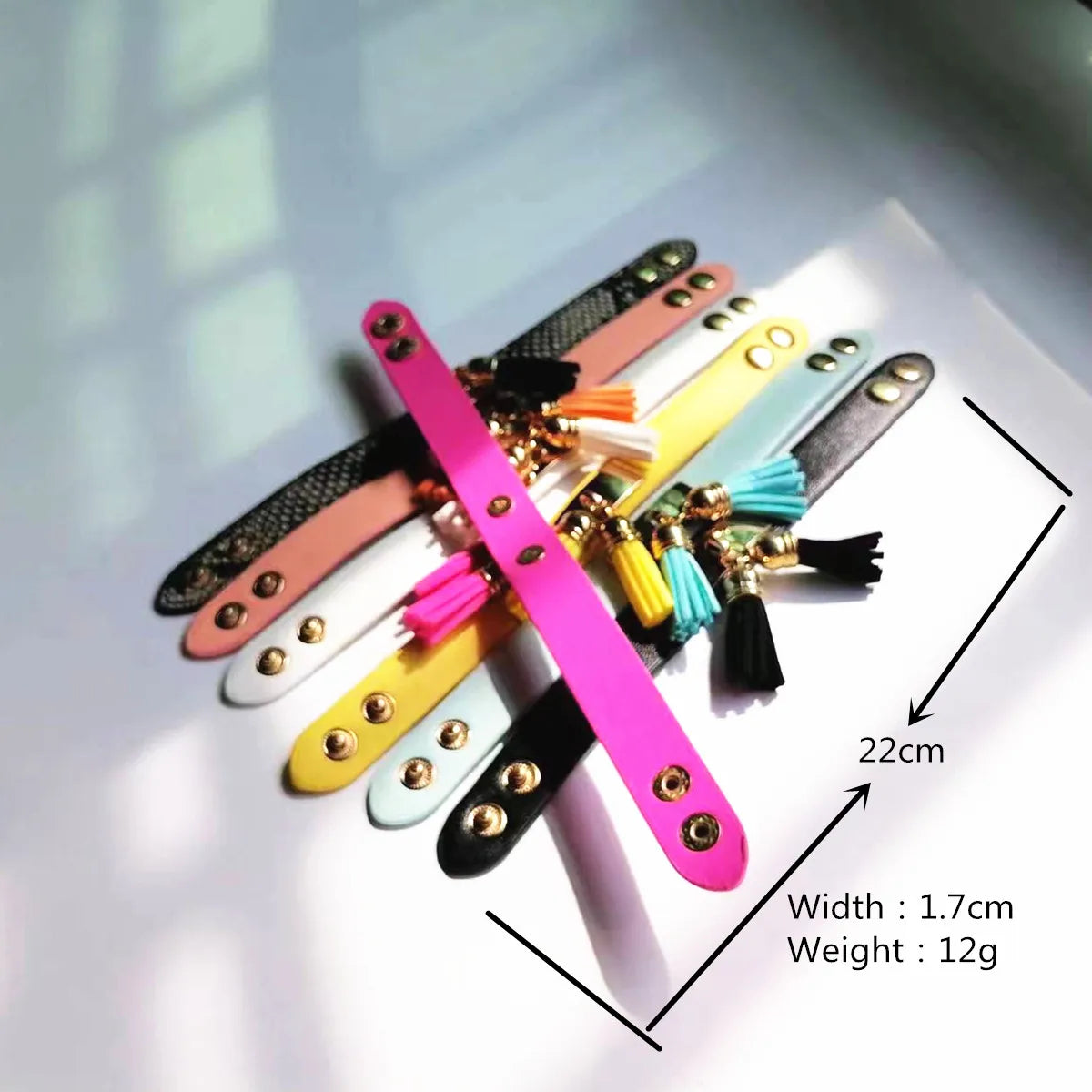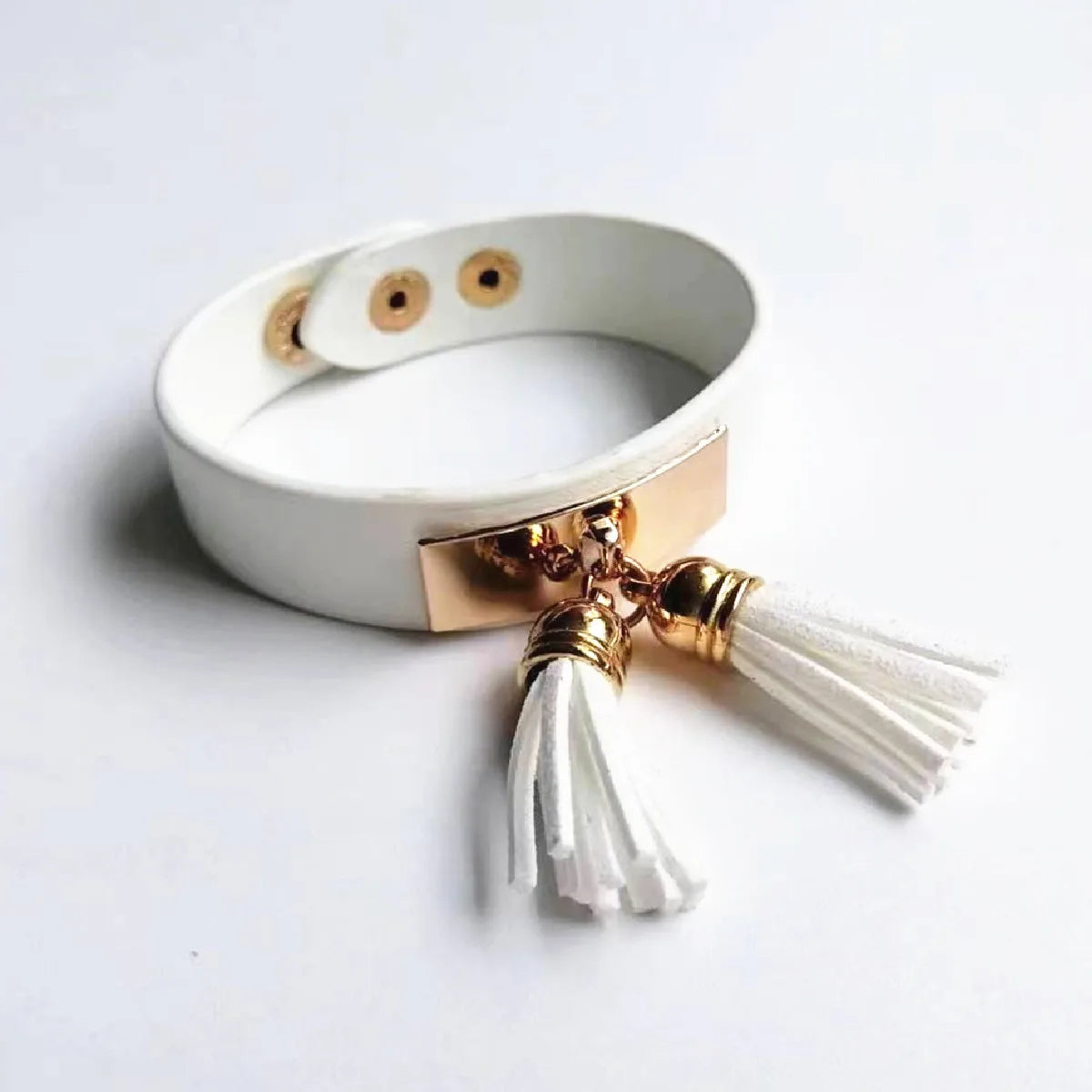 Casual Synthetic Leather Neon Color Tassel Bangle Bracelet for Women
