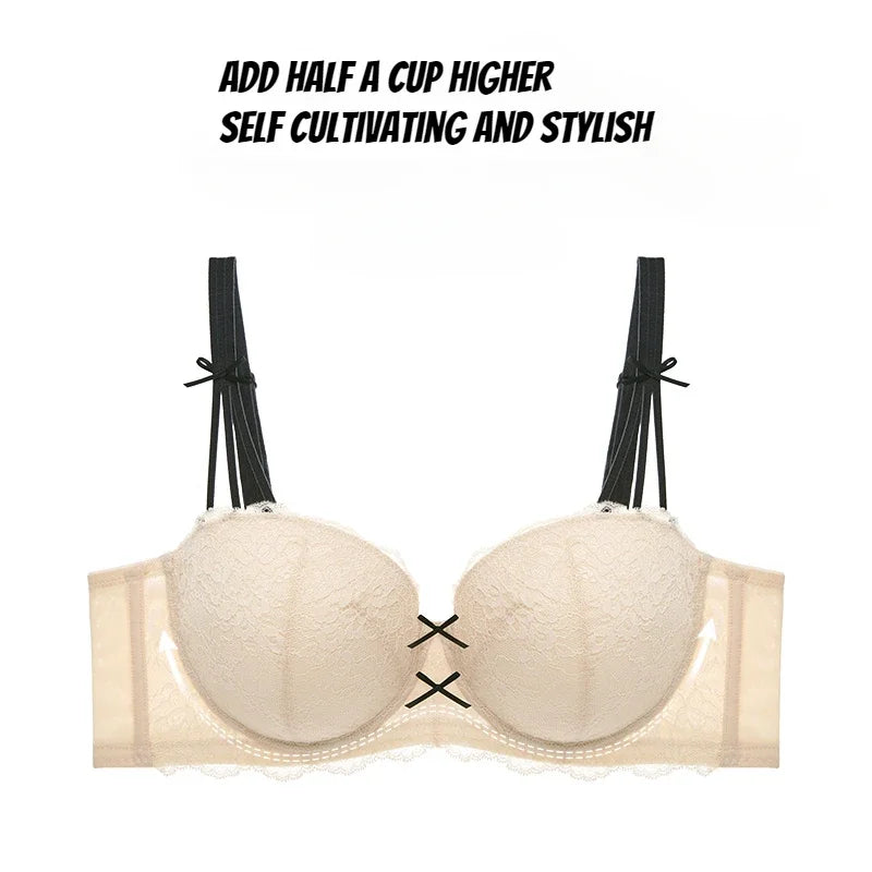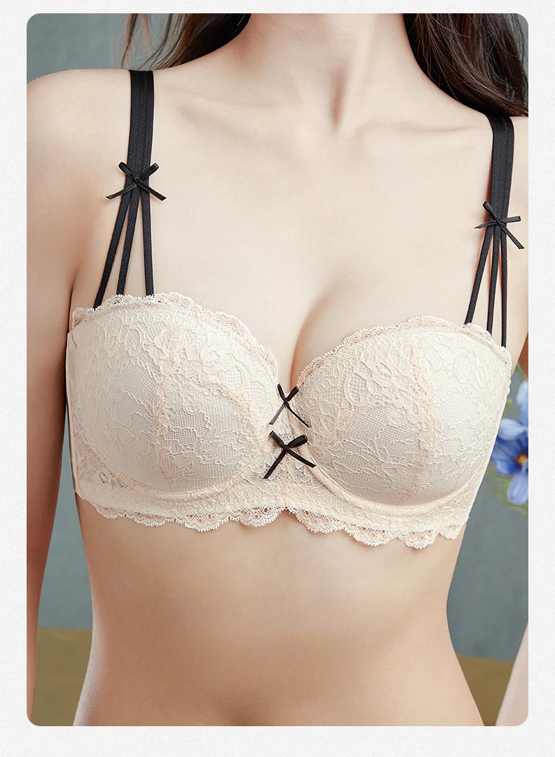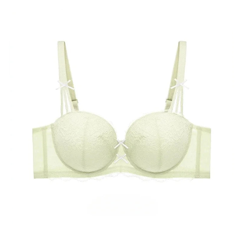 Green Half Cup Gathered Bowknot Thin Large Size Push Up Lace Tube Top Minimizer Bra