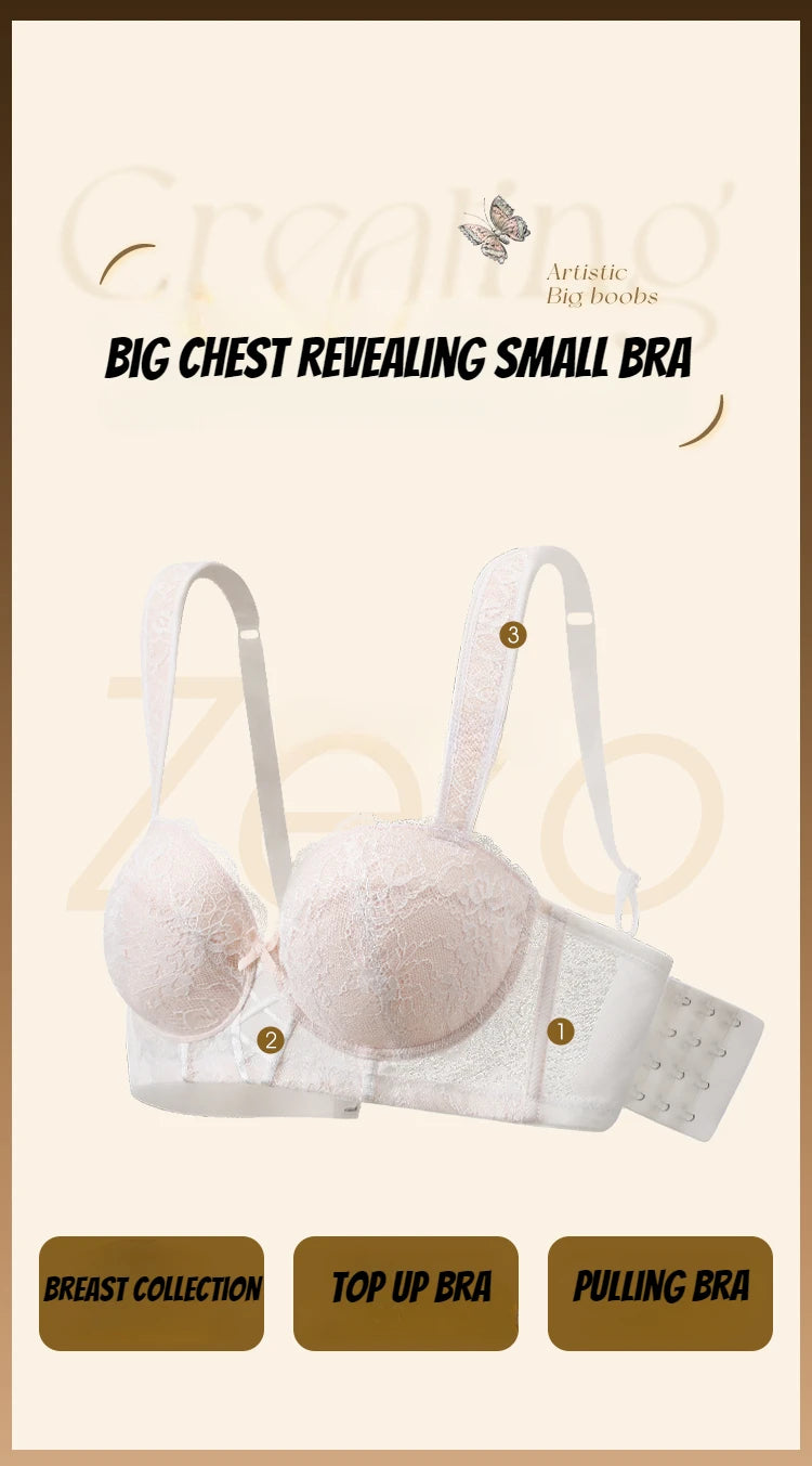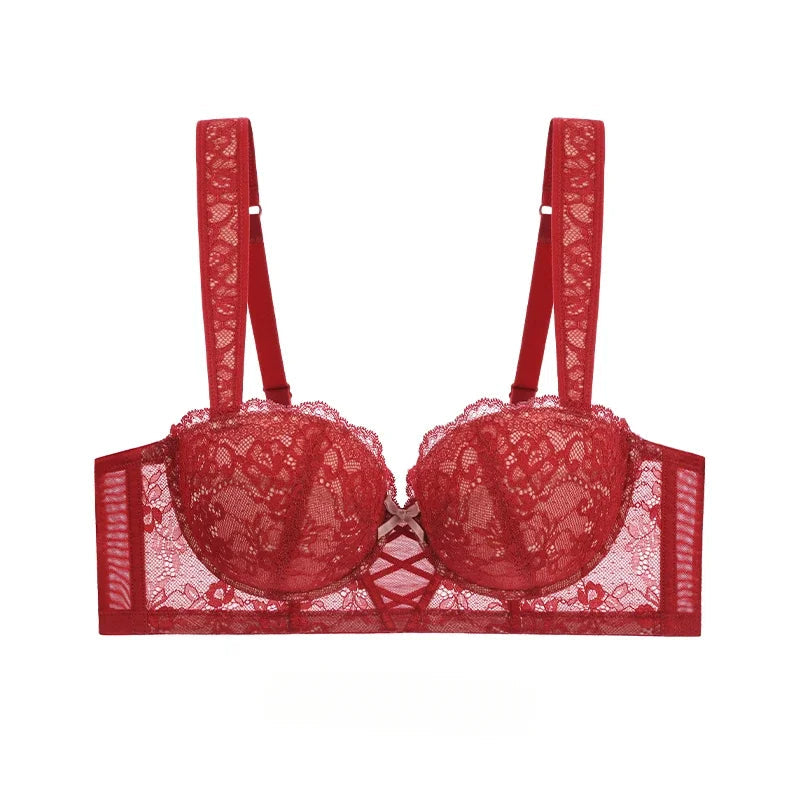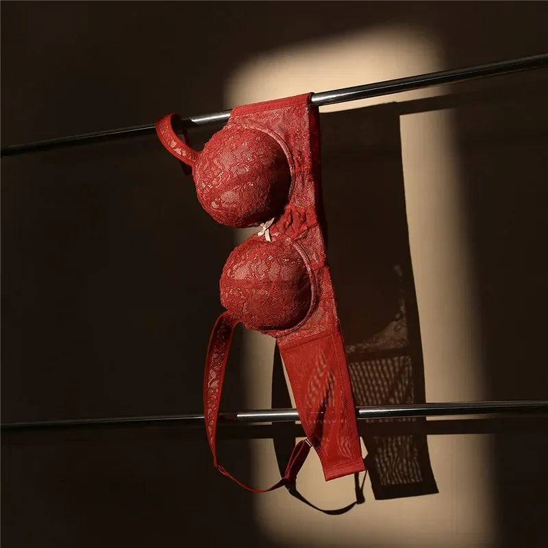 Red Sexy Thin Lace Top Up Push-up Big Chest Revealing Small Bra Underwear