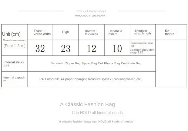 Internal structure: Zipper pocket, mobile phone bag, ID slot, laminated zipper bag, main bag