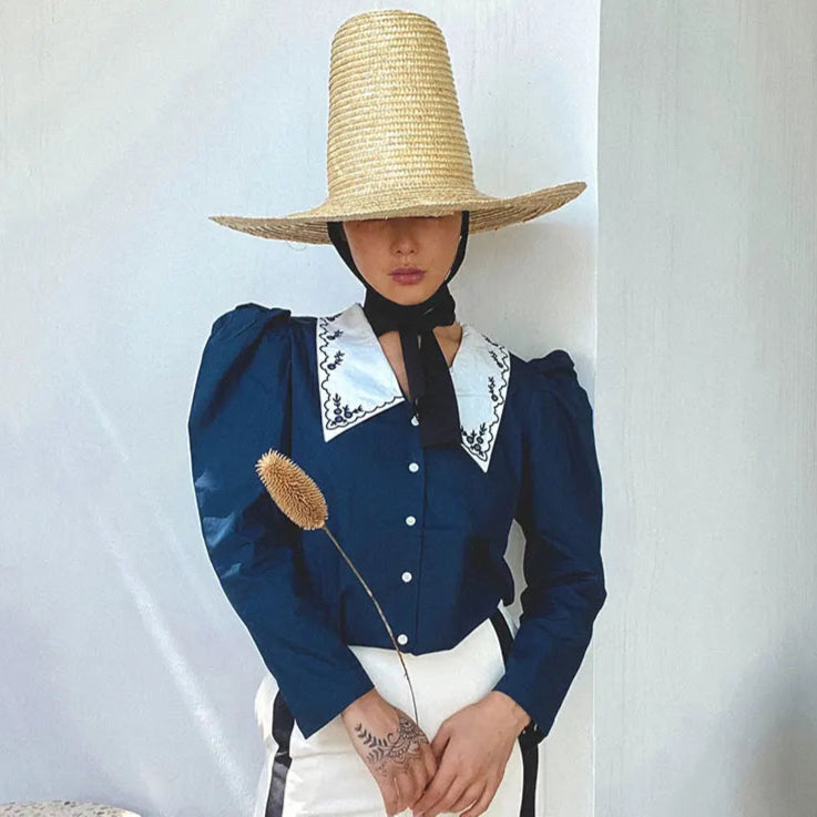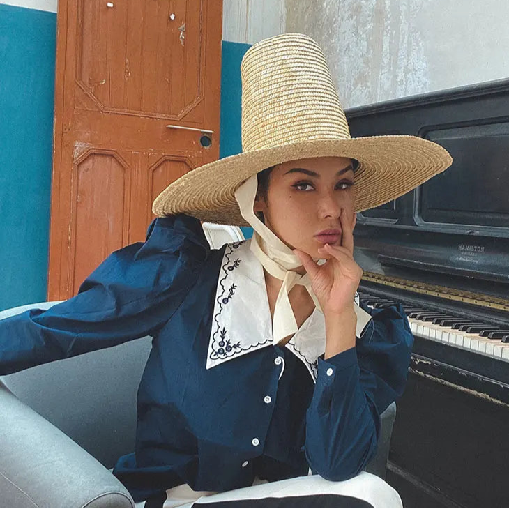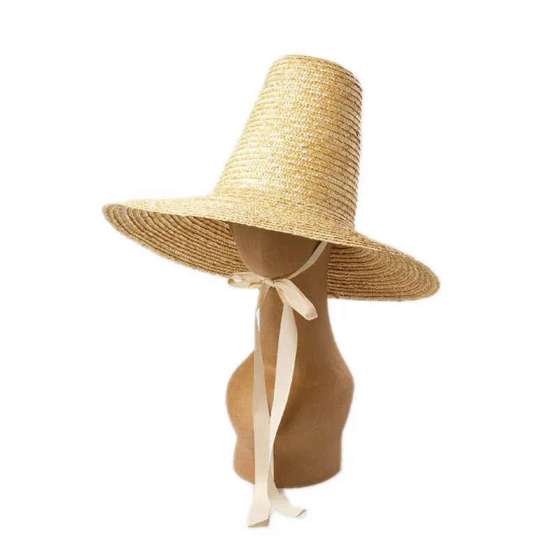 Women's Vintage Casual High Pointed Wide Brim Wheat Straw Sun Hat