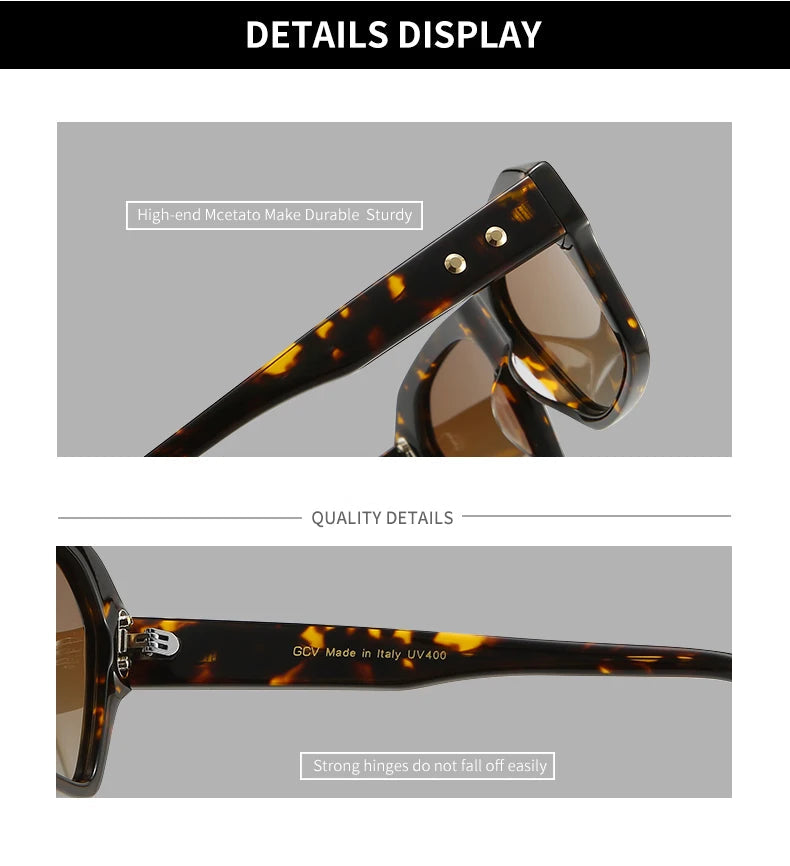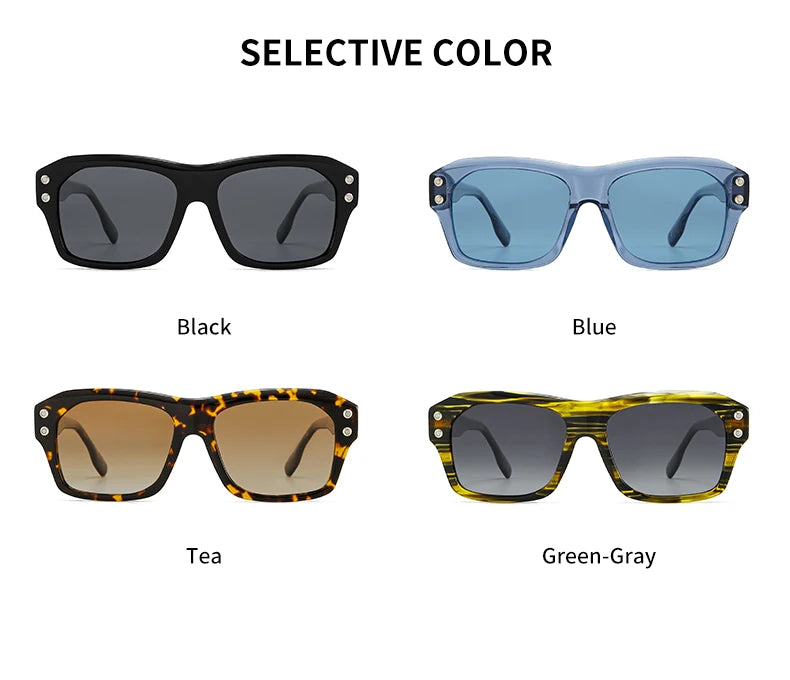 Luxury Fashion Acetate Square Rectangular Polarized UV400 Sunglasses for Women