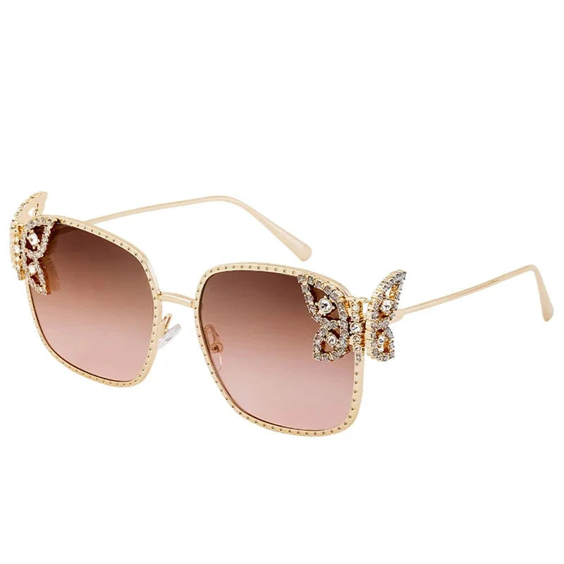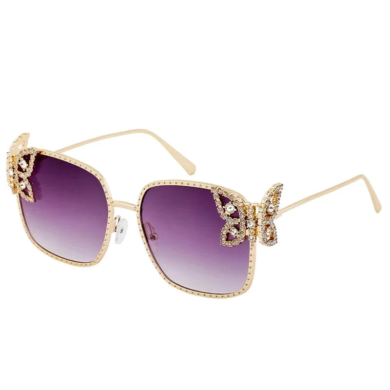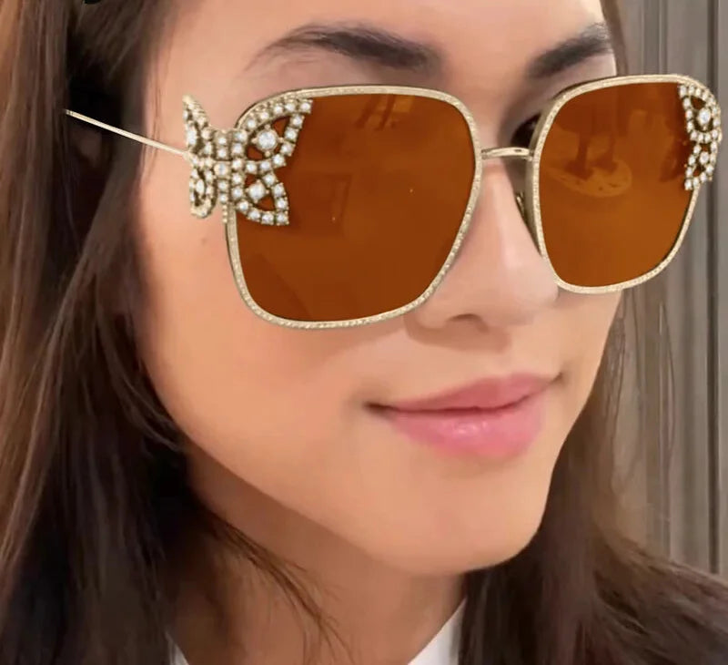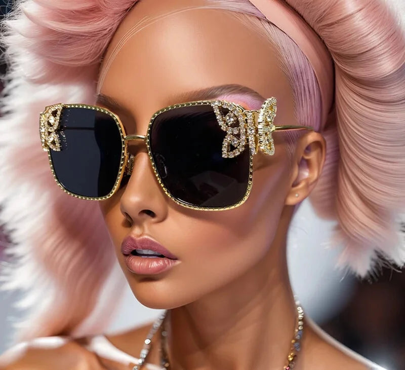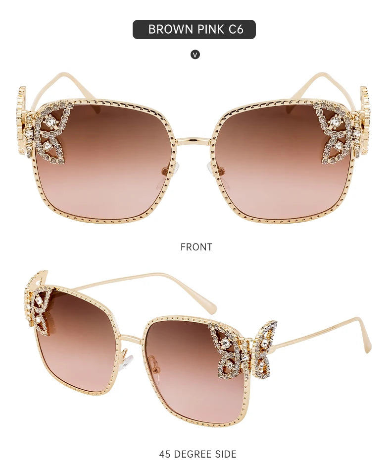 Oversized Rhinestone Butterfly Square Frame UV400 Protection Sunglasses for Women